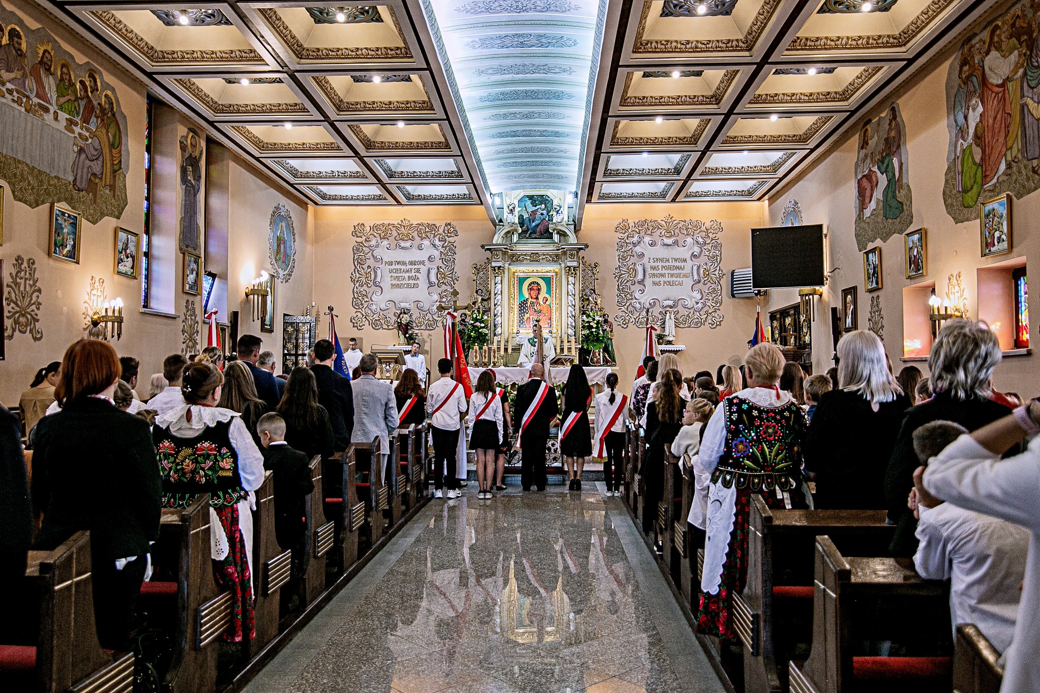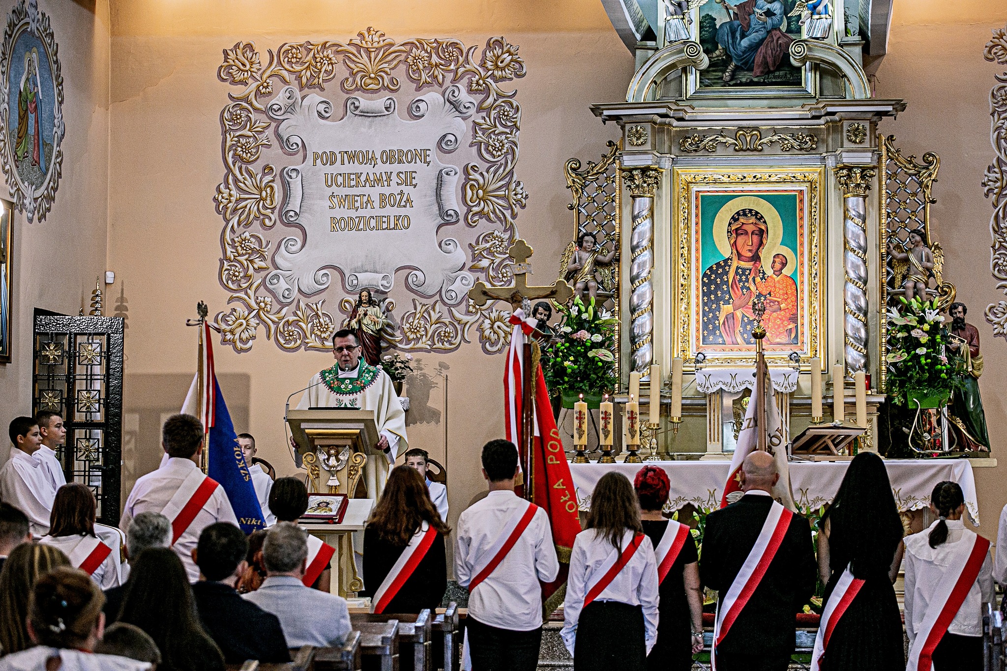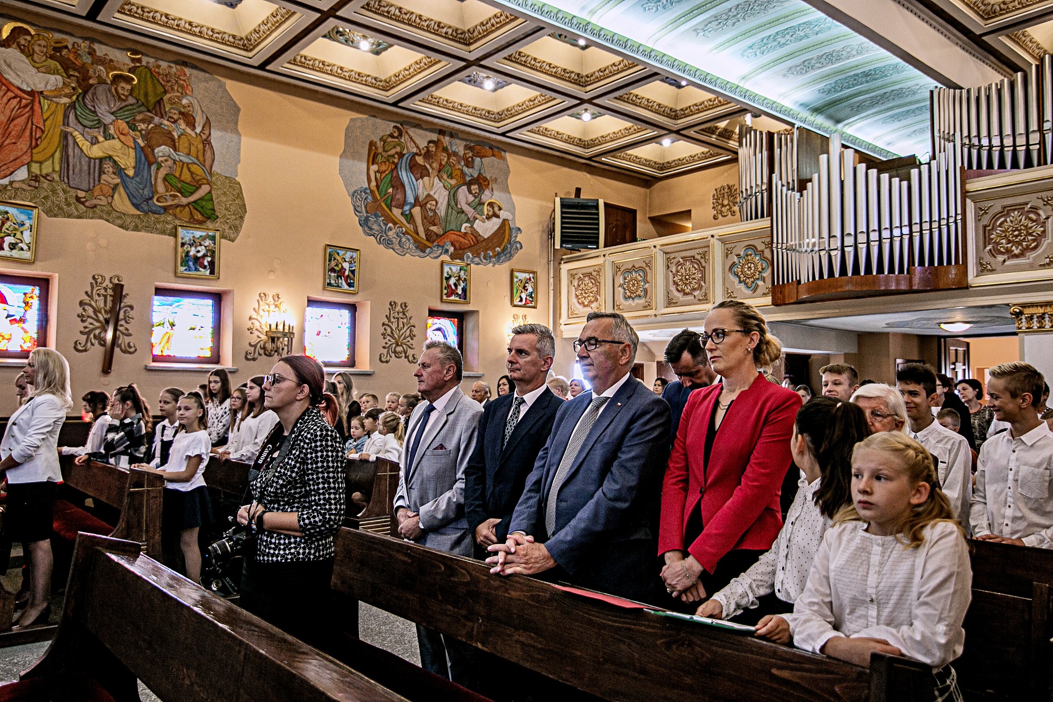 Rozpoczęcie uroczystości odbyło się w Kościele Parafialnym, gdzie wierni zebrali się na Uroczystej Mszy Świętej. Ks. Proboszcz Sławomir Zadora odprawił mszę, w trakcie której modliliśmy się za wszystkich obecnych, został też poświęcony nowy sztandar z wizerunkiem Janusza Korczaka.