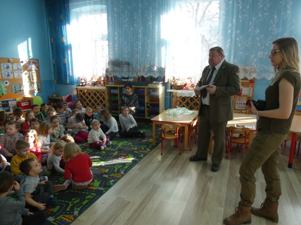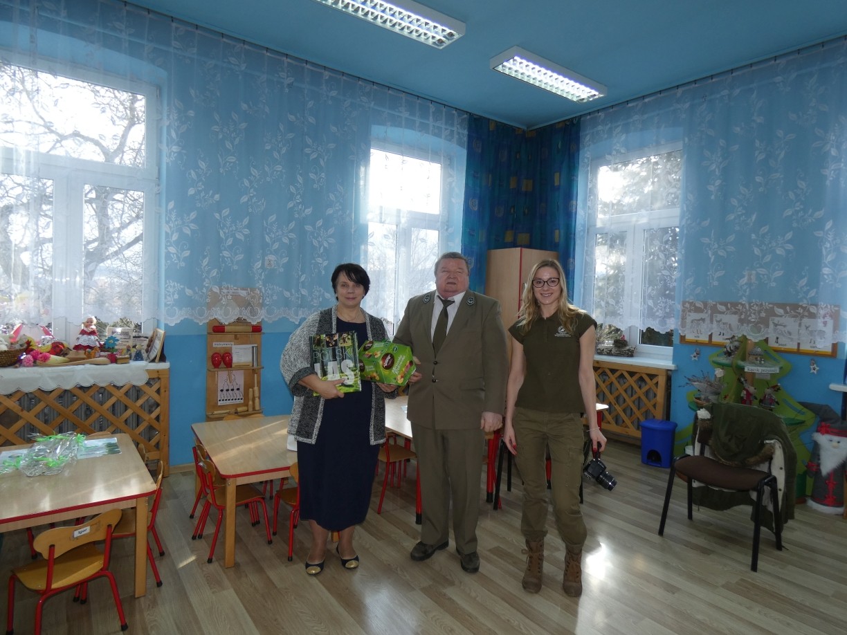 Były też słodycze dla dzieci i karma dla ptaków do przedszkolnych karmników. Spotkanie zakończyło się pamiątkowymi zdjęciami i życzeniami dalszej niezmiernie wartościowej dla Przedszkola im. Władysława Pieronka w Radziechowach współpracy. Darz Bór!