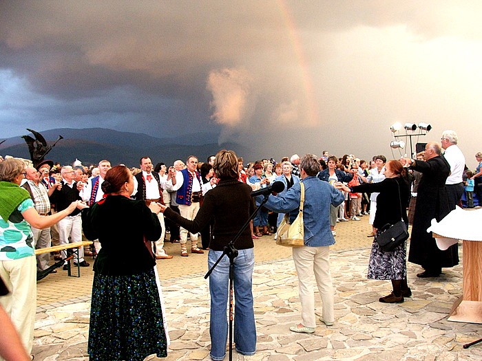 Wykonawcy Koncertu “Wiyrchowanie” czyli Józef SKRZEK i Zespół Regionalny “Grojcowianie” dali popis swoich umiejętności. Mieszały się dźwięki góralskich skrzypiec i basów oraz góralskich głosów z klawiszami i moogiem Józefa Skrzeka. Przestrzeń Matyski i Kotliny Żywieckiej wypełniła się wibrującymi dźwiękami. Największe jednak wrażenie zrobiło na wszystkich dopełnienie tego koncertu, jakie zgotowała nam natura. Najpierw dwie wyraziste tęcze, następnie burzowe chmury, ulewny deszcz i potężne błyskawice. Wszystko podświetlone ostrym słońcem znad Skrzycznego. I co najważniejsze, wszystkie te groźnie wyglądające zjawiska ominęły Matyskę może o 1 kilometr. Wrażenie niezapomniane tak dla słuchających jak i występujących którzy ani na chwilę nie przerywają koncertu. Zachwytu tymi wrażeniami nie kryje też ekipa TV “Trwam” która przyjechała do Radziechów by zrealizować program o koncercie i Golgocie Beskidów. Sam Józef Skrzek nie kryje że w tak niezwykłych warunkach nie było mu dane jeszcze zagrać.