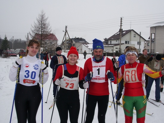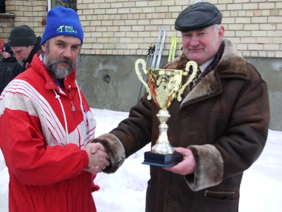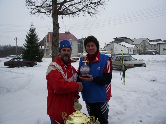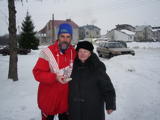 Natomiast w niedzielę 20 lutego w Niemenczynie odbyły się tradycyjne zawody narciarskie Wileńszczyzny biały czar. Wspaniała atmosfera i troska Polaków mieszkających w Niemenczynie dała się odczuć na każdym kroku. Główny organizator Olimpijczyk Marian Kaczanowski wraz z całą rodziną ugościł całą drużynę Bacy iście po królewsku. W startach też poszło nam wspaniale, na 8 km stylem klasycznym Sebastian Dudek nie miał sobie równych, a jego ojciec na 5km był drugi. Na całej trasie biegu, oraz w mieście cały czas było słychać mowę polską i doping jakiego trudno było by się spodziewać nawet w Radziechowach (największe skupisko Polaków 60% mówi po polsku. Wszak Prezes Dudek jest bardzo popularny w Niemenczynie. Na zakończenie zawodów Nasz Prezes wręczył puchary dla Szkoły Mistrzostwa Sportowego Rejonu Wileńskiego, dla Mariana Kaczanowskiego głównego organizatora pobytu Bacy na Litwie, oraz Starosty Niemenczyna Mieczysława Borusewicza. Nasza cała 5 osobowa ekipa też wracała do Radziechów z pucharami, oprócz pucharów i upominków za zajęte miejsca otrzymaliśmy jeszcze puchar Starosty, a Jerzy Wilman był najstarszym uczestnikiem zawodów 72 lata. Otrzymaliśmy również zaproszenie na majowe biegi przełajowe, a Gmina Radziechowy-Wieprz nawiąże współpracę z miastem Niemenczyn.