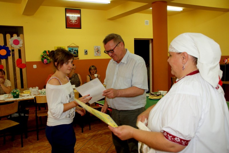 Uczestnicy kursu otrzymali pamiątkowe dyplomy-certyfikaty i upomnki, które wręczał Prezes Zarządu Stowarzyszenia - Pan Grzegorz Sanetra, a wszyscy posłuchali też krótkiego koncertu muzyki ludowej w wykonaniu Kapeli „Mali Grojcowianie”.