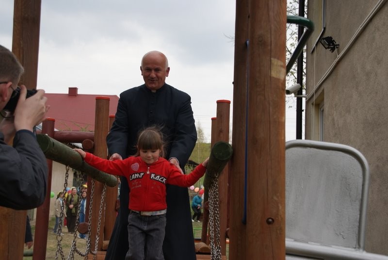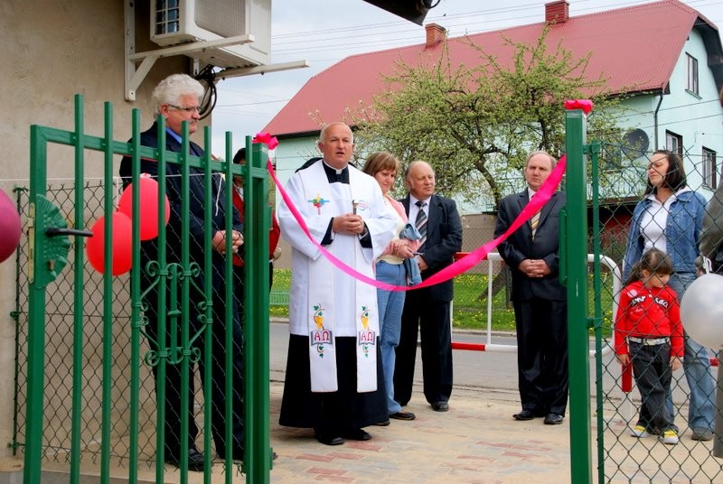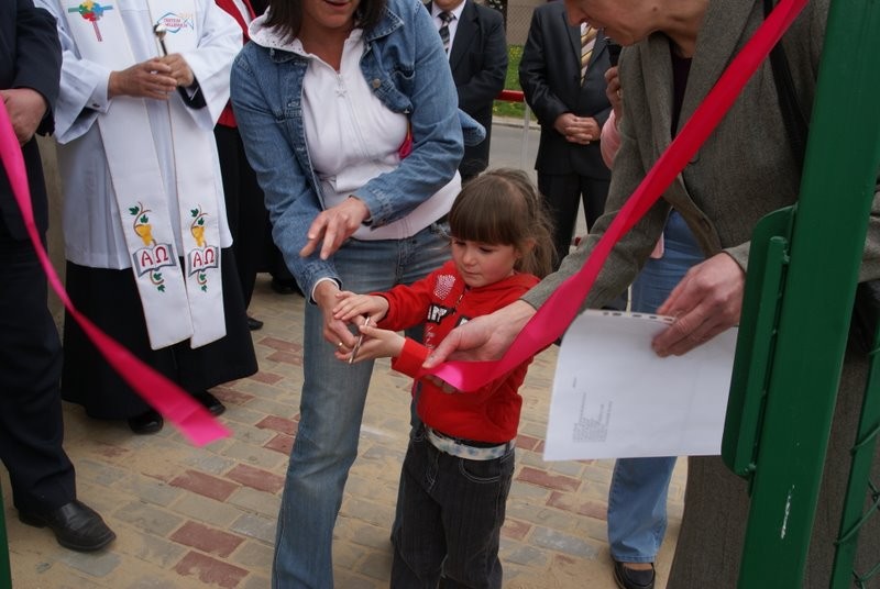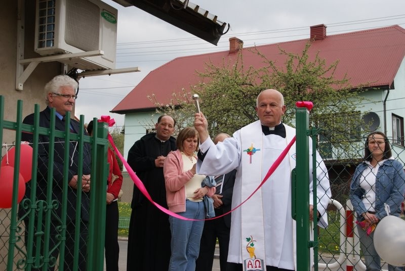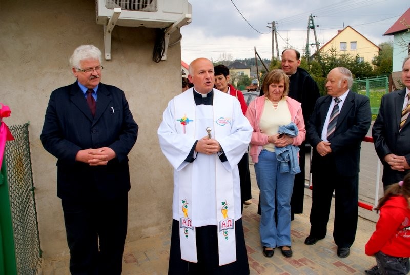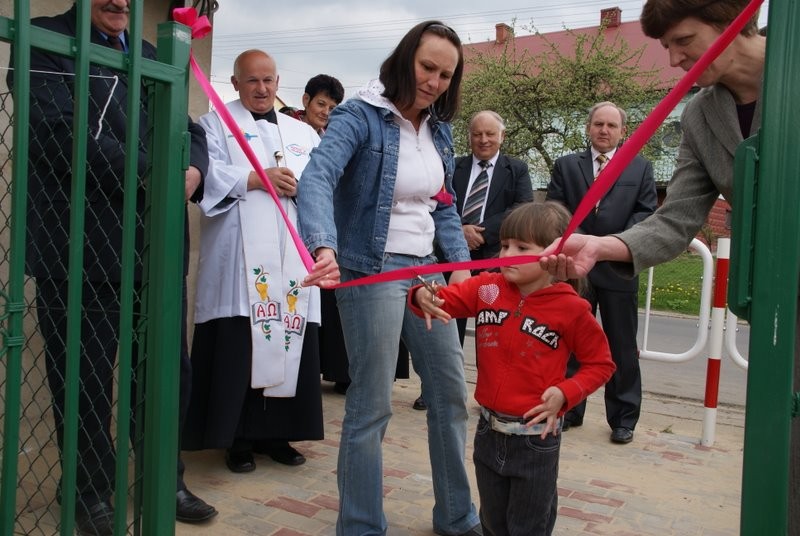 Poświęcenia obiektu dokonał Ks. Proboszcz Ryszard Kubasiak, a otwarcia w towarzystwie Wójta Gminy Grzegorza Figury, Dyrektor Szkoły Marii Majcher, i licznie zebranych dzieci i mieszkańców dokonała Oliwka.