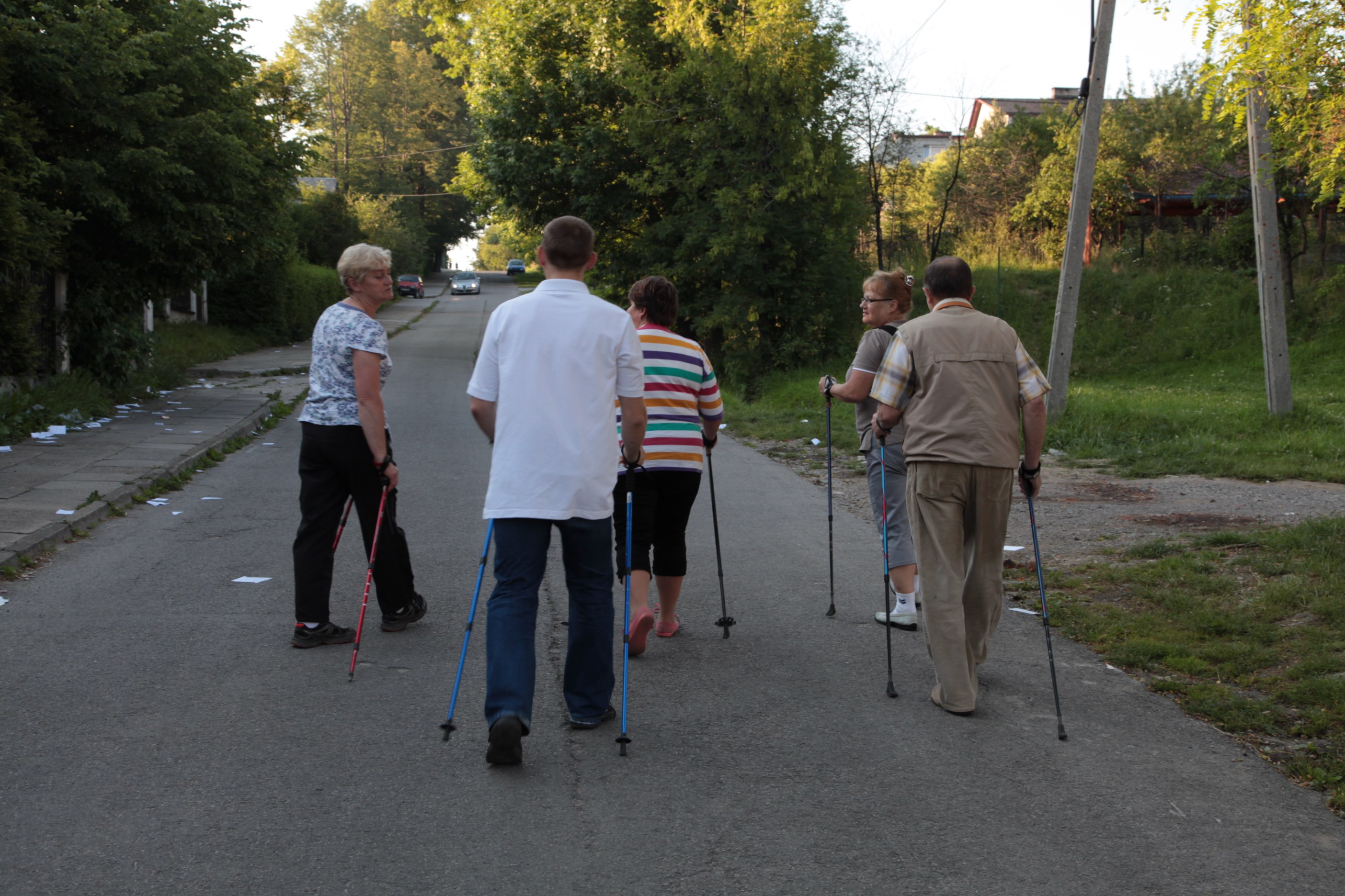 O godzinie 19.00 osoby które zgromadziły się w celu podjęcia marszu wykonały krótką rozgrzewkę pod czujnym i profesjonalnym okiem instruktora, a następnie wyruszyły z pod Domu Ludowego w Radziechowach w niezwykle piękna i malowniczą trasę. Podczas trwania marszu, instruktor czyli Pani Bogusława Dziergas udzielała cennych wskazówek i poprawiała technikę marszu, dodatkowo przez cała drogę zabawiała idących ciekawymi opowieściami i anegdotami, tym samym uśmiech z twarzy uczestniczących nie znikał. Wspaniała forma aktywnego wypoczynku duchowego jak i fizycznego.