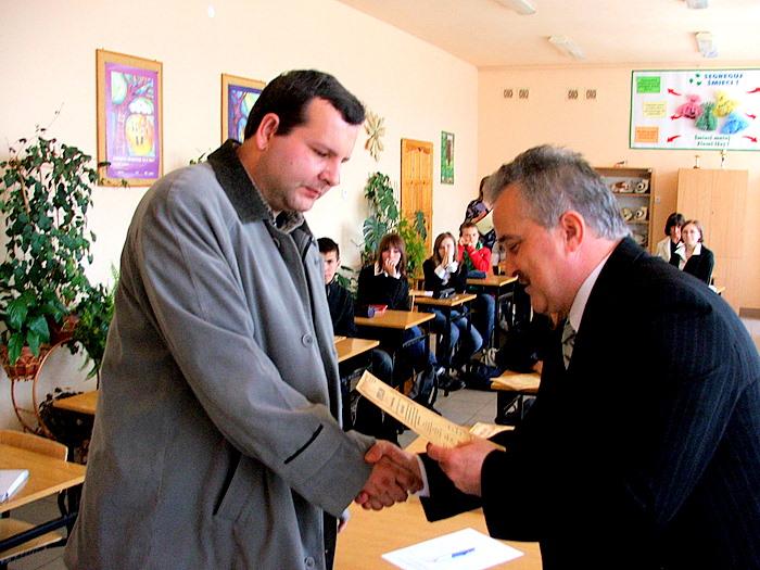 Pan mgr Marek Kuniec - przedstawiciel Starostwa Powiatowego w Żywcu oraz wieloletni dyrektor Zespołu Szkół im. ks. prał. Stanisława Gawlika w Radziechowach