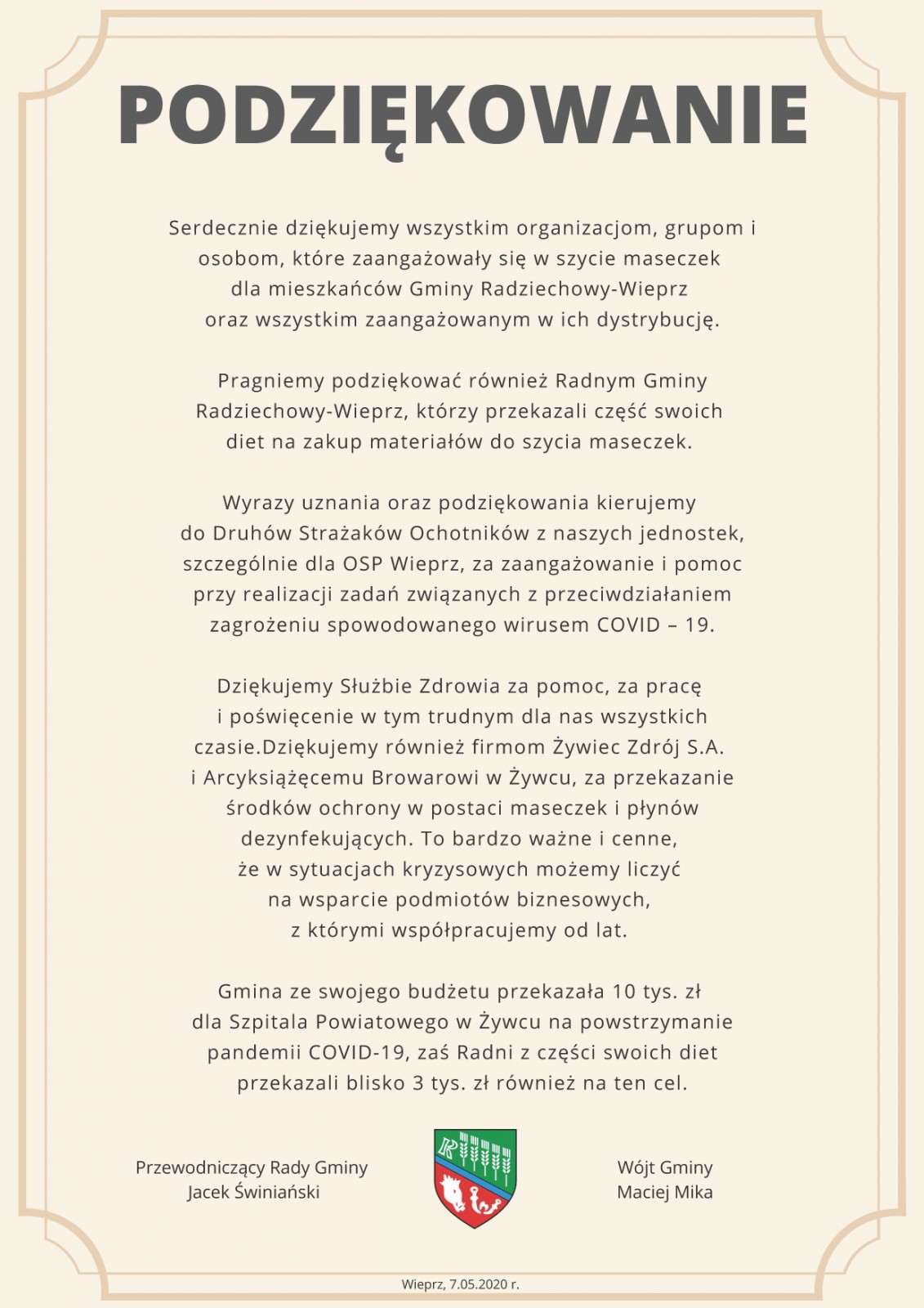 w szycie maseczek dla mieszkańców Gminy Radziechowy-Wieprz