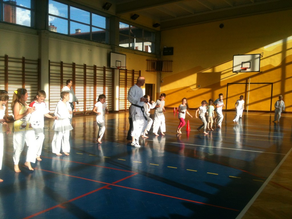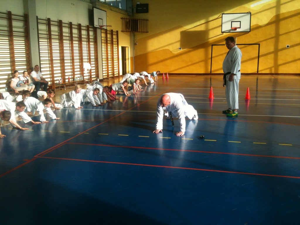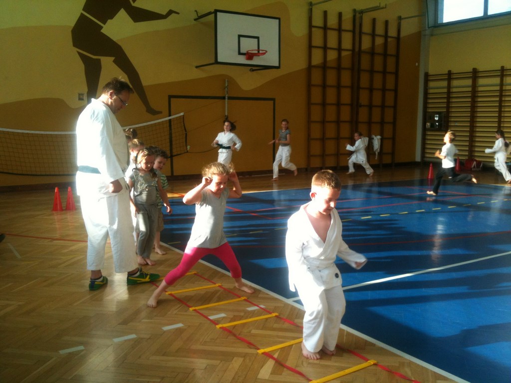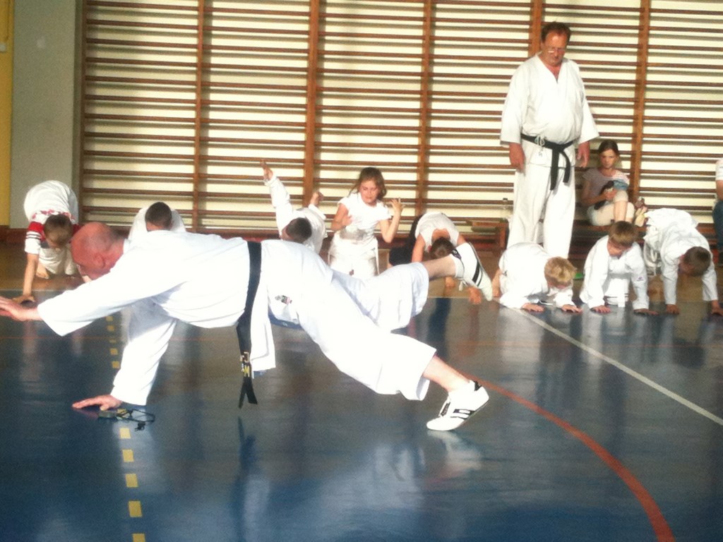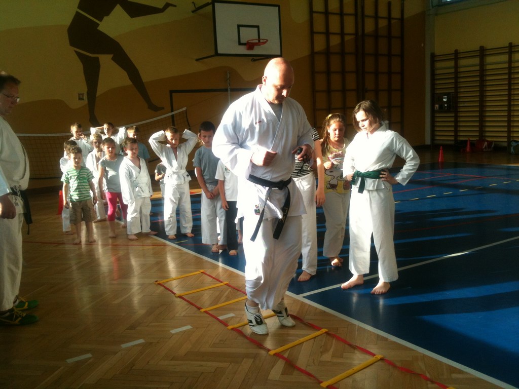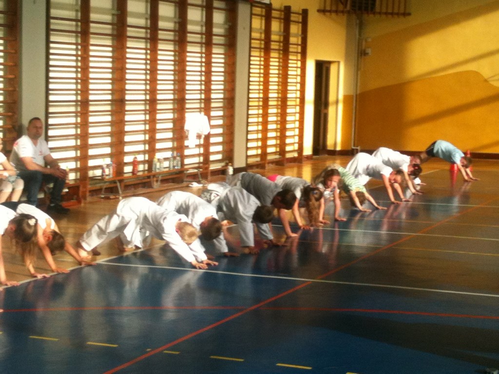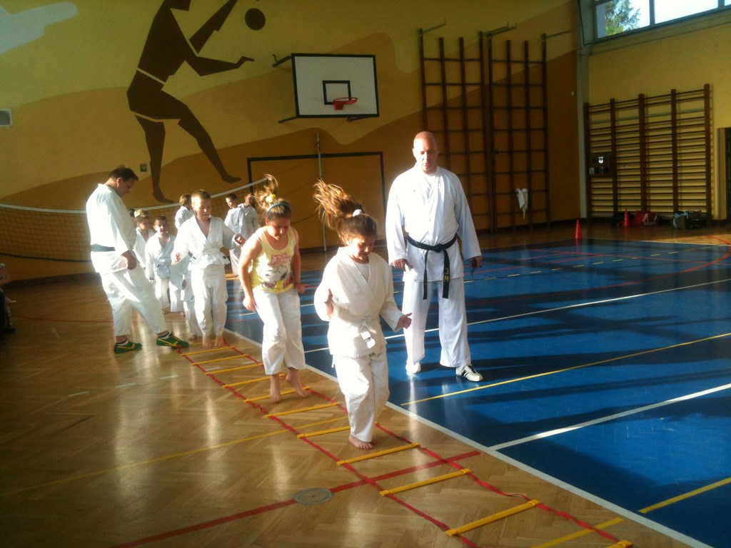 Tym razem Słowak Jaroslav Martak, który na co dzień szkoli karateków w Czadcy szkolił młodzież z gminy Radziechowy – Wieprz, pomimo „lekkiej” bariery językowej praktycznie nie było niezrozumienia się. Założeniem szkoleniowym seminarium jakie założyli sobie szkoleniowcy, jest poznawanie nowinek szkoleniowych ściśle powiązanych z elementami profilaktyki, które dość skutecznie wpływają na lepsze kształtowanie emocji u młodych poprzez wkomponowanie w taktyczno – praktyczne elementy walki, a które poprzez systematyczne ćwiczenie zwiększają szansę zawodnika na poprawę relacji interpersonalnych oraz sukces sportowy. Motywem szkolenia był trening plyometryczny na jakim bazują Słowacy. Ten model szkoleniowy łączy siłę z szybkością, aby wytworzyć moc oraz panowanie nad emocjami. Trening plyometryczny pozwala mięśniom uzyskać maksymalną siłę w najkrótszym czasie. Jest polecany osobom uprawiającym sporty wymagające wykonywania skoków, biegów, rzutów lub podnoszeń. Plyometria została opracowana w bloku wschodnim w latach sześćdziesiątych ubiegłego stulecia – chociaż tak na prawdę stosowana była od zawsze. Ćwiczenia plyometryczne - jak wskakiwanie na pudło czy skoki w miejscu - odzwierciedlają zarówno uosobienie ruchu jak i szybkość wykonywania licznych umiejętności sportowych ale nade wszystko kształtują dyscyplinę ćwiczących. W szkoleniu istotne jest ”doświadczenie właściwego przepływu energii , przepływ ma miejsce, gdy karateka jest całkowicie pochłonięta/y daną aktywnością. Podczas wykonywania aktywności traci poczucie czasu – odczuwając optymalny poziom doznań psychicznych najwyższy poziom uwagi i koncentracji i radość z uprawiania ulubionej dyscypliny, gdyż wygrana nie oznacza sukcesu a osiągnięcie celu osobistego oznacza wygraną, realistyczne cele osobiste – pozwalają na poczucie kontroli oraz odpowiedzialność za porażki jaki i zasługi za odniesione sukcesy. Takie podejście określa się stanem Flow to stan koncentracji tak głębokiej, że człowiek jest całkowicie pogrążony w wykonywanej czynności, zawodnicy wówczas czują się silni, mają wrażenie kontrolowania sytuacji, są pozbawieni wątpliwości i kompleksów, wykorzystują do max. swoje zdolności. Zanika poczucie czasu oraz problemy emocjonalne, doznając uczucia wszechogarniającej radości. Takie ćwiczenia mogą eliminować u dzieci stany hipertonii (zwiększone napięcie mięśni) lub hipotonii (zmniejszenie napięcia mięśni), stany takie mogą powodować u młodych, zniechęcanie do robienia czegokolwiek w okolicznościach podwyższonego napięcia. Ćwiczenia te mogą też skutecznie przyczyniać się do eliminowania dysleksji, dysgrafii itp. gdyż prawidłowo kształtowany układ nerwowy sprawia, że osoba z takimi deficytami poprzez udział cykliczny w takich ćwiczeniach ma bardziej sprawny układ nerwowy, albowiem każde ćwiczenie, które polega na dynamicznym przejściu z absorpcji siły do jej użycia, przyczynia się do lepszego kształtowania układu nerwowego. Takie ćwiczenia przygotowujące są następnie wdrażane jako elementy taktyki walki opartej na zaskoczeniu rywala technikami karate, podnoszą zdecydowanie klasę sportową naszych zawodników i dodają ducha walki. Słowacy taktykę walki zaczerpnęli ze starej węgierskiej szkoły szermierki, podkreśla Hutman – Wilczek, który od dłuższego czasu szkoli się wśród Słowaków. Prekursorem był Laszlo Szabo Mistrz Olimpijski, który swój fechtunek zaczerpnął z kolei ze szkoły włoskiej od legendarnego fechmistrza Giuseppe Mangarottiego. Znakomicie wytrenowane techniki walki oraz dobre przygotowanie mentalne wzmacniają ducha walki. Nowa strategia walki, której uczyli się adepci karate w Radziechowach wraz z nietypową taktyką walki stosowaną przez południowych sąsiadów, przyniesie zapewne pożądane sukcesy w ich przyszłości sportowej i lepszej edukacji szkolnej. W klubie oprócz sportu kładzie się niemniejszy nacisk na należytą socjalizację i profilaktykę, chodzi o to, aby osoby trenujące karate realizowały założenia klubu: na treningach wprowadzamy tzw. umiejętności życiowe: zdobywanie umiejętności honorowego wygrywania i przegrywania, radzenia sobie z emocjami, odpoczynku i relaksu, nie łamania zasad rywalizacji, konsekwencji decyzji i zachowań, poszanowania rywala. Szkolenia w swej różnorodności przygotowują zawodników w przełamywaniu emocjonalnych napięć przedstartowych - strachu, bądź niwelują napięcia psychiczne związane z trudnymi sytuacjami w trakcie samej walki karate, gdzie lęk niejednokrotnie „paraliżuje” - bądź sprawia że zawodnik ma w głowie „pustkę” w podjęciu decyzji, wykonania stosownej techniki sportowej. Szkoleniowcy ustalili, że oprócz zajęć sportowych zgłębią istotne zagadnienie jakie występuje po wszystkich stronach granicy w procesie szkoleniowym dostrzegane u młodzieży określanej jako „Generacja X-men” urodzonych po roku 2000 i pewne ich wspólne cechy. Mówi się o nich, że są młodzi, sprytni i zuchwali, wychowani w łączności z najnowocześniejszymi technologiami. Nie wiedzą zbyt wiele o świecie, w którym nie ma internetu, e-maili i telefonów komórkowych. Pokolenie X-menów ma prosty dojście do informacji, a wszystko jest na wyciągnięcie ręki. Dlatego preferują żyć i trenować inaczej niż starsi rówieśnicy, ich cechy to: nielojalność - czyli chęć częstawego zmieniania miejsca aktywności by poszerzać swoje doświadczenia, roszczeniowość, pragnienie podejmowania tylko wybranych zadań a unikanie działań rutynowych - powtarzalnych, słomiany zapał, szybkie znudzenie kolejnymi ćwiczeniami, brak dokładności wykonywanych zadań, zbyt duża ocena własnych kompetencji, trudności z podporządkowaniem się. Pokolenie X-menów ceni swój czas. Chcą trenować „od - do", a następnie mieć czas dla siebie. To