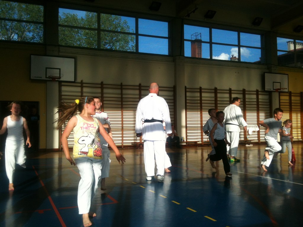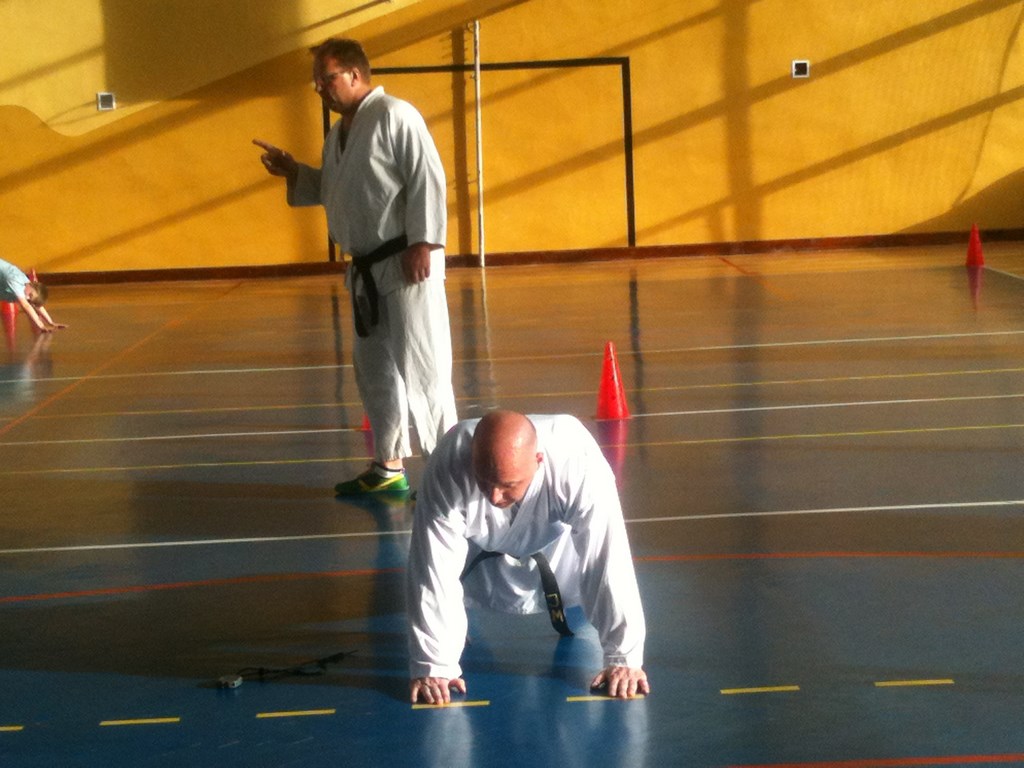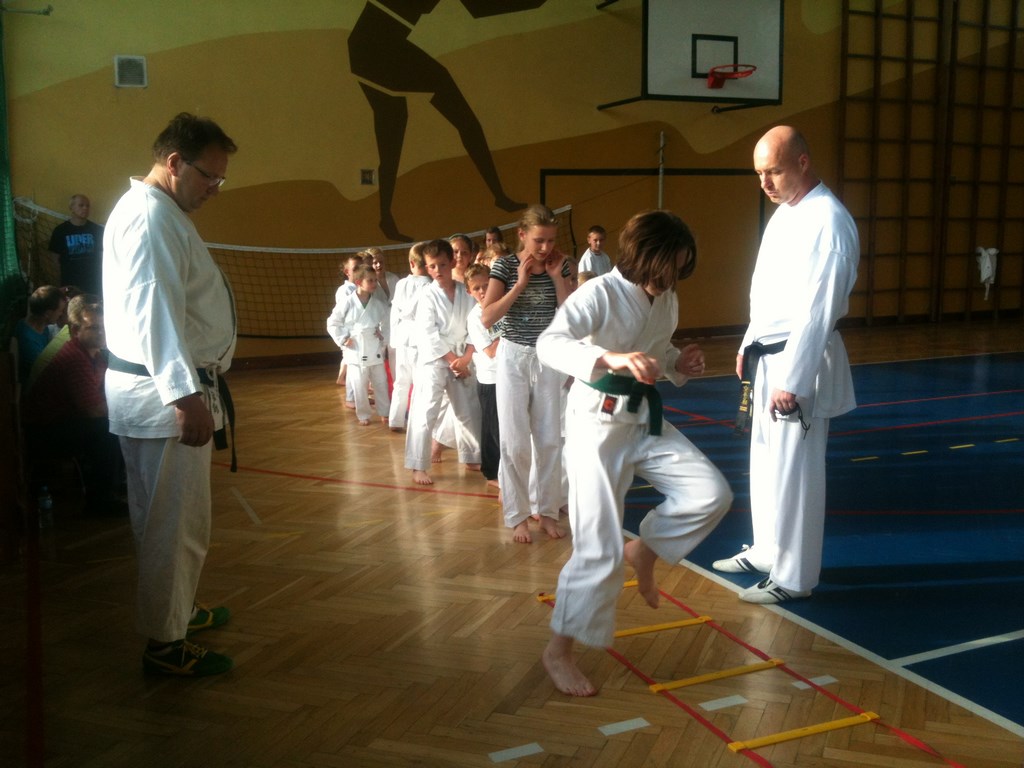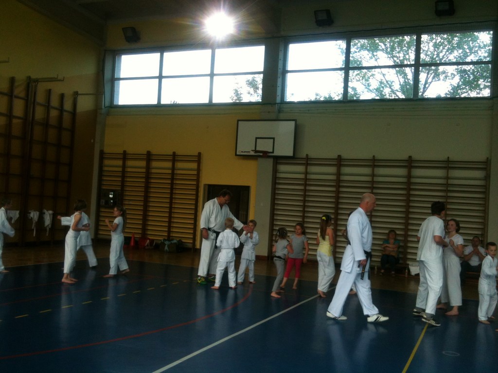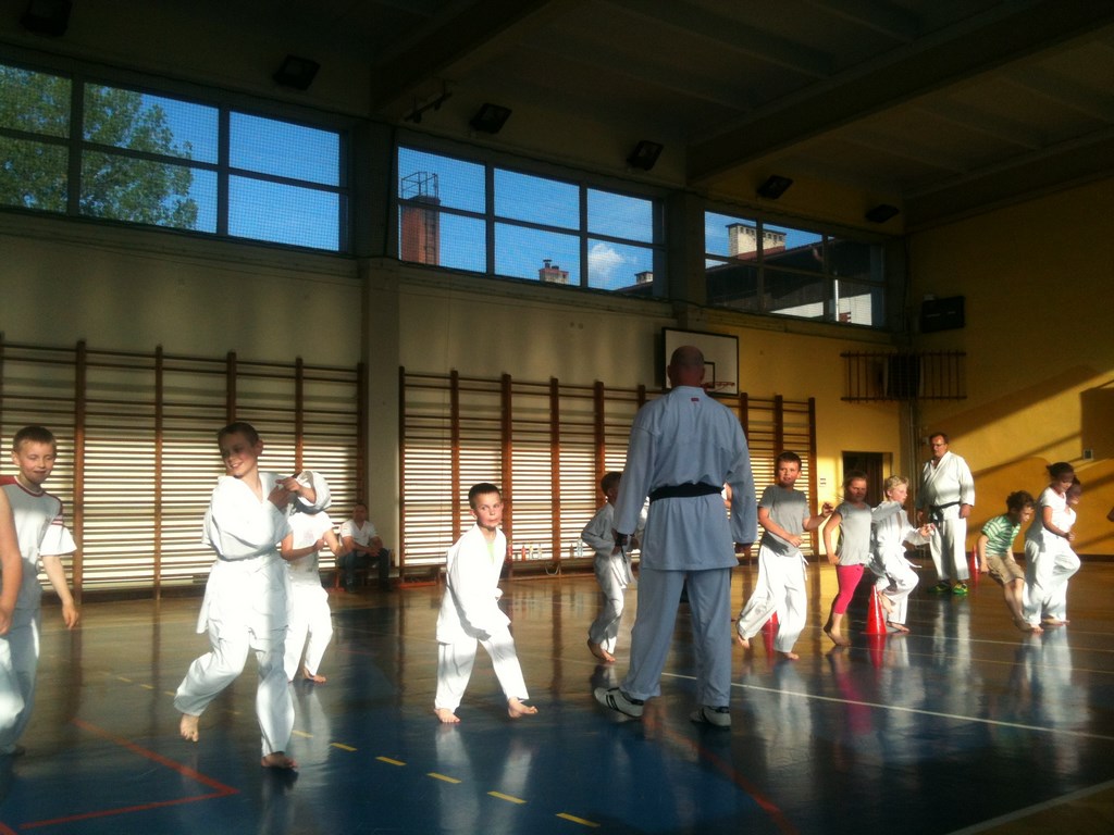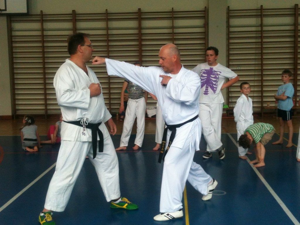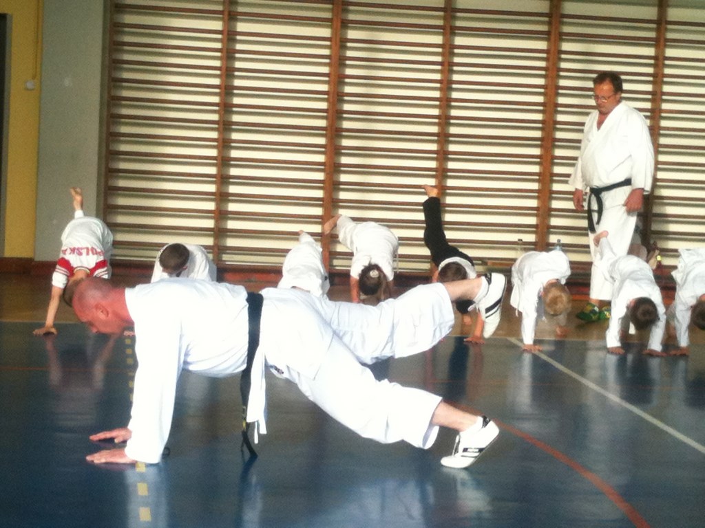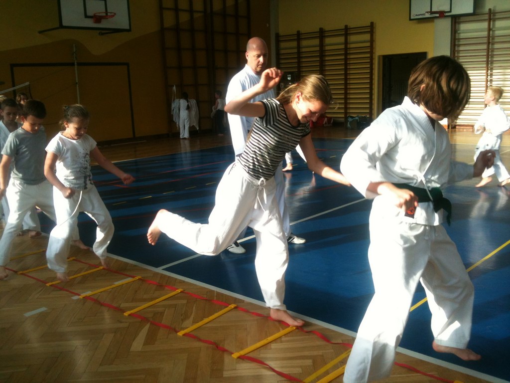 Tym razem Słowak Jaroslav Martak, który na co dzień szkoli karateków w Czadcy szkolił młodzież z gminy Radziechowy – Wieprz, pomimo „lekkiej” bariery językowej praktycznie nie było niezrozumienia się. Założeniem szkoleniowym seminarium jakie założyli sobie szkoleniowcy, jest poznawanie nowinek szkoleniowych ściśle powiązanych z elementami profilaktyki, które dość skutecznie wpływają na lepsze kształtowanie emocji u młodych poprzez wkomponowanie w taktyczno – praktyczne elementy walki, a które poprzez systematyczne ćwiczenie zwiększają szansę zawodnika na poprawę relacji interpersonalnych oraz sukces sportowy. Motywem szkolenia był trening plyometryczny na jakim bazują Słowacy. Ten model szkoleniowy łączy siłę z szybkością, aby wytworzyć moc oraz panowanie nad emocjami. Trening plyometryczny pozwala mięśniom uzyskać maksymalną siłę w najkrótszym czasie. Jest polecany osobom uprawiającym sporty wymagające wykonywania skoków, biegów, rzutów lub podnoszeń. Plyometria została opracowana w bloku wschodnim w latach sześćdziesiątych ubiegłego stulecia – chociaż tak na prawdę stosowana była od zawsze. Ćwiczenia plyometryczne - jak wskakiwanie na pudło czy skoki w miejscu - odzwierciedlają zarówno uosobienie ruchu jak i szybkość wykonywania licznych umiejętności sportowych ale nade wszystko kształtują dyscyplinę ćwiczących. W szkoleniu istotne jest ”doświadczenie właściwego przepływu energii , przepływ ma miejsce, gdy karateka jest całkowicie pochłonięta/y daną aktywnością. Podczas wykonywania aktywności traci poczucie czasu – odczuwając optymalny poziom doznań psychicznych najwyższy poziom uwagi i koncentracji i radość z uprawiania ulubionej dyscypliny, gdyż wygrana nie oznacza sukcesu a osiągnięcie celu osobistego oznacza wygraną, realistyczne cele osobiste – pozwalają na poczucie kontroli oraz odpowiedzialność za porażki jaki i zasługi za odniesione sukcesy. Takie podejście określa się stanem Flow to stan koncentracji tak głębokiej, że człowiek jest całkowicie pogrążony w wykonywanej czynności, zawodnicy wówczas czują się silni, mają wrażenie kontrolowania sytuacji, są pozbawieni wątpliwości i kompleksów, wykorzystują do max. swoje zdolności. Zanika poczucie czasu oraz problemy emocjonalne, doznając uczucia wszechogarniającej radości. Takie ćwiczenia mogą eliminować u dzieci stany hipertonii (zwiększone napięcie mięśni) lub hipotonii (zmniejszenie napięcia mięśni), stany takie mogą powodować u młodych, zniechęcanie do robienia czegokolwiek w okolicznościach podwyższonego napięcia. Ćwiczenia te mogą też skutecznie przyczyniać się do eliminowania dysleksji, dysgrafii itp. gdyż prawidłowo kształtowany układ nerwowy sprawia, że osoba z takimi deficytami poprzez udział cykliczny w takich ćwiczeniach ma bardziej sprawny układ nerwowy, albowiem każde ćwiczenie, które polega na dynamicznym przejściu z absorpcji siły do jej użycia, przyczynia się do lepszego kształtowania układu nerwowego. Takie ćwiczenia przygotowujące są następnie wdrażane jako elementy taktyki walki opartej na zaskoczeniu rywala technikami karate, podnoszą zdecydowanie klasę sportową naszych zawodników i dodają ducha walki. Słowacy taktykę walki zaczerpnęli ze starej węgierskiej szkoły szermierki, podkreśla Hutman – Wilczek, który od dłuższego czasu szkoli się wśród Słowaków. Prekursorem był Laszlo Szabo Mistrz Olimpijski, który swój fechtunek zaczerpnął z kolei ze szkoły włoskiej od legendarnego fechmistrza Giuseppe Mangarottiego. Znakomicie wytrenowane techniki walki oraz dobre przygotowanie mentalne wzmacniają ducha walki. Nowa strategia walki, której uczyli się adepci karate w Radziechowach wraz z nietypową taktyką walki stosowaną przez południowych sąsiadów, przyniesie zapewne pożądane sukcesy w ich przyszłości sportowej i lepszej edukacji szkolnej. W klubie oprócz sportu kładzie się niemniejszy nacisk na należytą socjalizację i profilaktykę, chodzi o to, aby osoby trenujące karate realizowały założenia klubu: na treningach wprowadzamy tzw. umiejętności życiowe: zdobywanie umiejętności honorowego wygrywania i przegrywania, radzenia sobie z emocjami, odpoczynku i relaksu, nie łamania zasad rywalizacji, konsekwencji decyzji i zachowań, poszanowania rywala. Szkolenia w swej różnorodności przygotowują zawodników w przełamywaniu emocjonalnych napięć przedstartowych - strachu, bądź niwelują napięcia psychiczne związane z trudnymi sytuacjami w trakcie samej walki karate, gdzie lęk niejednokrotnie „paraliżuje” - bądź sprawia że zawodnik ma w głowie „pustkę” w podjęciu decyzji, wykonania stosownej techniki sportowej. Szkoleniowcy ustalili, że oprócz zajęć sportowych zgłębią istotne zagadnienie jakie występuje po wszystkich stronach granicy w procesie szkoleniowym dostrzegane u młodzieży określanej jako „Generacja X-men” urodzonych po roku 2000 i pewne ich wspólne cechy. Mówi się o nich, że są młodzi, sprytni i zuchwali, wychowani w łączności z najnowocześniejszymi technologiami. Nie wiedzą zbyt wiele o świecie, w którym nie ma internetu, e-maili i telefonów komórkowych. Pokolenie X-menów ma prosty dojście do informacji, a wszystko jest na wyciągnięcie ręki. Dlatego preferują żyć i trenować inaczej niż starsi rówieśnicy, ich cechy to: nielojalność - czyli chęć częstawego zmieniania miejsca aktywności by poszerzać swoje doświadczenia, roszczeniowość, pragnienie podejmowania tylko wybranych zadań a unikanie działań rutynowych - powtarzalnych, słomiany zapał, szybkie znudzenie kolejnymi ćwiczeniami, brak dokładności wykonywanych zadań, zbyt duża ocena własnych kompetencji, trudności z podporządkowaniem się. Pokolenie X-menów ceni swój czas. Chcą trenować „od - do", a następnie mieć czas dla siebie. To