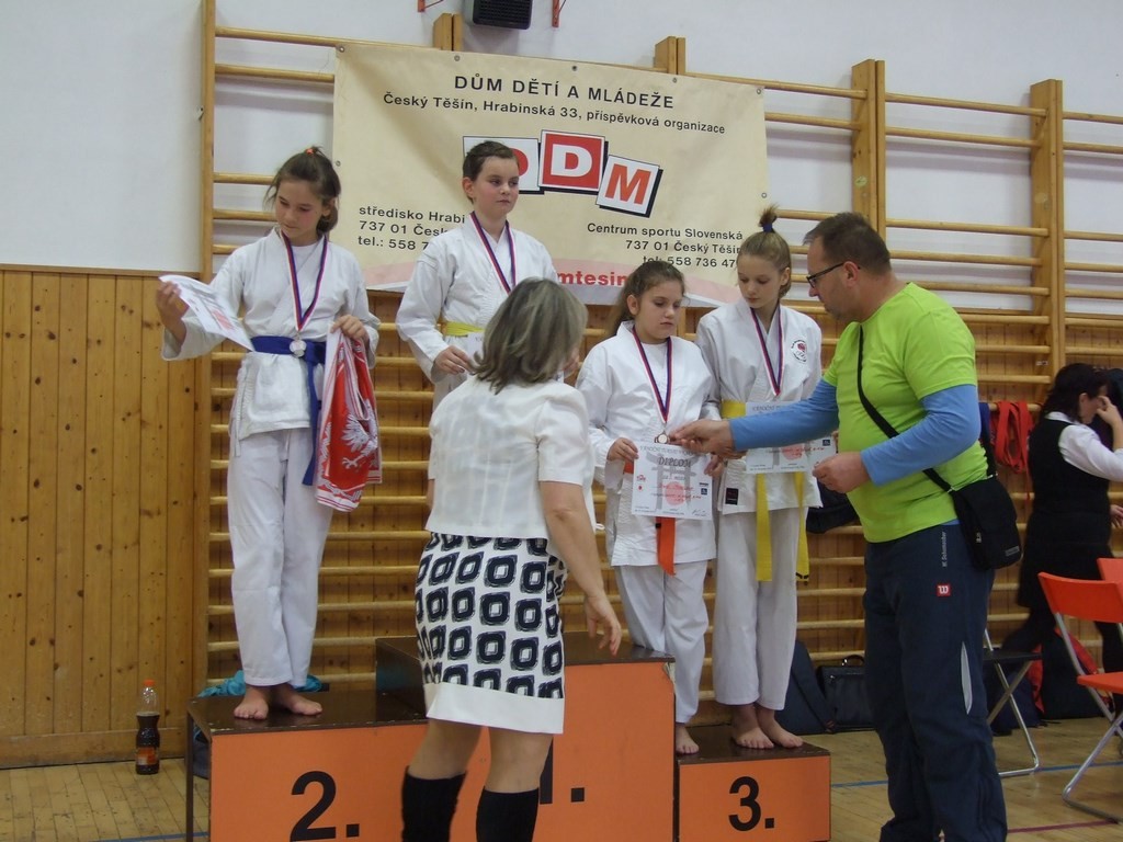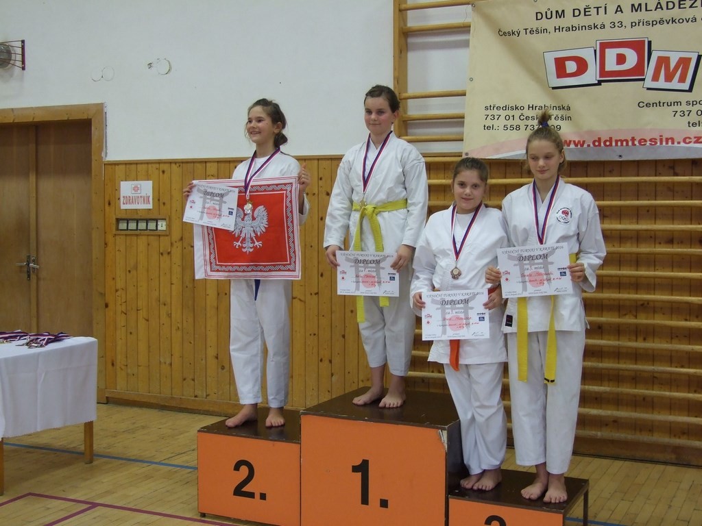 Turniej organizowany od przeszło dziesięciu lat przez trenerów i działaczy klubowych z Polski, Czech i Słowacji, do którego przystąpił Klub Arawashi jako jedyny z Żywiecczyzny wskazuje, że więź i odwaga w rywalizacji z najlepszymi, to coś co jest wpisane w aktywność sportową Arawashi. W Cieszynie - Czeskim, nasza drużyna skromna (ale niezwykle waleczna) z młodym narybkiem Arawashi, zademonstrowała swój waleczny pazur zdobywając trzy medale, brązowy medal w kata Czeszkom przechwyciła Oliwia Michalska, Oliwia dorzuciła jeszcze brąz w kumite. Jednak najbliżej złota była Izabela Wawok która po wymagających walkach dotarła niczym tajfun do finału, bez przegranej walki. Również w finale Iza nie przegrała – był remis, w takiej sytuacji sędziowie przez wskazanie stwierdzają który zawodnik był lepszy. W jakże zaciętej rywalizacji żadna z zawodniczek nie zdobyła punktu tym samym pojedynek był bardzo wyrównany, jednak przy ocenie przez wskazanie czescy sędziowie jednogłośnie wydali werdykt, że to ich zawodniczka była lepsza, co nie było niewątpliwe. Ciut szczęścia zabrakło Martynie Syposz, która o przysłowiowy włos przegrała rywalizację o wejście do strefy medalowej w kumite z Czeszką.