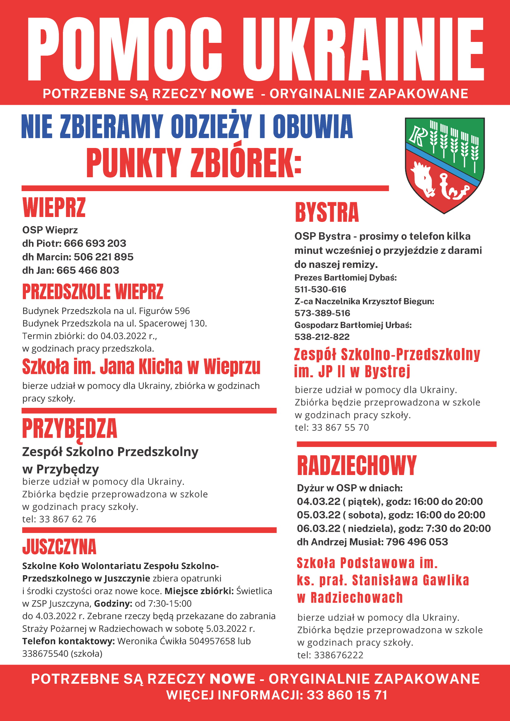 UWAGA - Prosimy nie przynosić odzieży oraz butów