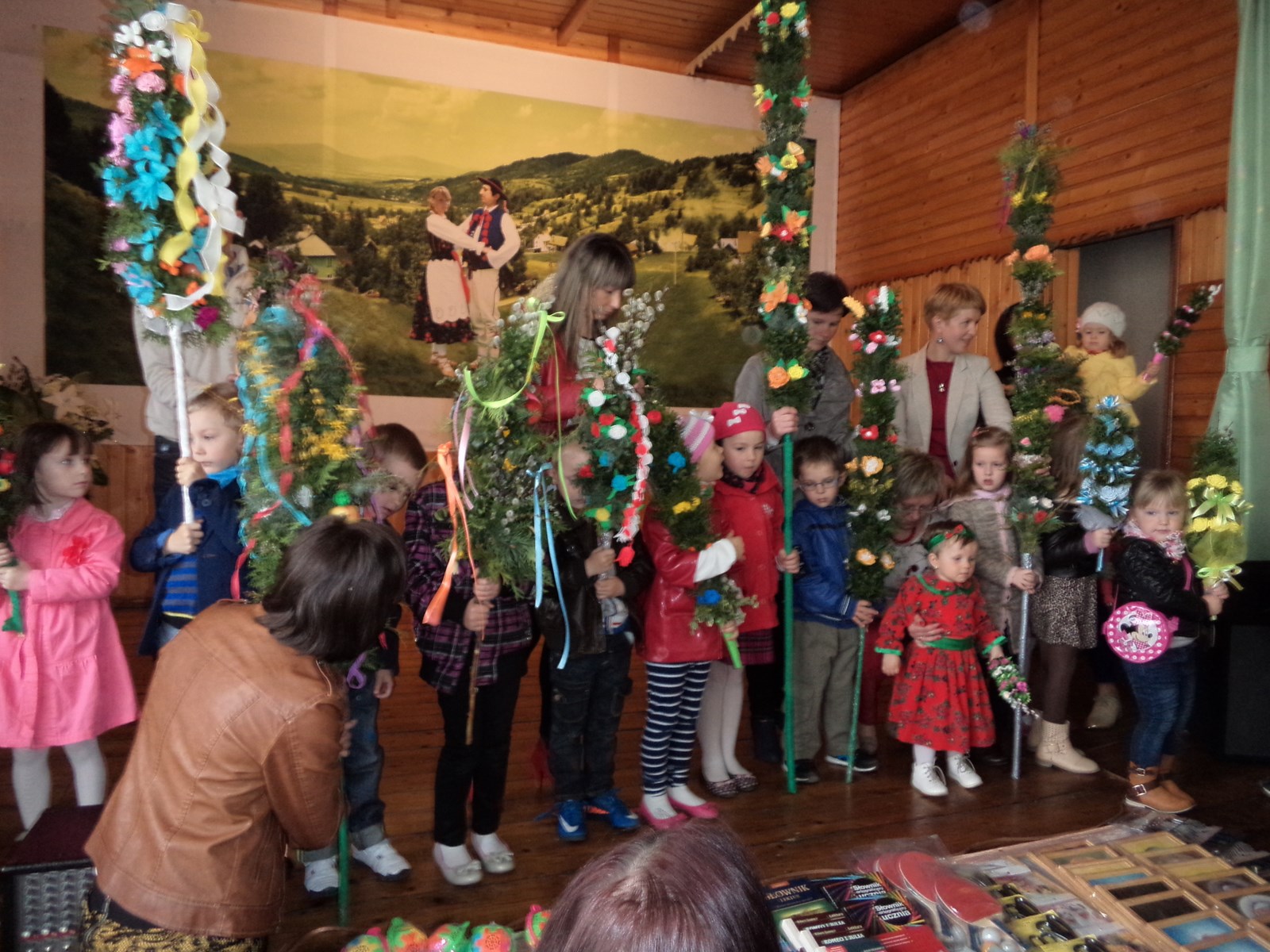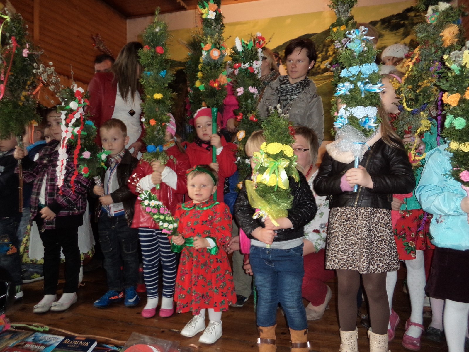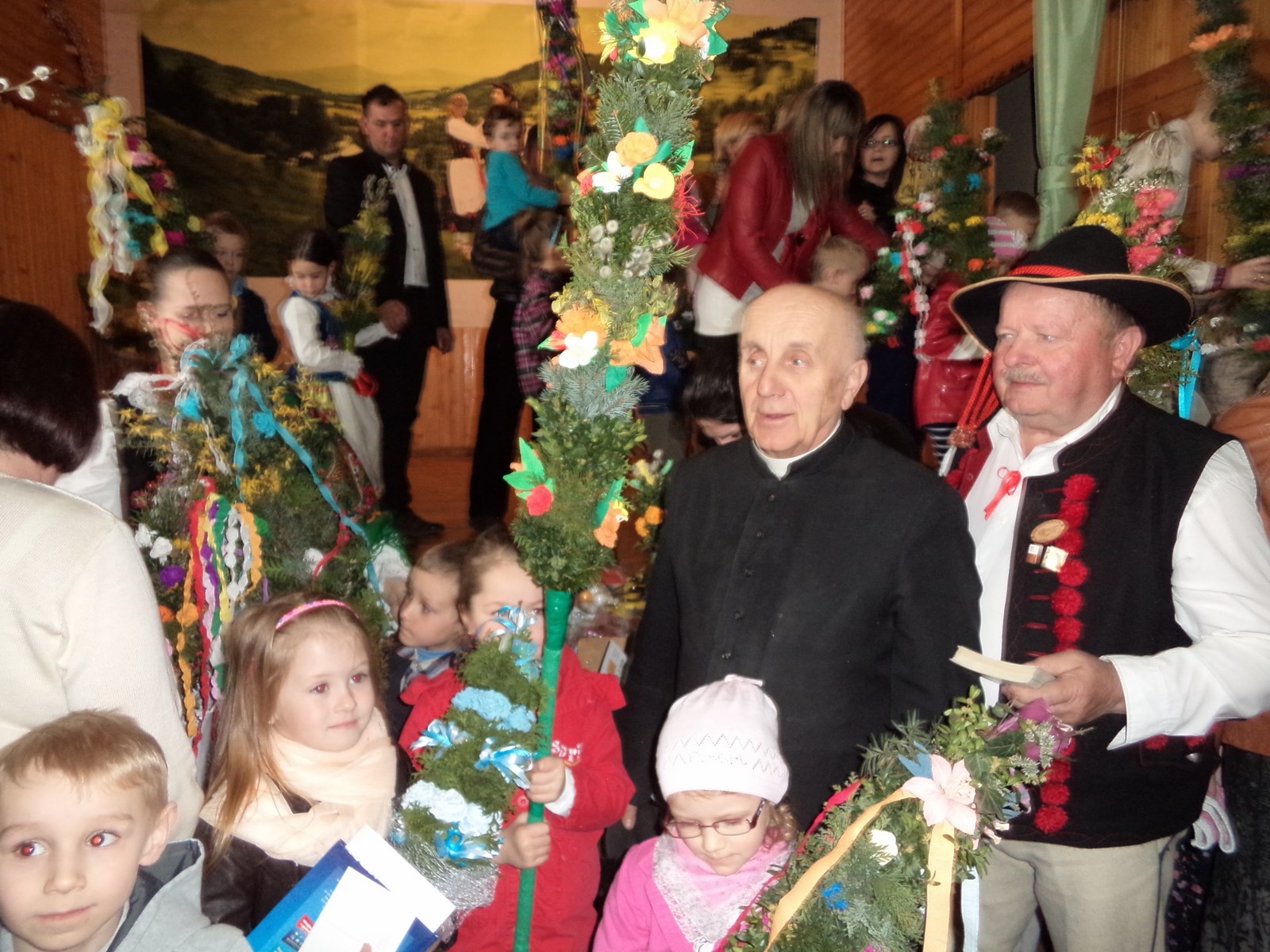 W Niedzielę Palmową Kościół w Juszczynie, jak co roku wypełnił się barwnymi bibułkowymi kwiatami i wonią świeżych zielonych gałązek. Barwny korowód okrążył najpierw kościół w procesyjnym orszaku, następnie – po zakończeniu Mszy Świętej – mieszkańcy sołectwa udali się do domu ludowego, gdzie odbyła się cześć konkursowa.