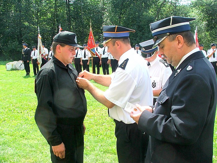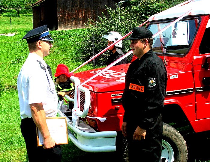 Następnie poświęcono nowy pojazd i przekazano kluczyki jednostce OSP z Juszczyny. W trakcie uroczystości odznaczono również wyróżniających się strażaków, medalami i pucharami. Na uroczystości obecny był Starosta Powiatu Żywieckiego Andrzej Zieliński, przedstawiciele samorządu powiatu i gminy, oraz delegacje zaprzyjaźnionych jednostek OSP. Uroczystość w Juszczynie uświetniła Orkiestra Dęta działająca przy OSP w Radziechowach, a miejscowe KGW zaprosiło wszystkich do sali Domu Ludowego na występ Kabaretu KGW i obiad dla wszystkich uczestników uroczystości. Imprezę zakończyły mecze rozgrywane przez strażaków na nowym boisku w Juszczynie i FESTYN taneczny.
