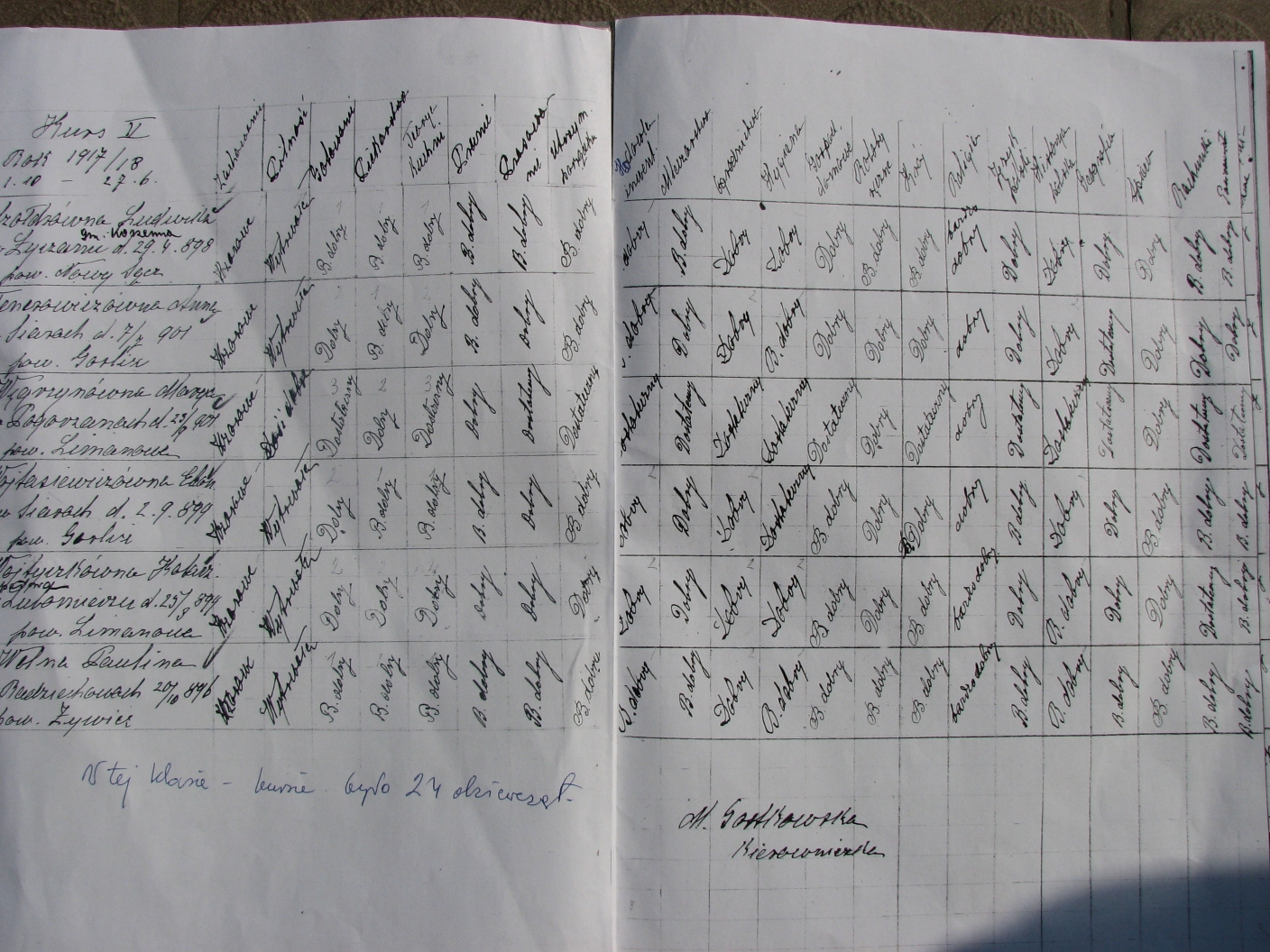 Publiczne Przedszkole w Radziechowach realizuje projekt regionalny „Przodków wiary, przodków gwary niechaj strzeże młody, stary”- Historia radziechowskiego rodu Pieronków. Zaproszenie do przedszkola Pań: Stanisławy Juraszek, Krystyny Mieszczak, Marii Roczyny i Janiny Juraszek, wieloletnich członkiń Koła Gospodyń Wiejskich, miało na celu zapoznanie przedszkolaków i ich wychowawczyń z historią i działalnością KGW w Radziechowach. Motywem przewodnim spotkania z działaczkami Koła Gospodyń Wiejskich w Radziechowach było wspomnienie o Paulinie Pieronek (1896-1989) oraz jej córce Marii Habdas (1925-2015). Obydwie panie zapisały piękne karty w historii powstania i działalności radziechowskiego KGW. Paulina Pieronek (żona Władysława Pieronka) była absolwentką Szkoły Gospodarczej w Podegrodziu. Z arkusza ocen (fotografia poniżej) dowiadujemy się o przedmiotach w szkole, do której uczęszczała wtedy jeszcze jako Paulina Wolny: gotowanie, pranie, utrzymanie porządku, prasowanie, higiena, hodowla inwentarza, mleczarstwo, ogrodnictwo, krój, historia, język polski, rachunki , śpiew… W późniejszym czasie tak gruntownie wyedukowana kobieta mając przy boku męża społecznika, postanowiła podzielić się swoją wiedzą z innymi mieszkankami Radziechów. W 1926 r. założono w Radziechowach Związek Pracy Obywatelskiej Kobiet, którego organizatorami byli: Paulina Pieronek, Kunegunda Habdas, Władysław Pieronek, Karolina Setla, Maria Pieronek, Helena Byrdziak. Wkrótce potem związek zmienił nazwę na Koło Gospodyń Wiejskich. Rozpoczęła się działalność edukacyjna Koła. Organizowane były kursy dla kobiet gotowania i przygotowywania przetworów z owoców i warzyw, kursy trykotarskie, hafciarskie koronkarskie, przędzenia lnu i wełny. Inżynierowie z Żywca i Białej na wykładach szkolili kobiety w zakresie zakładania przydomowych ogródków kwiatowych i warzywnych oraz prawidłowej hodowli inwentarza. W 1926 roku grupa kobiet z Koła Gospodyń (Paulina Pieronek, Maria Pieronek, Karolina Setla, Byrdziak Helena i inne) założyła ochronkę dla dzieci 5- i 6- letnich. Datę tę możemy uznać za początek powstania przedszkola w Radziechowach. Początkowo przedszkole utrzymywane było ze środków własnych i datków mieszkańców. Później staraniem ówczesnego wójta Władysława Pieronka zaczęło się dofinansowanie ze środków gminnych i z powiatu. Wszystkie te informacje zawarte są w kronice KGW przyniesionej do przedszkola przez zaproszone panie, a pięknie przybliżone dzieciom przez panią Krystynę Mieszczak. Pani Stanisława Juraszek podzieliła się swoimi wspomnieniami o dawnych czasach działalności Koła. Wspominała postać pani Pauliny Pieronek i jej córki Marii Habdas- koleżanki ze szkolnej ławy. Do Koła Gospodyń Wiejskich w Radziechowach od wielu lat należy również druga córka Pauliny Pieronek- pani Czesława Matlak. Wzruszające były opowieści o zabawach w dzieciństwie, młodości w Kole Gospodyń, o gawędach, z których pani Stasia znana jest w całym regionie. Pani Maria Roczyna opowiedziała o zasłyszanych wspomnieniach rodzinnych z czasów promowania Radziechów przez wójta Władysława Pieronka jako miejscowości uzdrowiskowej i o przyjazdach letników z całej Polski. Nie zabrakło też informacji o współczesnej działalności radziechowskiego Koła Gospodyń Wiejskich i jego znaczeniu dla promowania góralskich tradycji regionalnych poprzez organizację dożynek, imprez środowiskowych oraz sukcesy w konkursach.