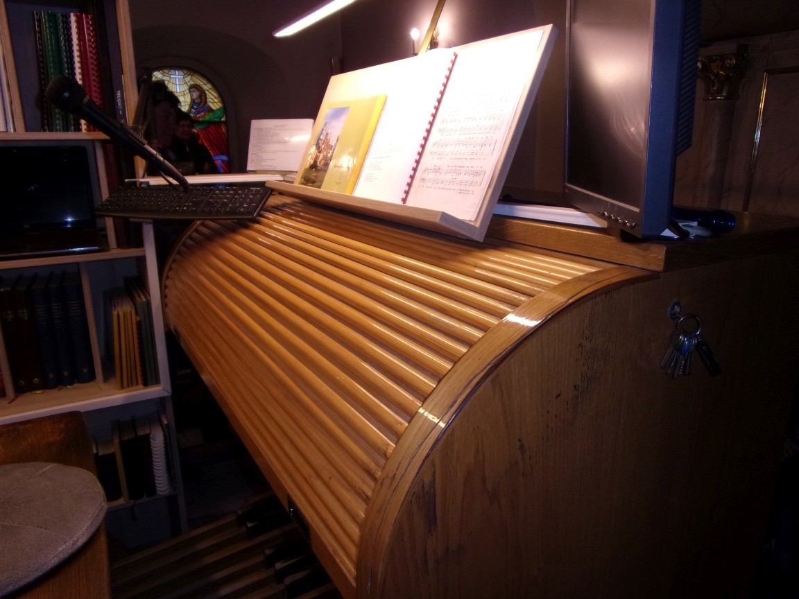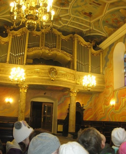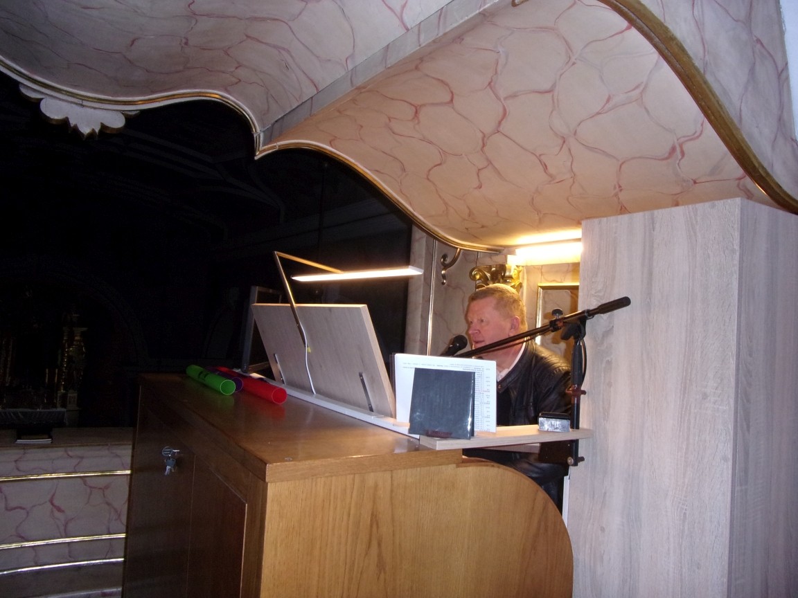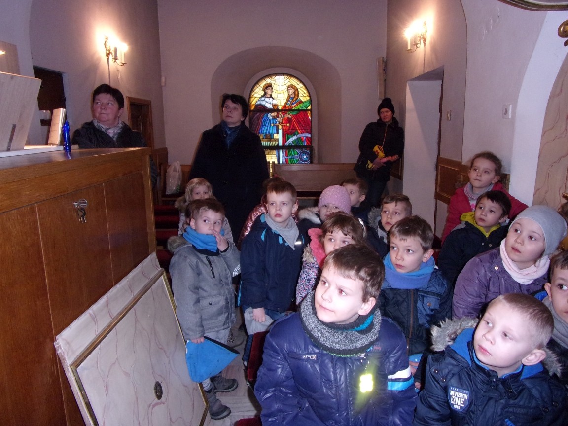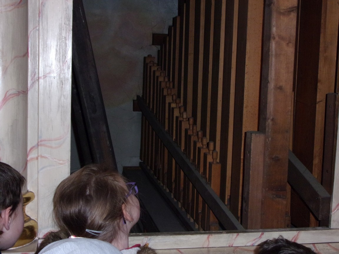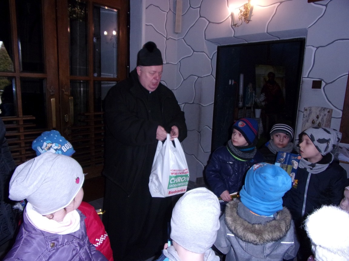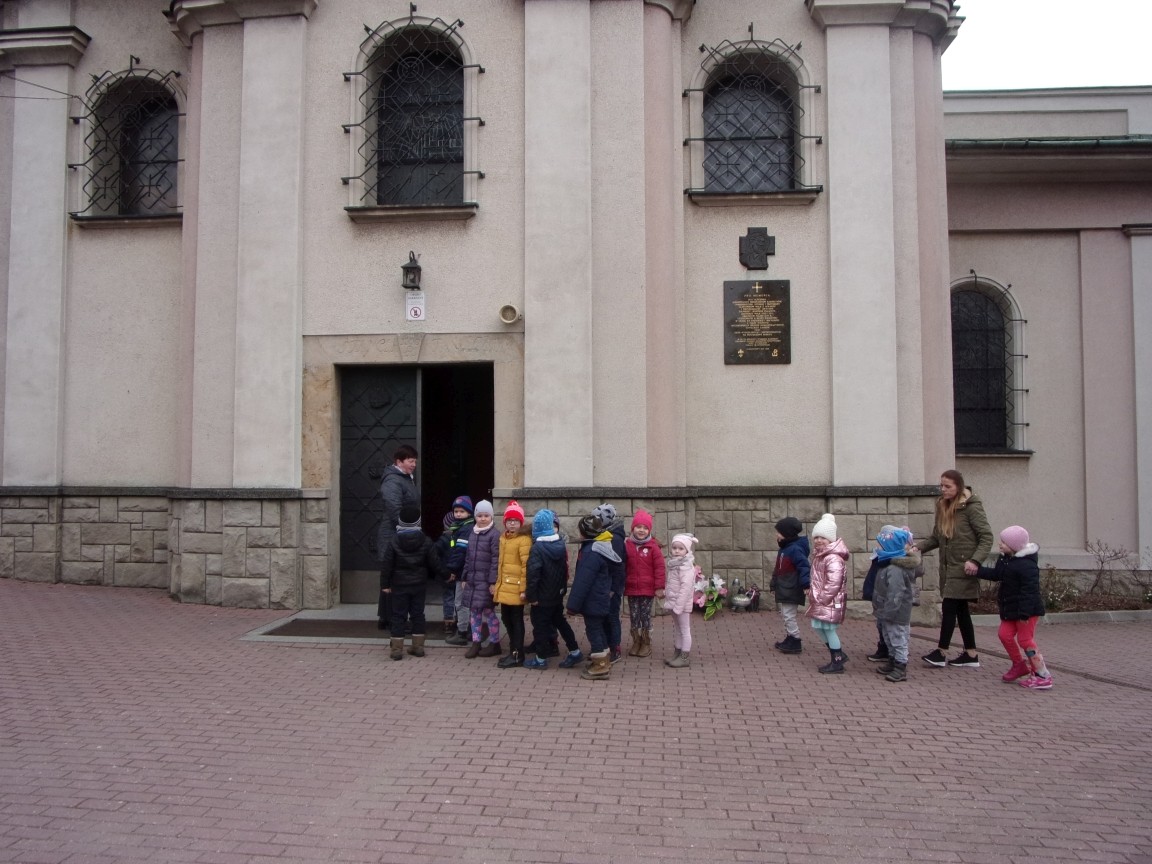 Organista Pan Jerzy Greń w niezwykle przystępny sposób przybliżył przedszkolakom i ich wychowawczyniom wszystkie tajniki królewskiego instrumentu. Z zapartym tchem dzieci słuchały granych przez niego utworów Jana Sebastiana Bacha. Entuzjazm wzbudził fragment  etiudy zagrany przez Pana Jerzego… nogami! Dzieci podziwiały imponującą konstrukcję organów kościelnych. Dowiedziały się, że przepiękna fasada organów widoczna dla wszystkich odwiedzających Kościół, to zaledwie niewielka część królewskiego instrumentu. Pan Jerzy opisał  działanie piszczałek organowych (osiągających nawet  5 m wysokości), wentylatora i pulpitu z trzema klawiaturami. Zaprezentował też historyczną już dzisiaj funkcję „kalikanta”, mechanicznie napełniającego miechy organowe powietrzem. Zachwyt dzieci wzbudziło malowidło na stropie chóru, o którym Ks. Jan Kracik napisał w swoim opracowaniu „Radziechowy. Parafia z jagiellońskich czasów” : „Na chórze- malowana na platformie muzykalna św. Cecylia patronuje pracy pana organisty, a szyba o zachodzie słońca przepuszcza promienie przez czerwone i niebieskie szaty Barbary i Katarzyny”.  Z całego serca dziękujemy Księdzu Dziekanowi oraz Panu Jerzemu Greniowi za niezwykle wartościowe spotkanie.