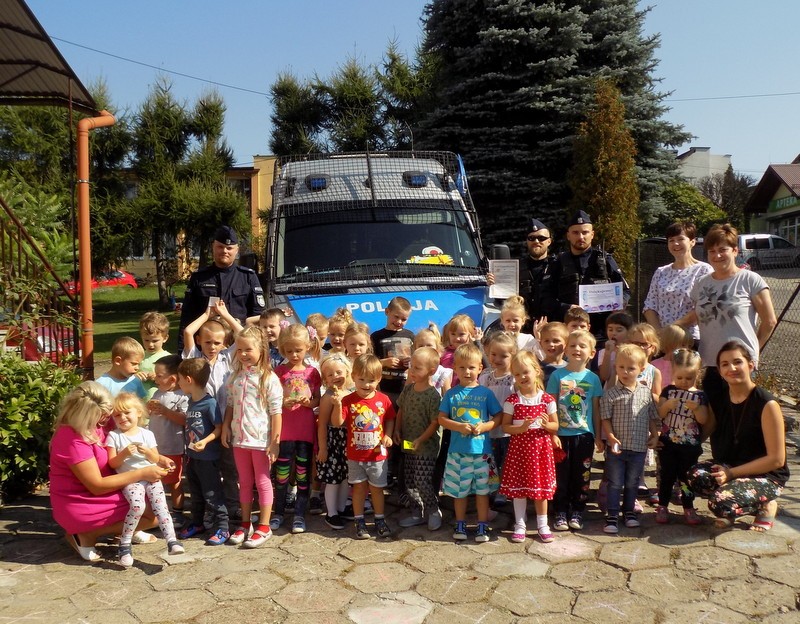 Na zakończenie przedszkolaki ze wszystkich grup podziękowały gościom za wspaniałą lekcję bezpieczeństwa oraz przekonały się, że policjant to osoba, do której zawsze można zwrócić się z prośbą o pomoc. Funkcjonariusze zostali zaproszeni na kolejną prelekcję z naszymi przedszkolakami, a kończące się spotkanie uwieczniono na wielu fotografiach, które znaleźć można na stronie internetowej Publicznego Przedszkola w Wieprzu www.ppwieprz.szkolnastrona.pl. Zapraszamy do oglądania.