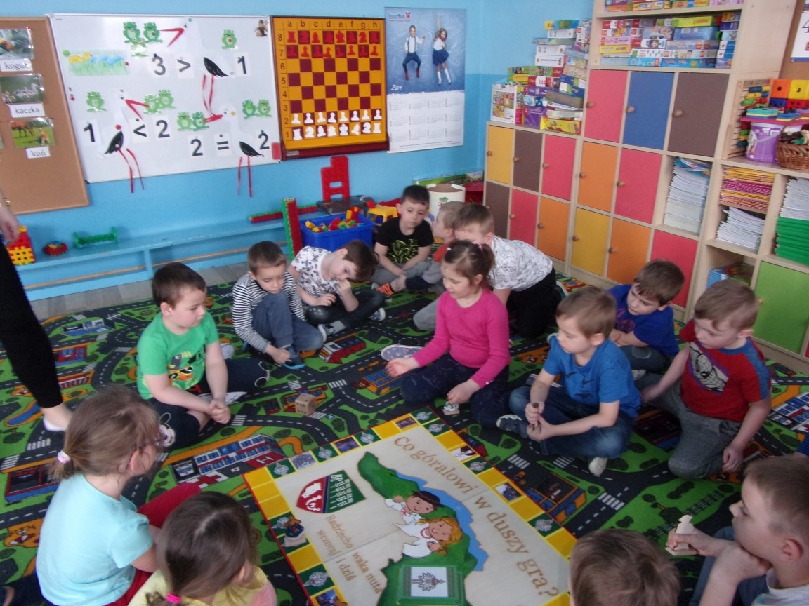 Przedszkole im. Władysława Pieronka w Radziechowach od kilku lat bierze udział w kolejnych edycjach Wojewódzkiego Konkursu - Edukacja Regionalna w Szkole - "Proszę Was pozostańcie wierni temu dziedzictwu" - Jan Paweł II . Organizatorami tegorocznej X edycji konkursu jest Wojewoda Śląski oraz Śląski Kurator Oświaty przy współpracy Zespołu Pieśni i Tańca „Śląsk”. W tym roku konkurs ma zasięg ogólnopolski i realizowany jest pod patronatem Ministra Edukacji Narodowej. Jest to konkurs wieloetapowy, jego realizacja trwa od grudnia aż po czerwiec, a skierowany jest do przedszkoli, szkół podstawowych, gimnazjalnych i ponadgimnazjalnych z terenu województwa śląskiego. W pierwszym etapie zgłoszone placówki oceniane są pod kątem całokształtu ich wieloletniej działalności w czterech obszarach: sposób realizacji edukacji regionalnej, baza placówki, współpraca ze środowiskiem oraz działania popularyzujące placówkę w regionie, kraju, a nawet poza jego granicami. W kolejnym etapie najwyżej ocenione placówki miały przygotować i zrealizować projekt edukacyjny z kręgu tematycznego „Życie muzyczne w mojej miejscowości i regionie” (Region- Ludzie- Muzyka) Jak już Państwu wiadomo z wcześniejszych publikacji, w ostatnich miesiącach Przedszkole im. Władysława Pieronka w Radziechowach realizowało projekt edukacyjny pod nazwą "Co góralowi w duszy gra? - Radziechowska nuta wczoraj i dziś”. Realizacja projektu obejmowała m.in. spotkania z regionalistami Grzegorzem Brodką i Brygidą Murańską. Przedszkole odwiedzili instrumentaliści Orkiestry Dętej w Radziechowach. Dzięki uprzejmości Księdza Proboszcza Piotra Pokojnikowa i organisty Jerzego Grenia poznaliśmy historię i budowę organów kościelnych. Jednym z efektów projektu, a zarazem zadaniem kolejnego etapu konkursu było stworzenie edukacyjnej gry planszowej „Co góralowi w duszy gra?’.