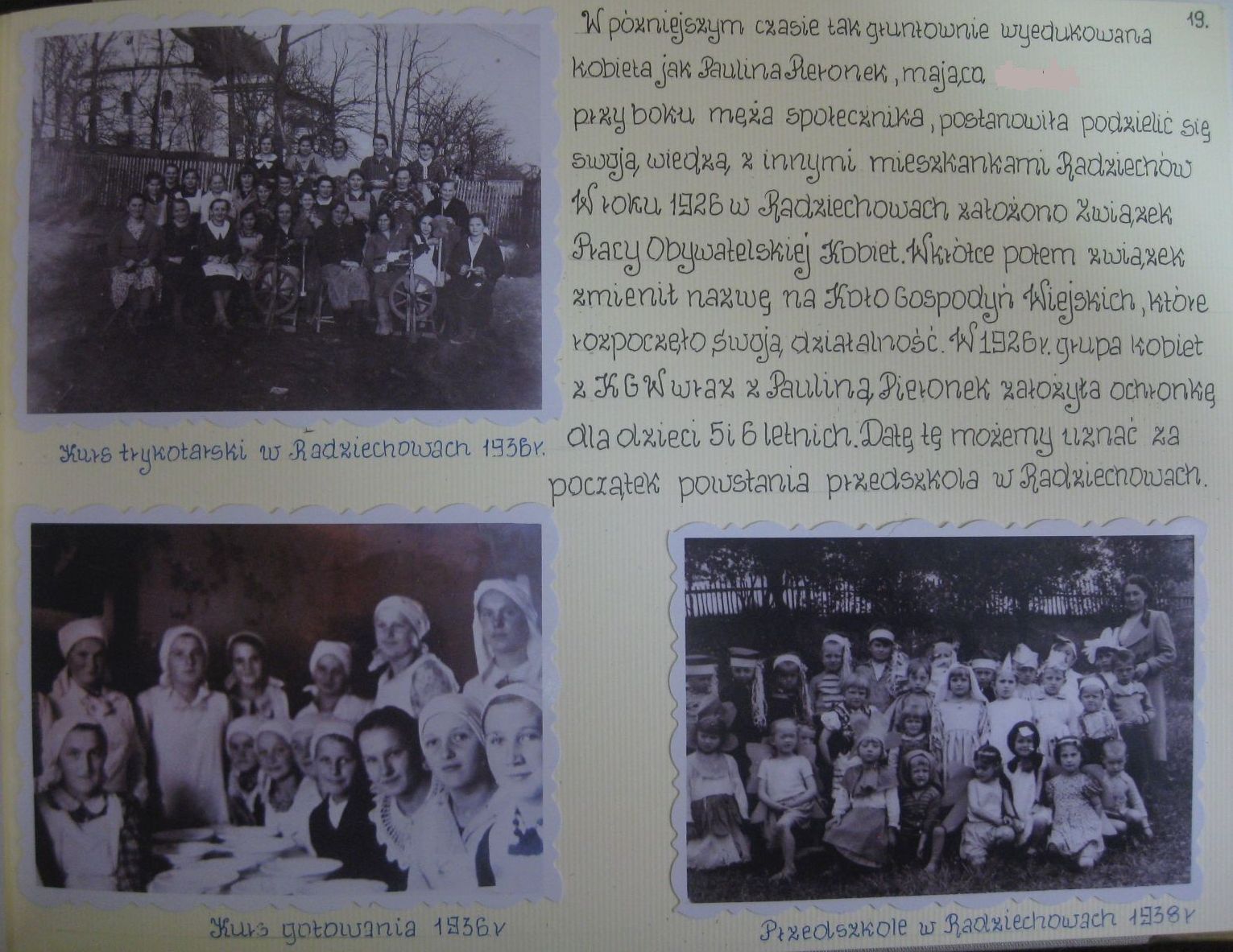 - Jednym z trwałych efektów realizacji projektu jest stworzenie kroniki, która została wręczona przedstawicielom rodu Pieronków podczas spotkania z przedszkolakami 20 maja 2016r. Stworzenie kroniki możliwe było dzięki zespołowej pracy nauczycieli i wychowanków Publicznego Przedszkola w Radziechowach oraz dzięki materiałom historycznym udostępnionym przez braci Mieczysława Pieronka i Księdza Biskupa Tadeusza Pieronka. W zebraniu informacji pomocne były też organizacje i instytucje współpracujące z przedszkolem: Oddział Górali Żywieckich Związku Podhalan, Koło Gospodyń Wiejskich, Parafia w Radziechowach oraz Ochotnicza Straż Pożarna w Radziechowach. Za obróbkę zdjęć i redagowanie tekstów odpowiedzialny był zespół w składzie: dyrektor Małgorzata Kasperek oraz nauczycielki: Mirosława Szala, Alicja Kąkol, Katarzyna Jakubiec, Renata Dziergas, Magdalena Brodka i Aleksandra Kania. Wszystkie teksty i zdobienia graficzne wykonała ręcznie nauczycielka Krystyna Tlałka. Prace plastyczne zostały wykonane przez dzieci pod kierunkiem nauczycielek Justyny Migdał Kasperek, Mirosławy Szali, Jadwigi Howaniec i Krystyny Tlałki. Piękny haft na stronie tytułowej wykonali: Marek Jurasz (Prezes Stowarzyszenia Społeczno-Kulturalnego "Grojcowianie") oraz Henryk Martyniak (właściciel firmy Hebomar). Powstały trzy bliźniacze egzemplarze kroniki.