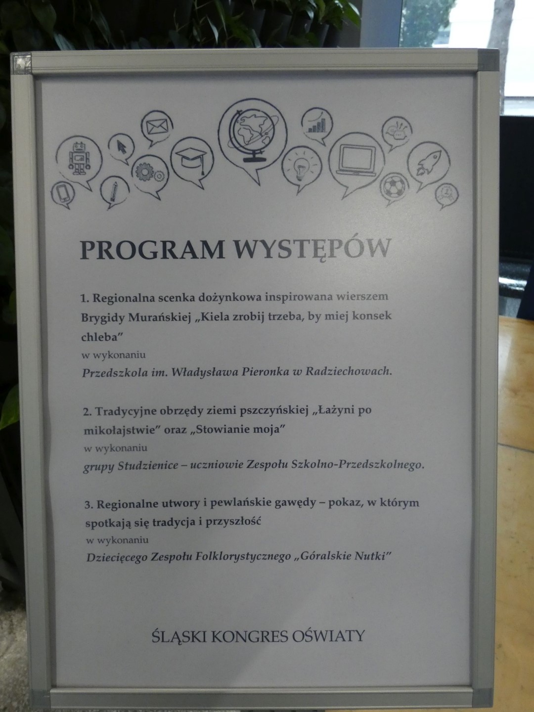 W dniu 17 września 2025 r. reprezentacja Przedszkola im. Władysława Pieronka w Radziechowach miała zaszczyt gościć na Uniwersytecie Śląskim w Katowicach. Zostaliśmy zaproszeni przez organizatorów Śląskiego Kongresu Oświaty 2025 do zaprezentowania uczestnikom jednego z najważniejszych wydarzeń edukacyjnych w regionie, przykładu dobrej praktyki realizacji edukacji regionalnej w przedszkolu. Zaproszenie dla reprezentacji przedszkola i Wójta Gminy Macieja Miki wystosowali: