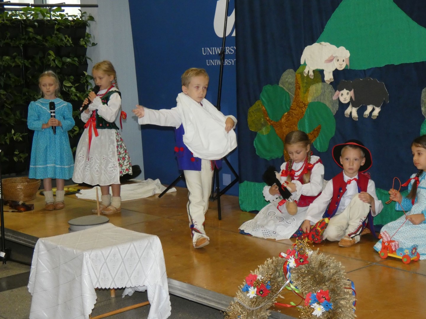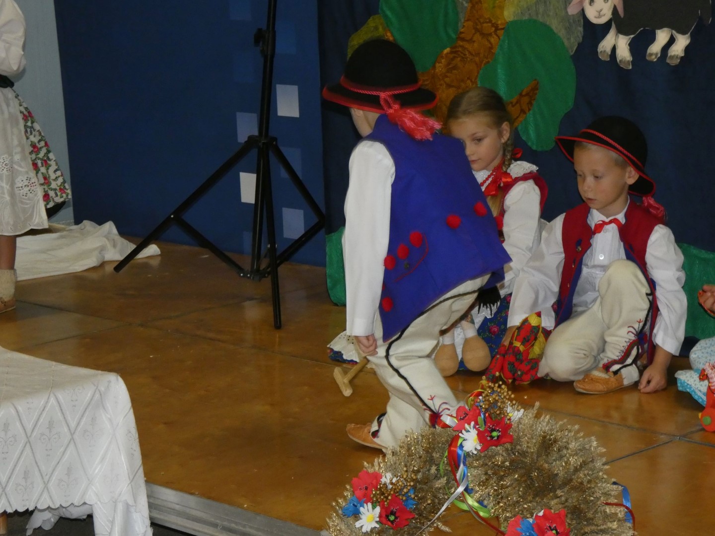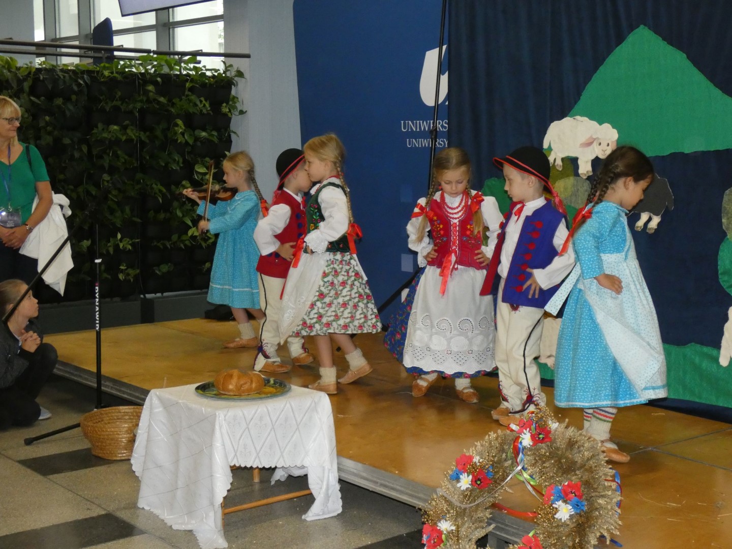 Podczas Kongresu przedszkolaki z naszej placówki przedstawiły dla zgromadzonych gości scenkę dożynkową inspirowaną wierszem Brygidy Murańskiej „Kiela zrobij trzeba, by miej konsek chleba” oraz piosenkę o redyku. Zaprezentowany program artystyczny spotkał się z bardzo ciepłym przyjęciem i uznaniem uczestników wydarzenia. Występ dzieci w tradycyjnych strojach regionalnych, pełen radości, muzyki i symboliki dożynkowej, był nie tylko pięknym akcentem artystycznym, ale również okazją do podkreślenia znaczenia edukacji przedszkolnej w pielęgnowaniu dziedzictwa kulturowego i tożsamości lokalnej.