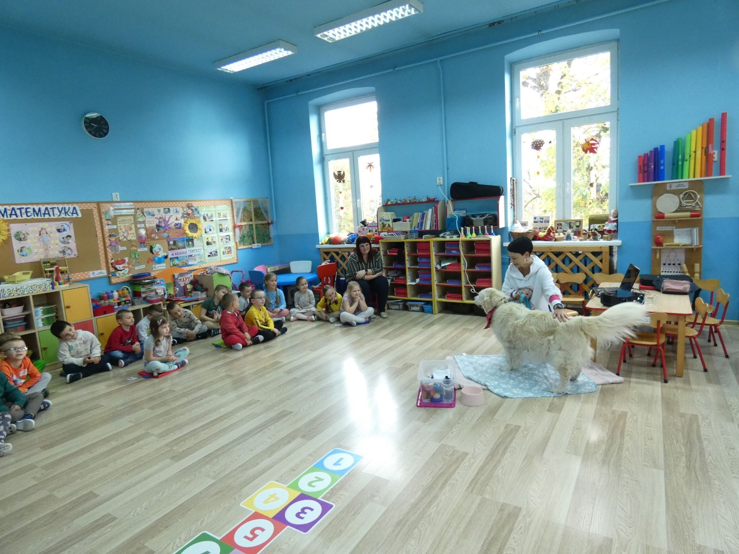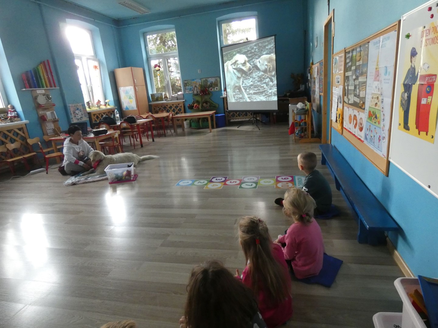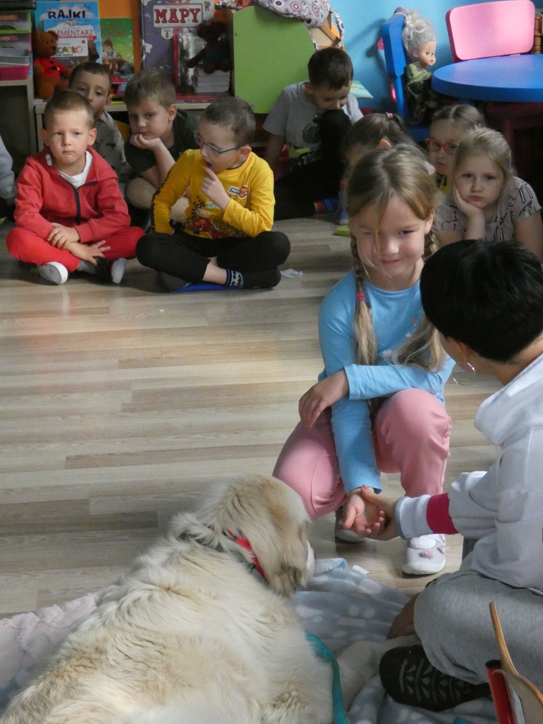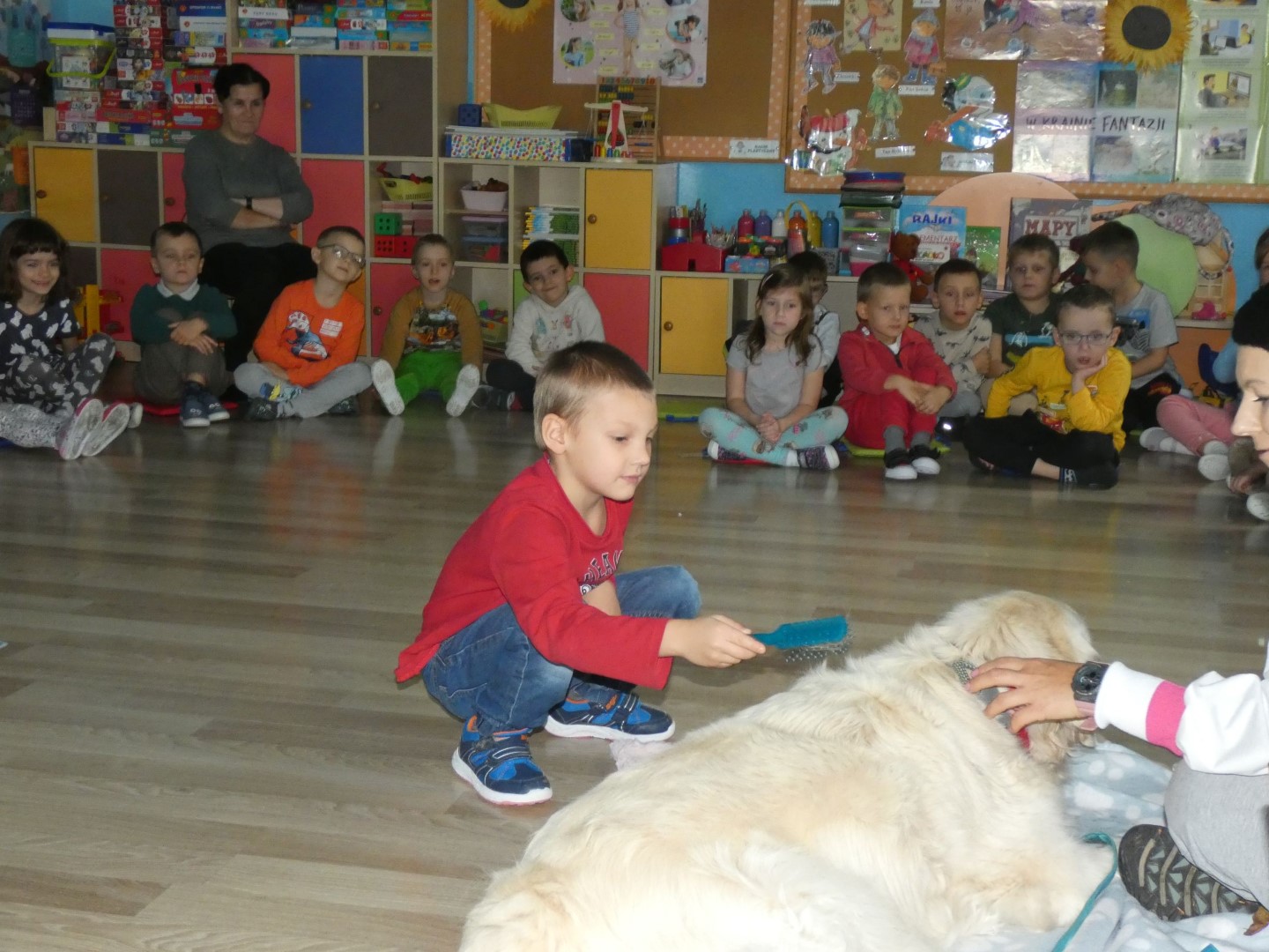 W dniu 19 października 2022r. w Przedszkolu im. Władysława Pieronka w Radziechowach odbyły się zajęcia edukacyjne pt. „Dzieciaki poznają psiaki”. Warsztaty przeprowadzone z dziećmi przez Panią Annę Kwaśny, szkoleniowca i behawiorystę psów, miały na celu przede wszystkim kształtowanie właściwych postaw dzieci w relacjach z psem. Przedszkolaki uczyły się interpretować emocje i zachowania psa. Poznały też wiele przykładów nieprawidłowych reakcji w kontakcie z czworonogami. W spotkaniu uczestniczył przepiękny pies rasy golden retriever o imieniu Wafel. Dzieci w toku interaktywnych zabaw z psem uczyły się prawidłowo interpretować stany emocjonalne psa, z którymi związany jest określony sposób postępowania wobec czworonoga. Pies Wafel wykazał się wielką wyrozumiałością i cierpliwością. Dla wszystkich uczestników spotkania było to niezwykle cenne doświadczenie. Już niebawem kolejne grupy przedszkolne będą miały okazję spotkania z Panią Anią i Wafelkiem, aby wspólnie uczyć się bezpiecznych relacji z czworonogami. Serdecznie dziękujemy Pani Barbarze Lizak, pracownikowi Urzędu Gminy w Radziechowach za inspirację i pomoc w realizacji tych niezwykle wartościowych dla bezpieczeństwa najmłodszych mieszkańców gminy warsztatów.