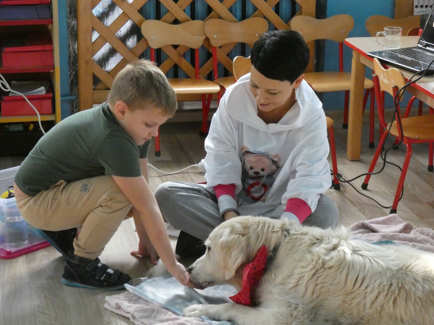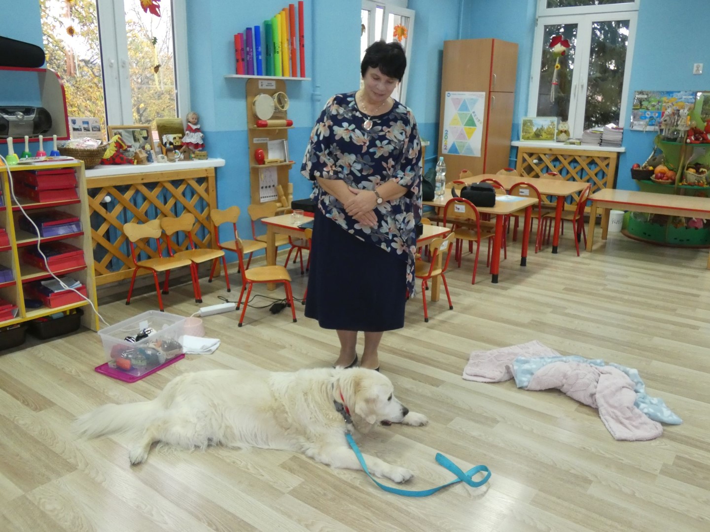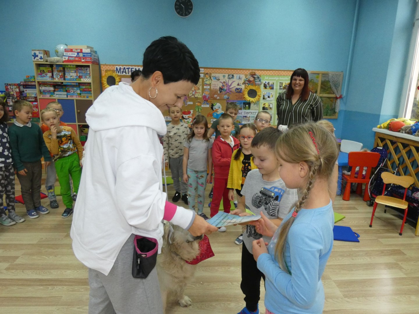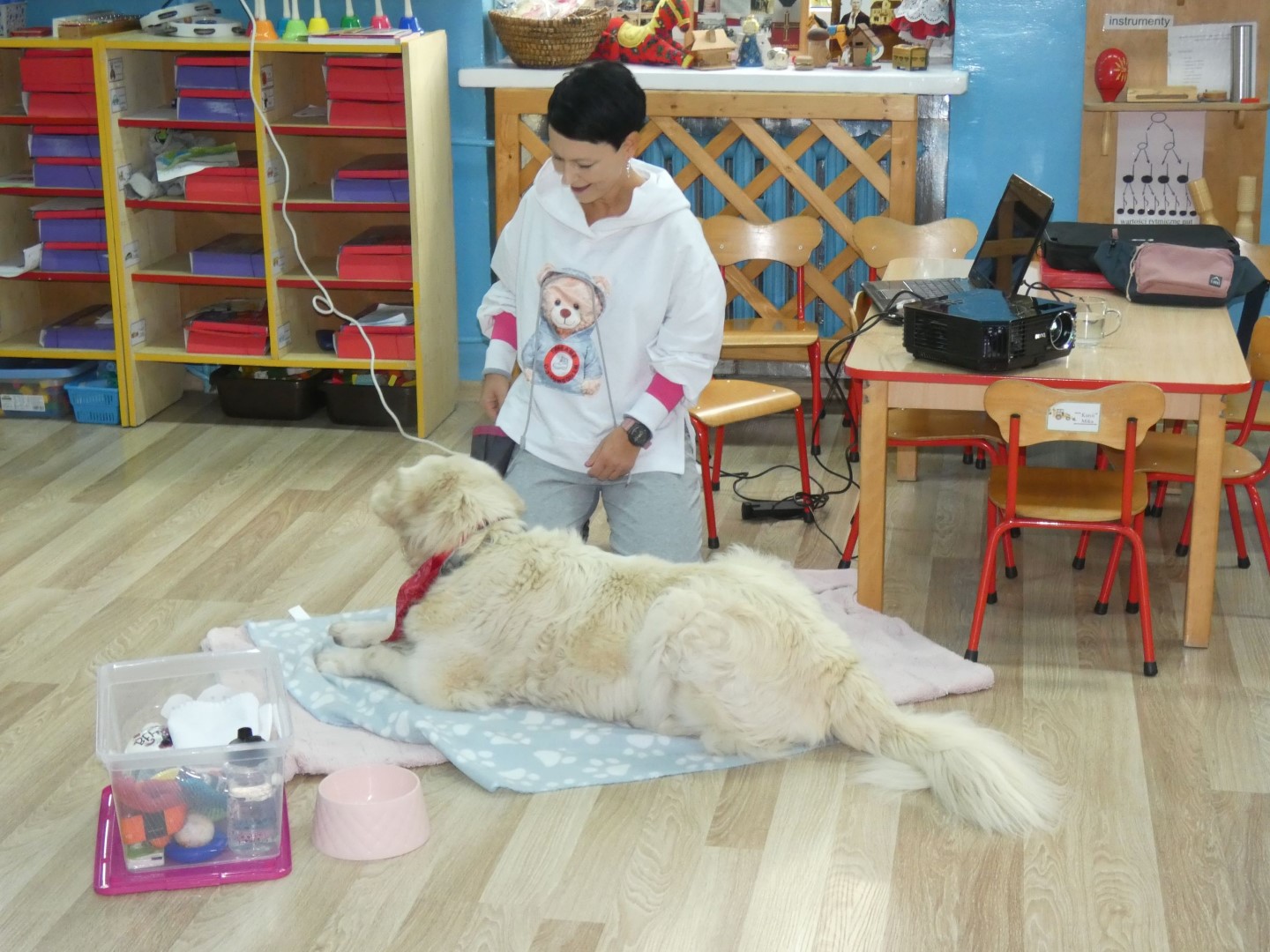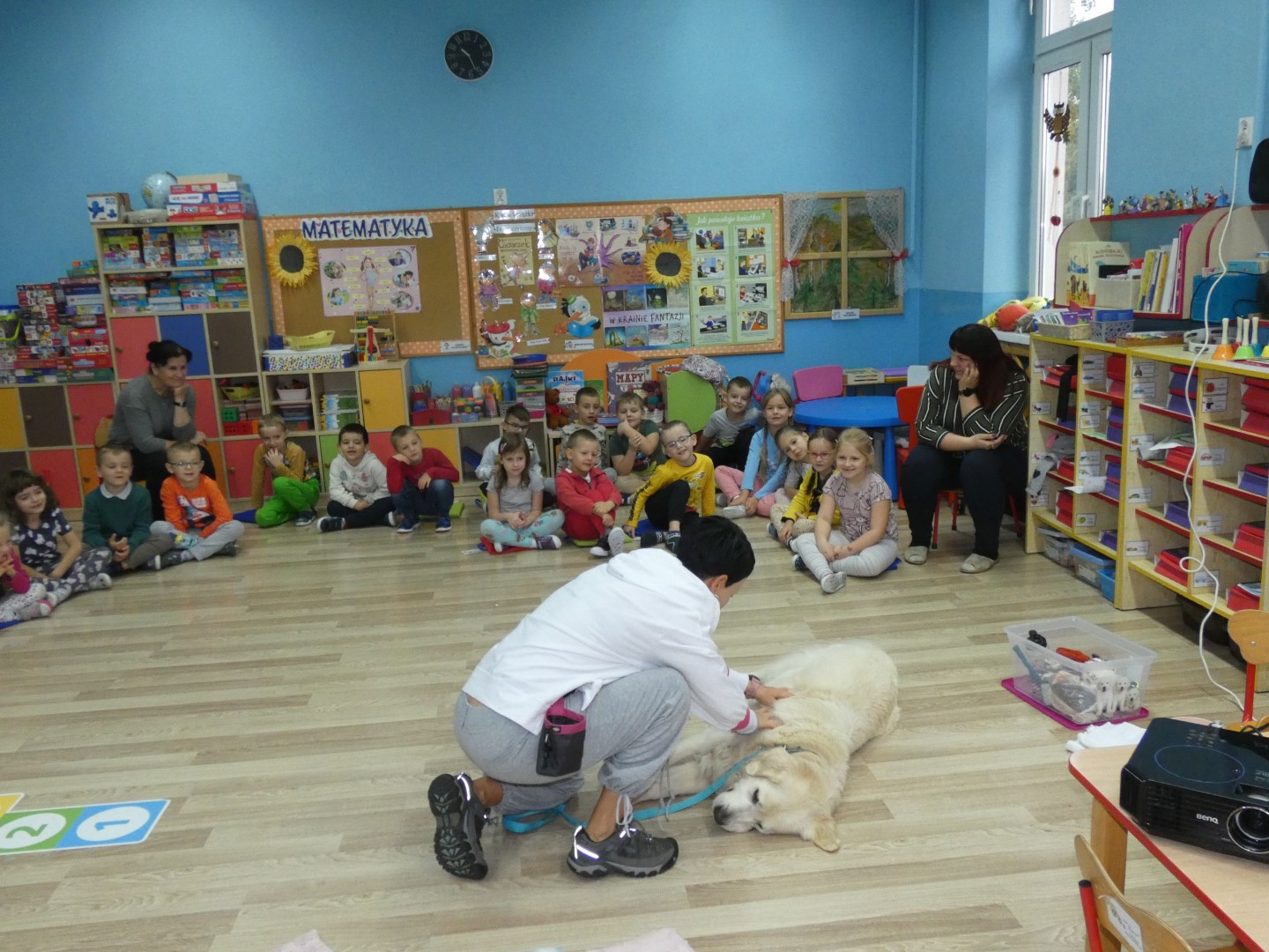 W dniu 19 października 2022r. w Przedszkolu im. Władysława Pieronka w Radziechowach odbyły się zajęcia edukacyjne pt. „Dzieciaki poznają psiaki”. Warsztaty przeprowadzone z dziećmi przez Panią Annę Kwaśny, szkoleniowca i behawiorystę psów, miały na celu przede wszystkim kształtowanie właściwych postaw dzieci w relacjach z psem. Przedszkolaki uczyły się interpretować emocje i zachowania psa. Poznały też wiele przykładów nieprawidłowych reakcji w kontakcie z czworonogami. W spotkaniu uczestniczył przepiękny pies rasy golden retriever o imieniu Wafel. Dzieci w toku interaktywnych zabaw z psem uczyły się prawidłowo interpretować stany emocjonalne psa, z którymi związany jest określony sposób postępowania wobec czworonoga. Pies Wafel wykazał się wielką wyrozumiałością i cierpliwością. Dla wszystkich uczestników spotkania było to niezwykle cenne doświadczenie. Już niebawem kolejne grupy przedszkolne będą miały okazję spotkania z Panią Anią i Wafelkiem, aby wspólnie uczyć się bezpiecznych relacji z czworonogami. Serdecznie dziękujemy Pani Barbarze Lizak, pracownikowi Urzędu Gminy w Radziechowach za inspirację i pomoc w realizacji tych niezwykle wartościowych dla bezpieczeństwa najmłodszych mieszkańców gminy warsztatów.