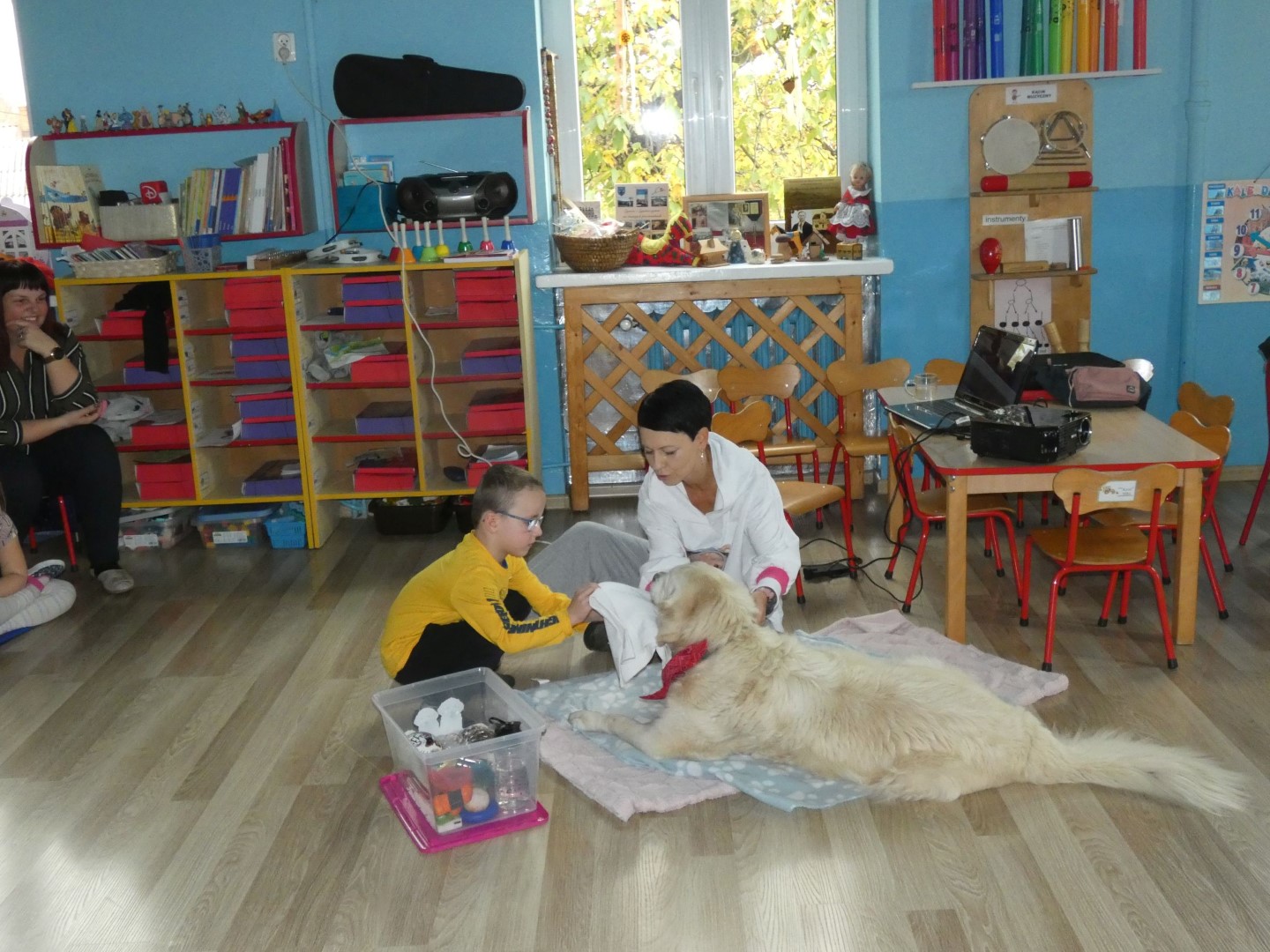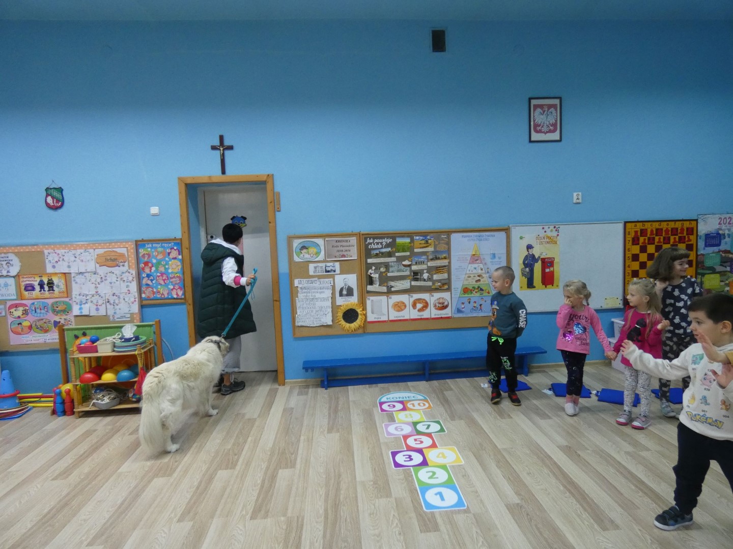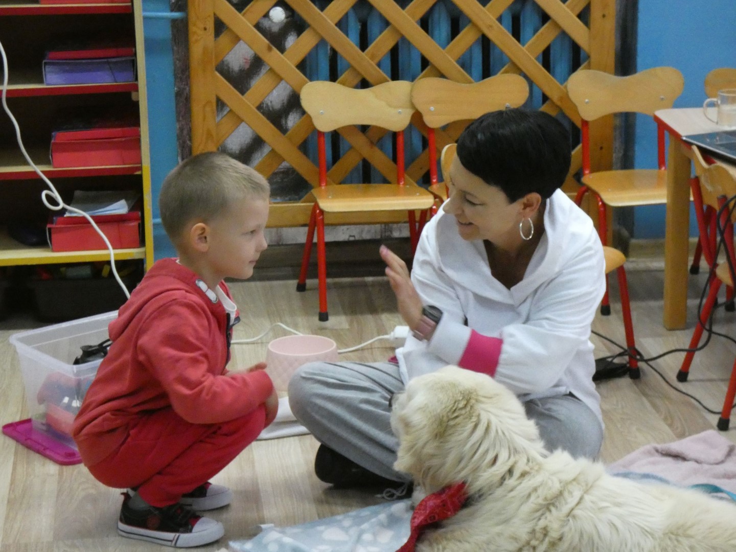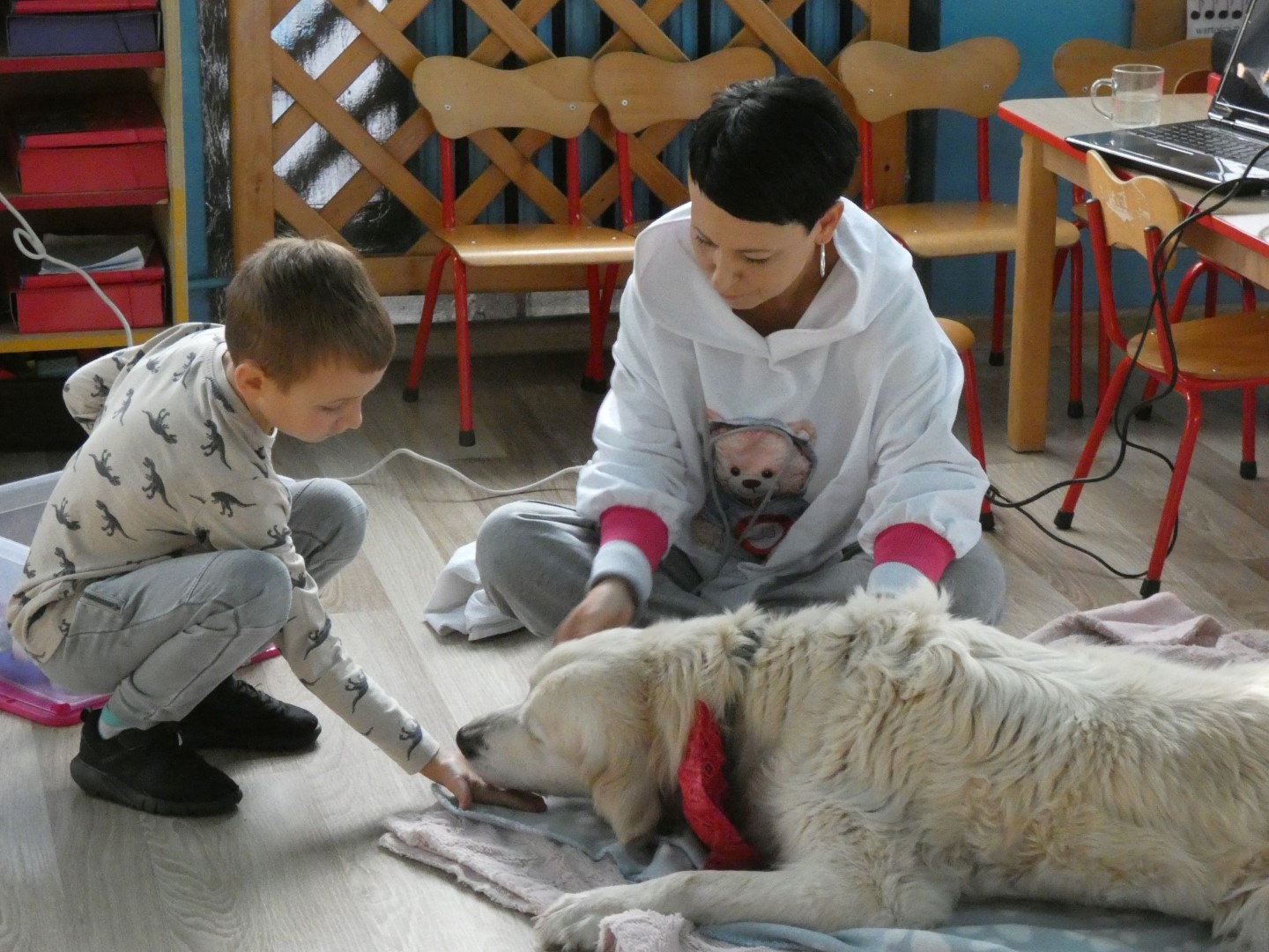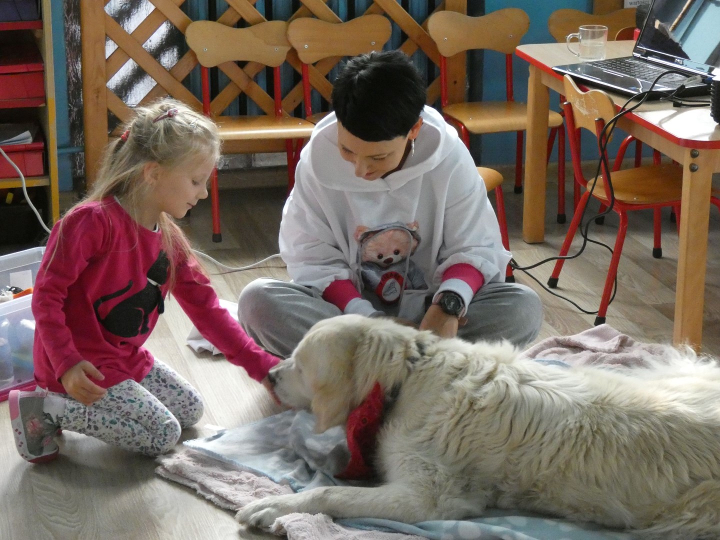 W dniu 19 października 2022r. w Przedszkolu im. Władysława Pieronka w Radziechowach odbyły się zajęcia edukacyjne pt. „Dzieciaki poznają psiaki”. Warsztaty przeprowadzone z dziećmi przez Panią Annę Kwaśny, szkoleniowca i behawiorystę psów, miały na celu przede wszystkim kształtowanie właściwych postaw dzieci w relacjach z psem. Przedszkolaki uczyły się interpretować emocje i zachowania psa. Poznały też wiele przykładów nieprawidłowych reakcji w kontakcie z czworonogami. W spotkaniu uczestniczył przepiękny pies rasy golden retriever o imieniu Wafel. Dzieci w toku interaktywnych zabaw z psem uczyły się prawidłowo interpretować stany emocjonalne psa, z którymi związany jest określony sposób postępowania wobec czworonoga. Pies Wafel wykazał się wielką wyrozumiałością i cierpliwością. Dla wszystkich uczestników spotkania było to niezwykle cenne doświadczenie. Już niebawem kolejne grupy przedszkolne będą miały okazję spotkania z Panią Anią i Wafelkiem, aby wspólnie uczyć się bezpiecznych relacji z czworonogami. Serdecznie dziękujemy Pani Barbarze Lizak, pracownikowi Urzędu Gminy w Radziechowach za inspirację i pomoc w realizacji tych niezwykle wartościowych dla bezpieczeństwa najmłodszych mieszkańców gminy warsztatów.