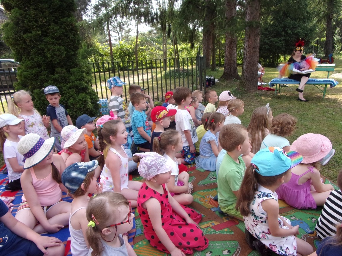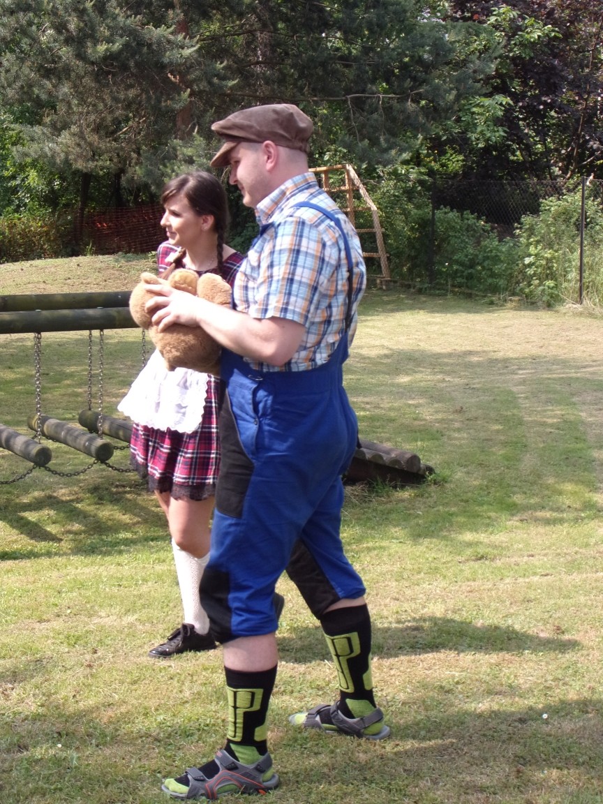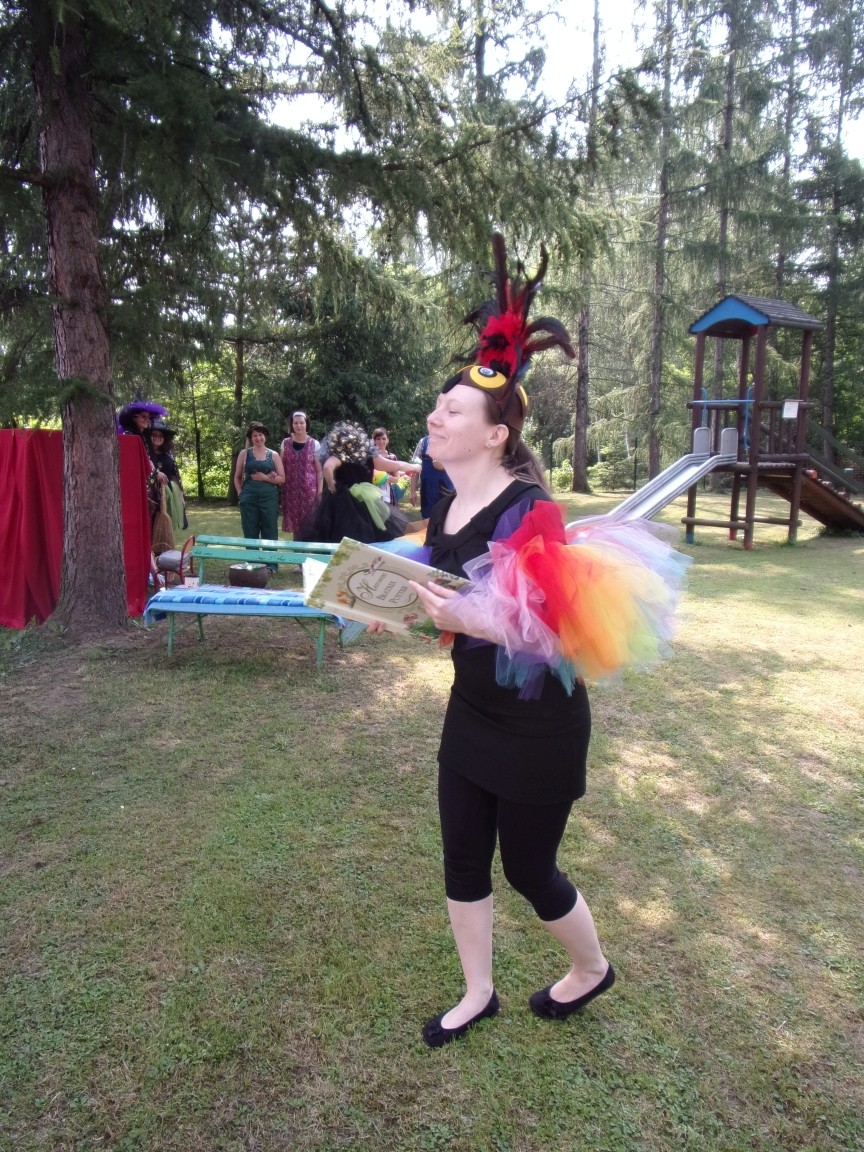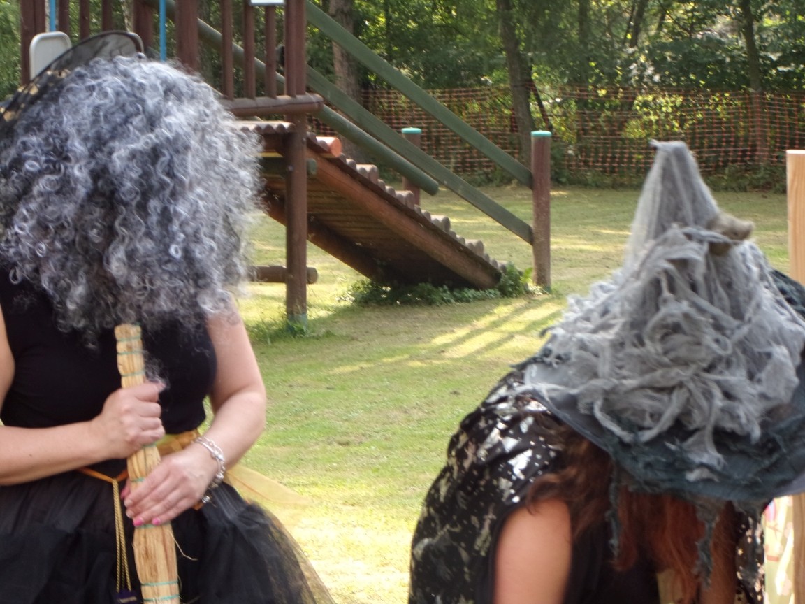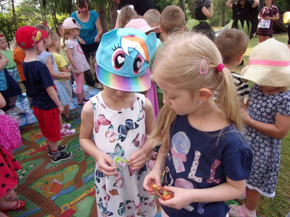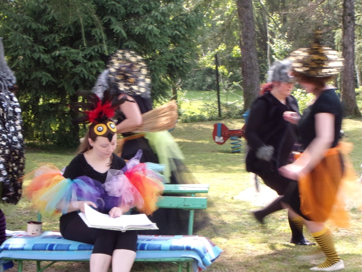 A co działo się później? Tego ani Jan Brzechwa, ani nawet Bracia Grimm nie mogli przewidzieć w swoich wersjach bajki o Jasiu i Małgosi. Nie jedna ale cztery czarownice wirowały w złowrogim tańcu wokół klatki z uwięzionymi głównymi bohaterami bajki. Wilk, który na szczęście okazał się wegetarianinem, drwal, który omal nie unicestwił naszej autentycznej starej jabłoni w ogrodzie przedszkolnym, narrator w barwach rajskiego ptaka i przede wszystkim rewelacyjna kreacja Jasia i Małgosi. Pomyślicie, że to aktualny repertuar Teatru Polskiego w Bielsku- Białej lub przynajmniej Teatru Lalek „Banialuka”? O nie, drodzy Państwo! Takie przedstawienie zostało opracowane i wystawione na placu zabaw przy Przedszkolu im. Władysława Pieronka w Radziechowach. Przedstawienia teatralne dla przedszkolaków przygotowywane wspólnie przez nauczycielki i rodziców wpisały się już w tradycję przedszkola. Pamiętamy rewelacyjne sztuki z lat poprzednich: „Kopciuszek” i „Czerwony Kapturek”. W tym roku przyszedł czas na bajkę pt. „Jaś i Małgosia”. Nie da się opisać radości dzieci i emocji związanych z odnajdywaniem w nietypowej roli swoich pań wychowawczyń i rodziców. Nadal pozostaję pod ogromnym wrażeniem tego wydarzenia i myślę, że podzielicie Państwo moje zdanie po obejrzeniu fotorelacji.