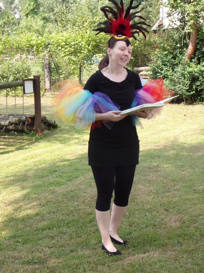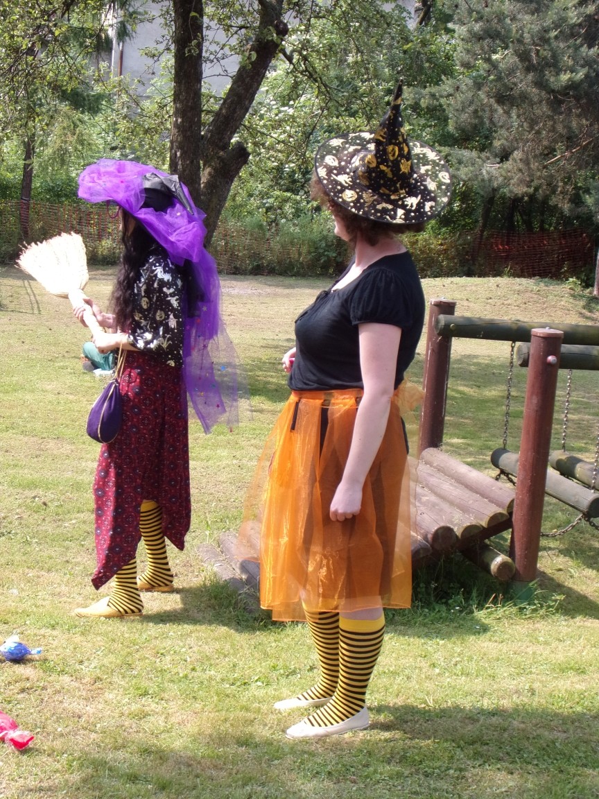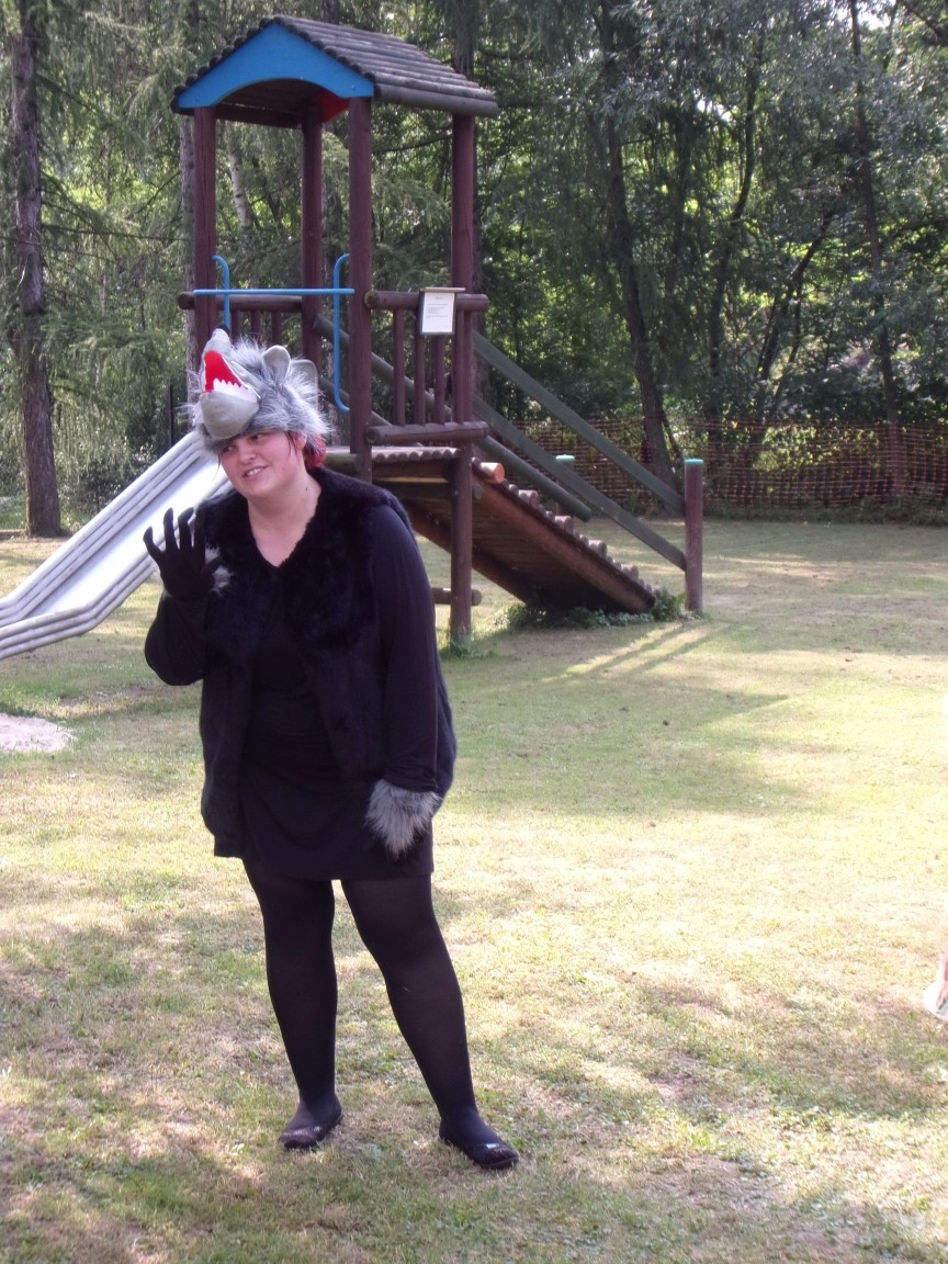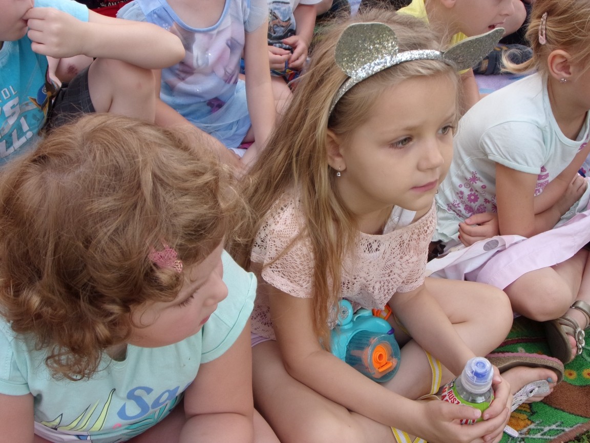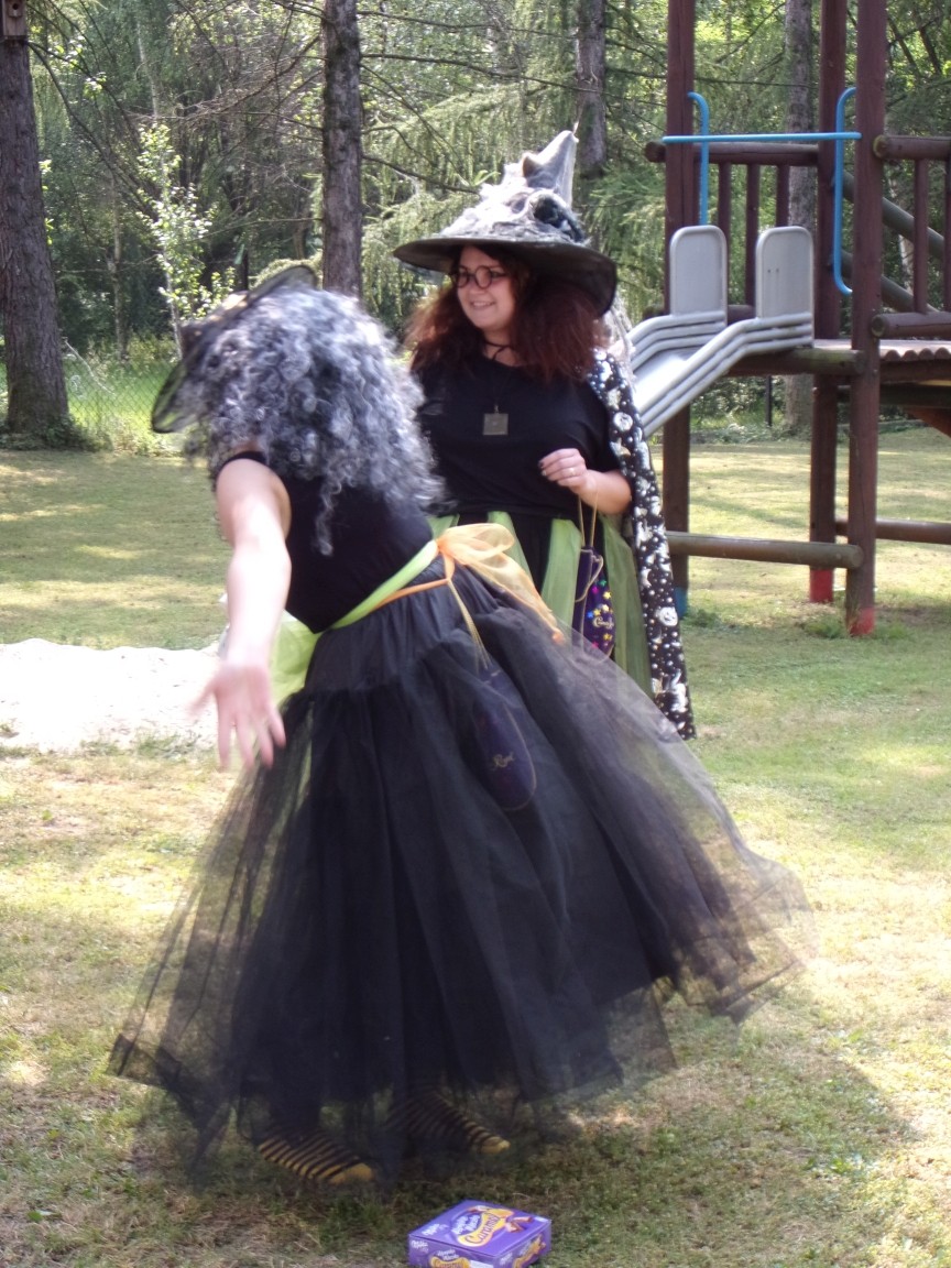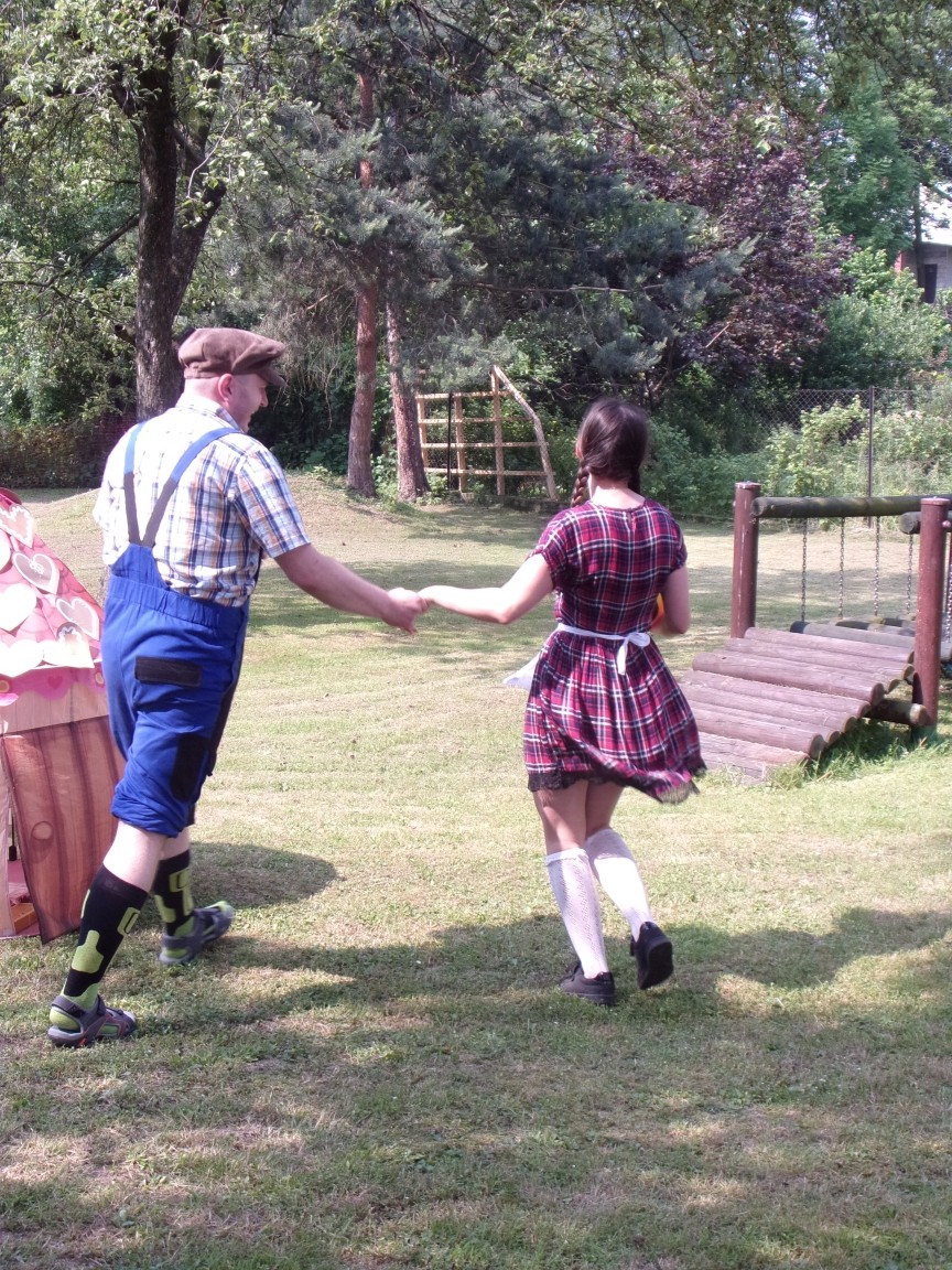 A co działo się później? Tego ani Jan Brzechwa, ani nawet Bracia Grimm nie mogli przewidzieć w swoich wersjach bajki o Jasiu i Małgosi. Nie jedna ale cztery czarownice wirowały w złowrogim tańcu wokół klatki z uwięzionymi głównymi bohaterami bajki. Wilk, który na szczęście okazał się wegetarianinem, drwal, który omal nie unicestwił naszej autentycznej starej jabłoni w ogrodzie przedszkolnym, narrator w barwach rajskiego ptaka i przede wszystkim rewelacyjna kreacja Jasia i Małgosi. Pomyślicie, że to aktualny repertuar Teatru Polskiego w Bielsku- Białej lub przynajmniej Teatru Lalek „Banialuka”? O nie, drodzy Państwo! Takie przedstawienie zostało opracowane i wystawione na placu zabaw przy Przedszkolu im. Władysława Pieronka w Radziechowach. Przedstawienia teatralne dla przedszkolaków przygotowywane wspólnie przez nauczycielki i rodziców wpisały się już w tradycję przedszkola. Pamiętamy rewelacyjne sztuki z lat poprzednich: „Kopciuszek” i „Czerwony Kapturek”. W tym roku przyszedł czas na bajkę pt. „Jaś i Małgosia”. Nie da się opisać radości dzieci i emocji związanych z odnajdywaniem w nietypowej roli swoich pań wychowawczyń i rodziców. Nadal pozostaję pod ogromnym wrażeniem tego wydarzenia i myślę, że podzielicie Państwo moje zdanie po obejrzeniu fotorelacji.