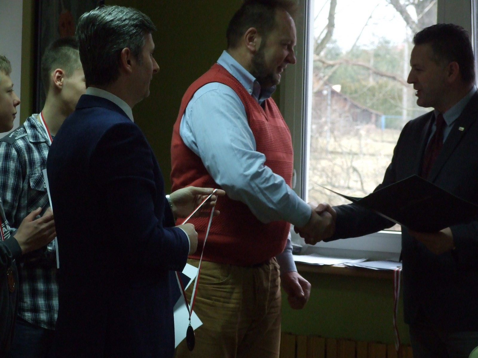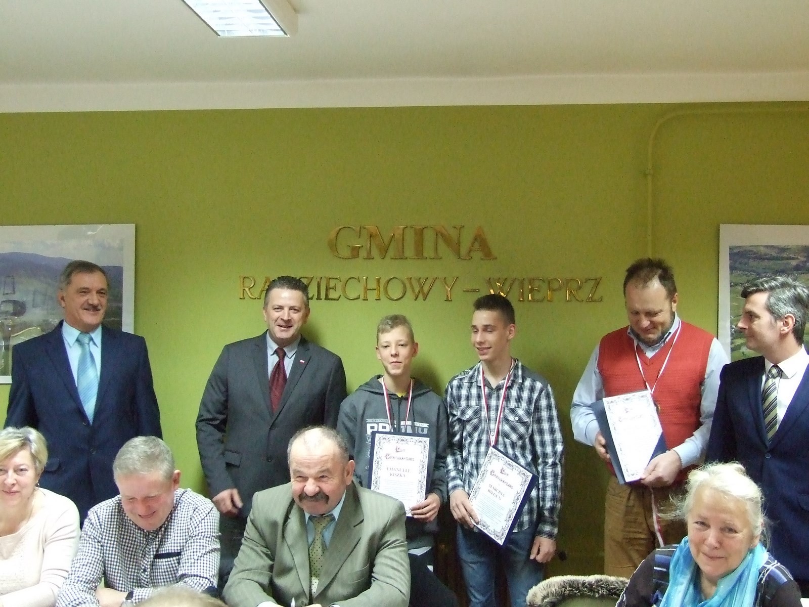 Nagrody wręczali: Maciej Mika, wójt gminy, Piotr Piela szef radnych wraz radnymi Rady Gminy Radziechowy-Wieprz.