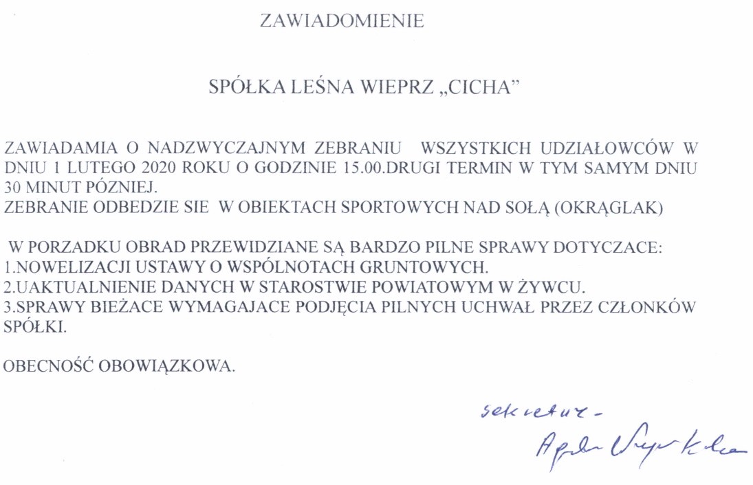 ZEBRANIE ODBĘDZIE SIE W OBIEKTACH SPORTOWYCH NAD SOŁĄ (OKRĄGLAK)