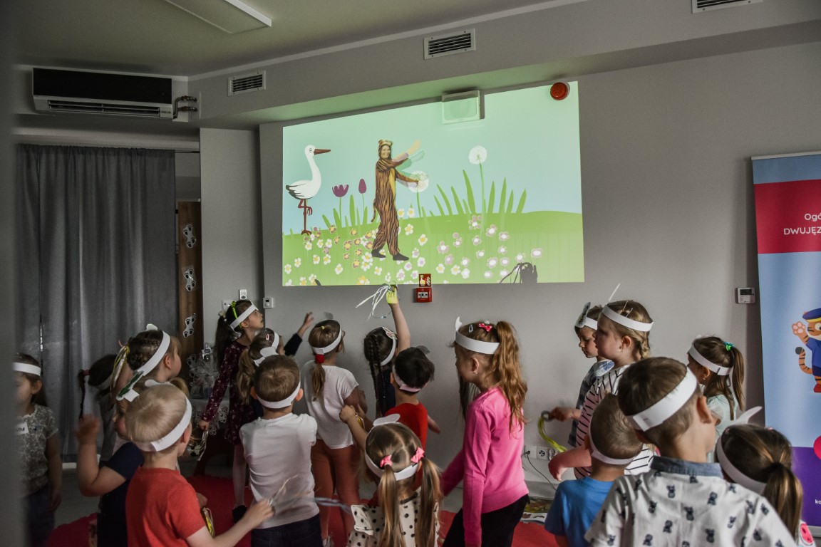 Zajęcie, w którym została wykorzystana platforma „Dwujęzycznego Przedszkolaka” przygotowała i poprowadziła Pani Izabela Dudek – nauczyciel wychowania przedszkolnego oraz języka angielskiego zatrudniona w Publicznym Przedszkolu w Wieprzu. Tematem zajęć i zabaw integracyjnych dzieci z obydwóch przedszkoli była „Łąka – The Meadow”. Podczas proponowanych działań dzieci miały możliwość udziału w aktywnościach muzyczno-ruchowych, słownych oraz plastycznych. Dzieci zostały wprowadzenie w świat języka angielskiego w naturalny sposób, czyli poprzez zabawę. Codzienne aktywności podejmowane w przedszkolu, takie jak między innymi gimnastyka, zajęcia tematyczne, plastyczne, muzyczne, czy nawet czynności higieniczno-porządkowe zostały przeprowadzone w języku angielskim w sposób minimalizujący odczuwanie lęku w czasie kontaktu z językiem obcym.