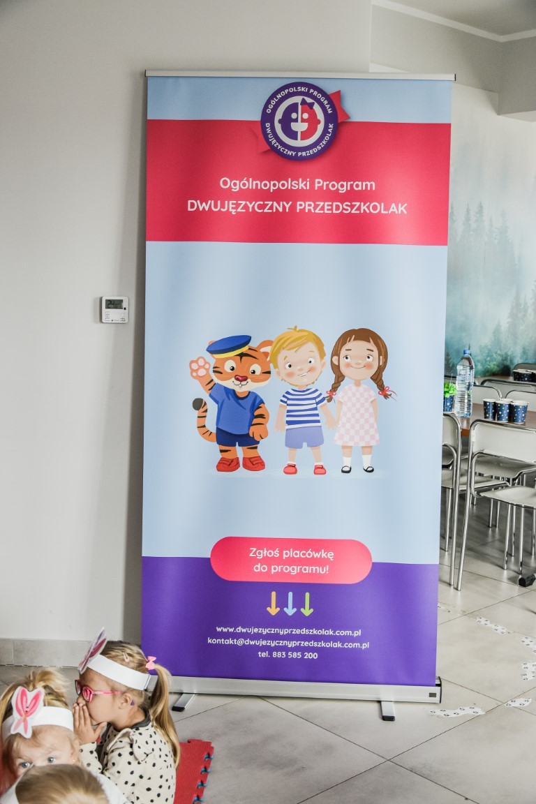 Dwujęzyczny Przedszkolak to innowacyjne rozwiązanie w edukacji przedszkolnej, wplatające język angielski do codziennych czynności dziecka, które w sposób naturalny zapewnia mu równoległe poznawanie dwóch języków. Program realizowany jest we wszystkich grupach naszego przedszkola i przewiduje około 1200 aktywności i zabaw w ciągu roku. Codzienny kontakt naszych maluchów z językiem angielskim w przedszkolu sprawia, że dzieci nie czują lęku przed językiem obcym, co w konsekwencji wzmacnia poczucie pewności siebie, satysfakcję z podejmowanych działań i chęć do osiągania kolejnych celów. Badania naukowe przeprowadzone na całym świecie dowodzą, że znajomość języków obcych daje ogromne możliwości rozwoju, otwiera okno na świat, ułatwia codzienne działania, ale też daje szansę na realizację najbardziej ambitnych celów i marzeń w coraz bardziej otwierającym się świecie.