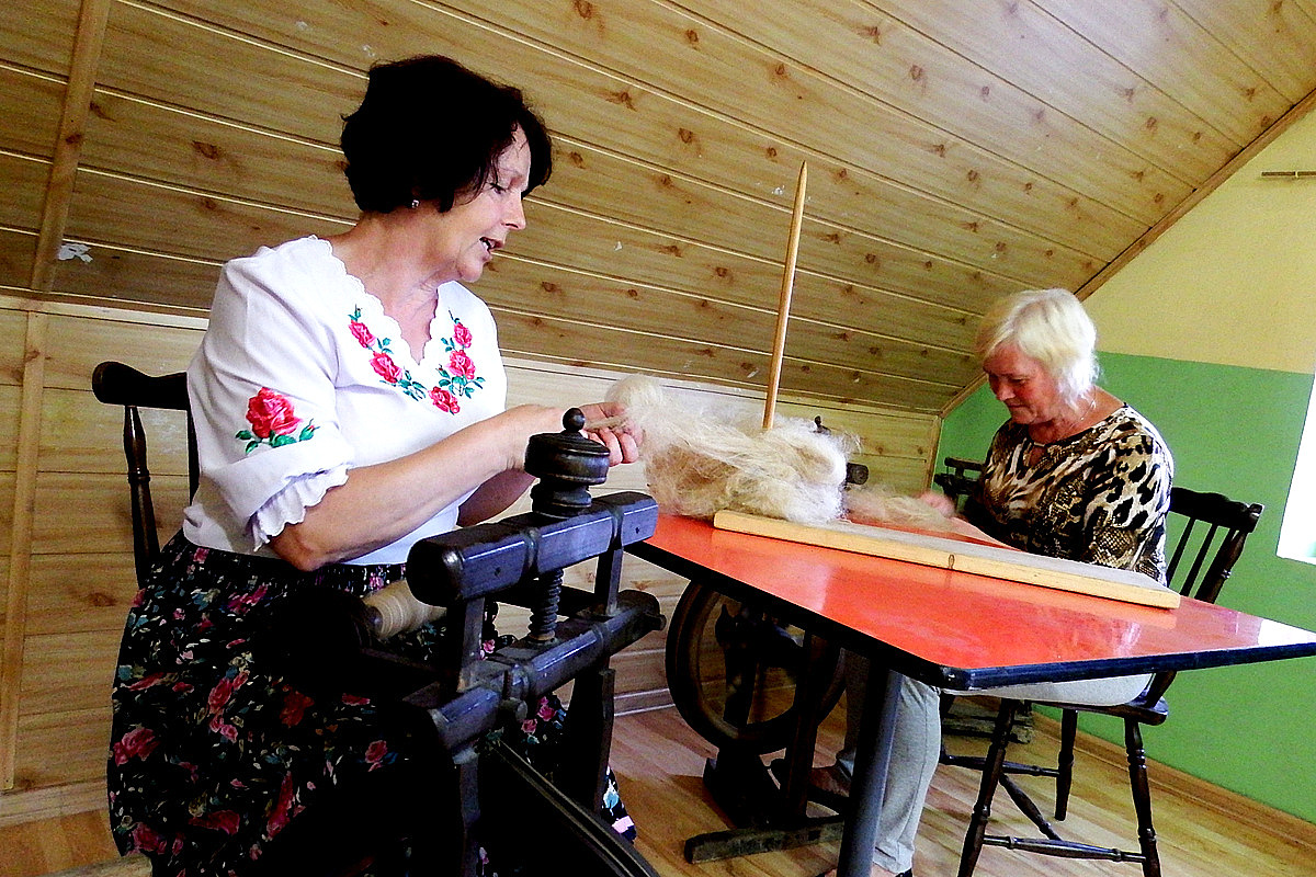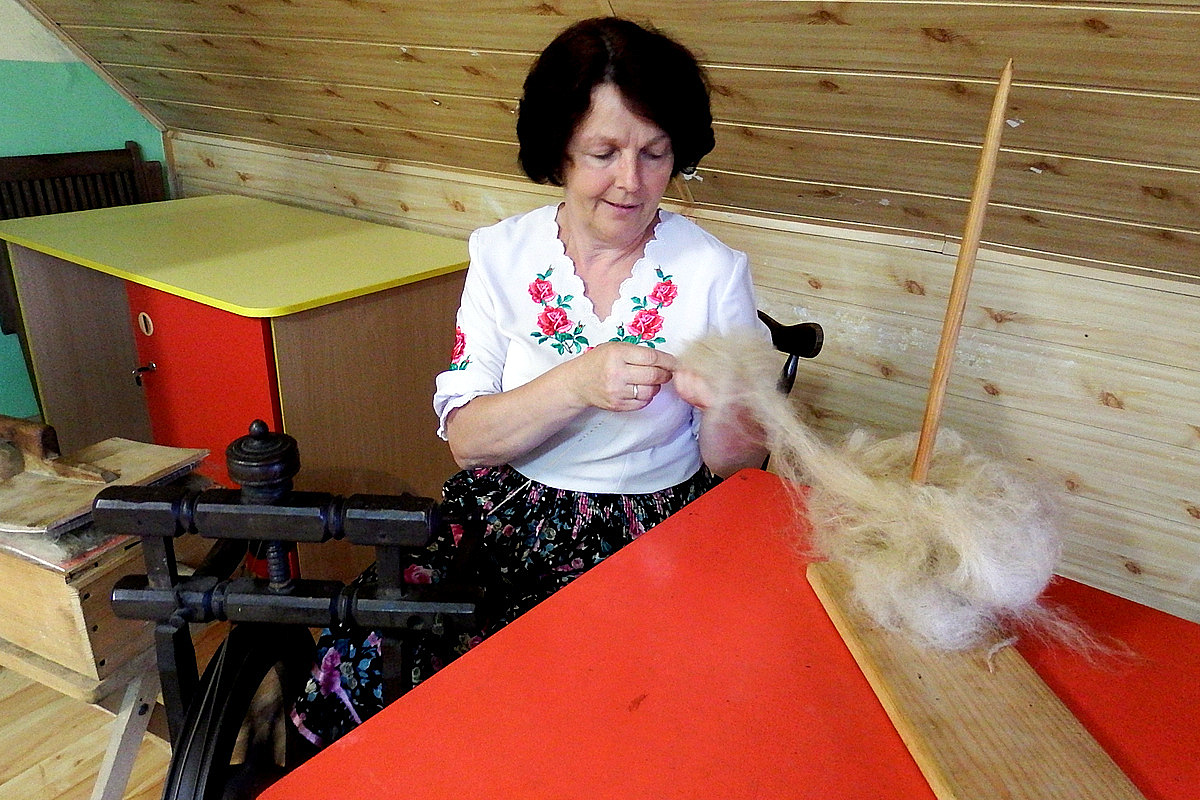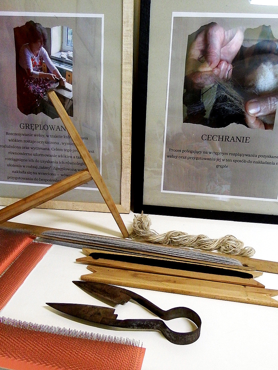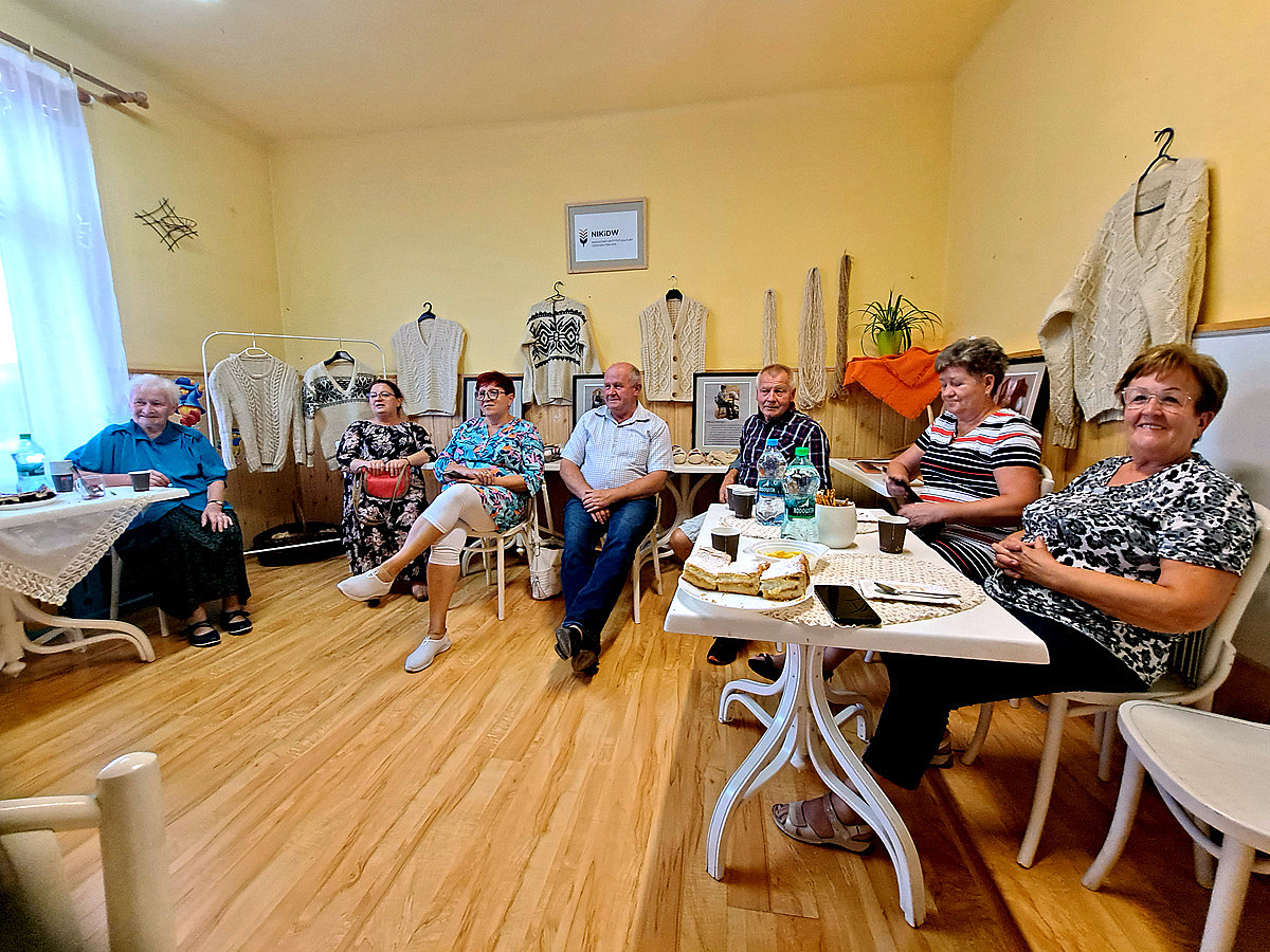 22 lipca 2023 roku odbyło się spotkanie podsumowujące Stypendium Mistrz-Uczeń Narodowego Instytutu Kultury i Dziedzictwa Wsi, które w naszym przypadku dotyczyło przekazania umiejętności tradycyjnej obróbki wełny.. Z tej okazji stypendystki (Jadwiga KLIŚ - mistrz i Genowefa PITRASZKO - uczeń) przygotowały małą wystawę, na której zaprezentowane zostały efekty ich pracy - można było obejrzeć stary sprzęt służący do obróbki, wełnę na każdym etapie jej obróbki - od tej surowej pozyskanej od owcy, przez zgręplowaną, tą w postaci gotowej nici a także już gotowe wyplecione elementy. Na wystawie pojawiły się ilustracje pokazujące poszczególne etapy obróbki wełny, nie zabrakło także krótkiego pokazu przędzenia. Spotkanie odbyło się w kameralnym gronie przyjaciół stypendystek, była to okazja do bardzo ciekawych rozmów i wspomnień. Opowieści Pani Jadwigi o dzieciństwie i czasie spędzonym z ojcem na hali, z perspektywy dzisiejszych czasów wydają się wręcz nieprawdopodobne, momentami można powiedzieć nawet "mrożące krew w żyłach". Wszyscy zebrani byli mocno zasłuchani w historię o dawnych wierzeniach i zwyczajach pasterskich - o tym jak wielką wiedzę na temat przyrody, przewidywania pogody, czy tez leczenia chorób musiał posiadać baca. Mistrzyni opowiedziała także o właściwościach zdrowotnych, które posiada wełna, a konkretnie zawarta w niej lanolina. Czy wiedzieliście, że surową zgręplowaną wełnę możecie stosować pomocniczo jako okład na bóle reumatyczne lub stany zapalne? Bardzo serdecznie dziękujemy wszystkim za poświęcony czas i za obecność
