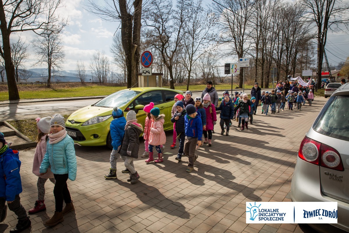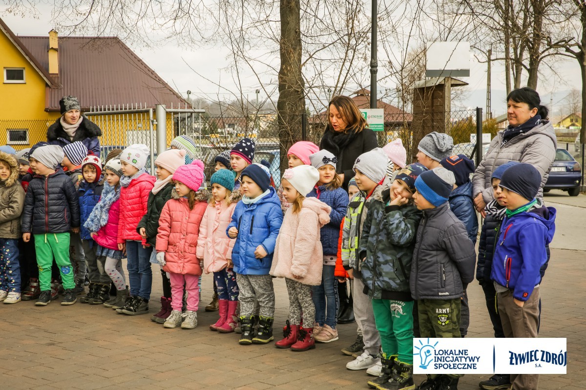 Dzięki współpracy pomiędzy placówkami oświatowymi z terenu gminy  do happeningu przyłączyły się przedszkolaki z Publicznego Przedszkola im. Wł. Pieronka w Radziechowach.