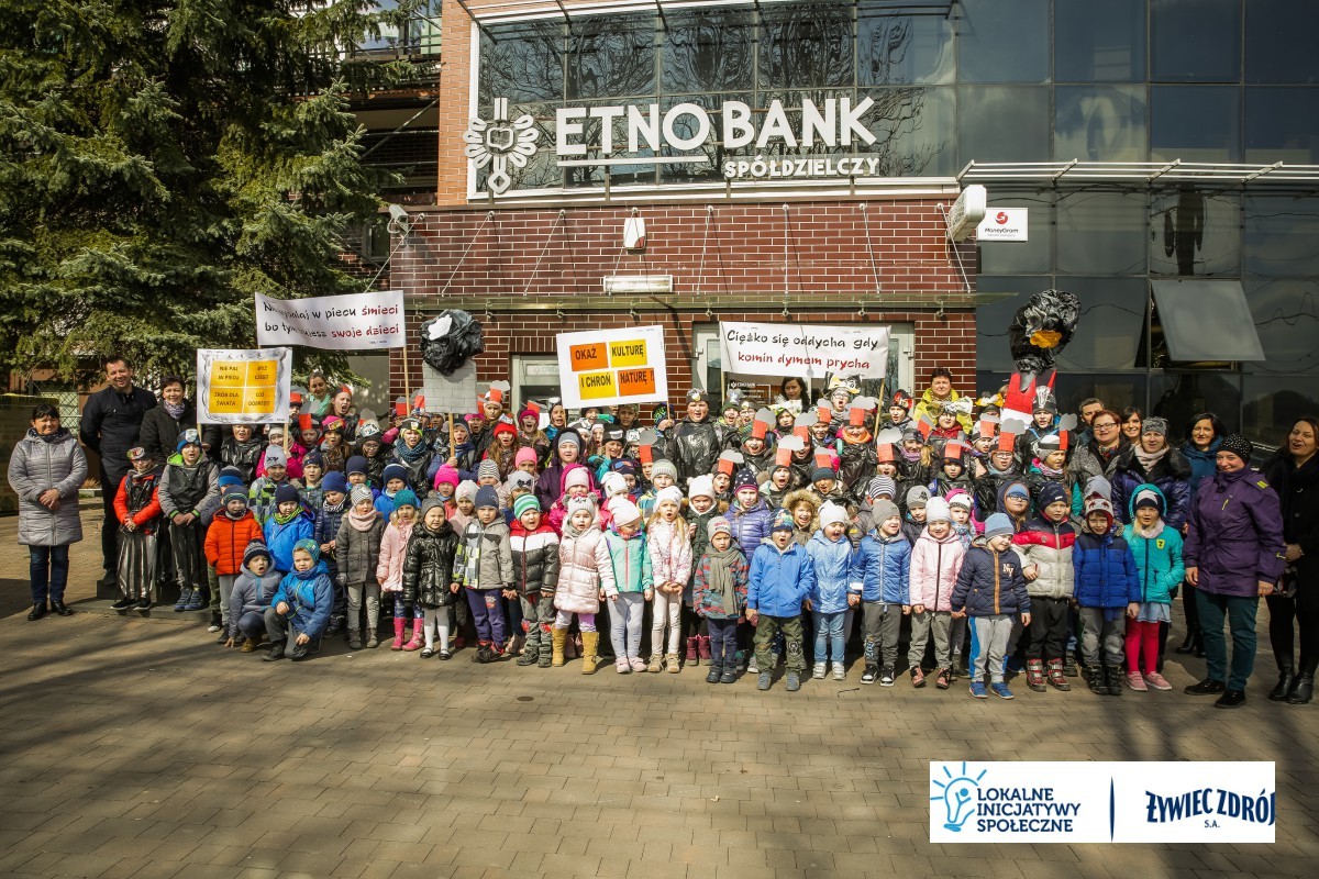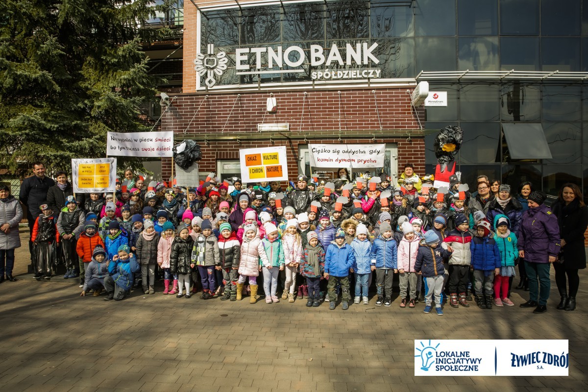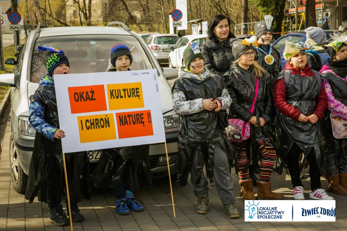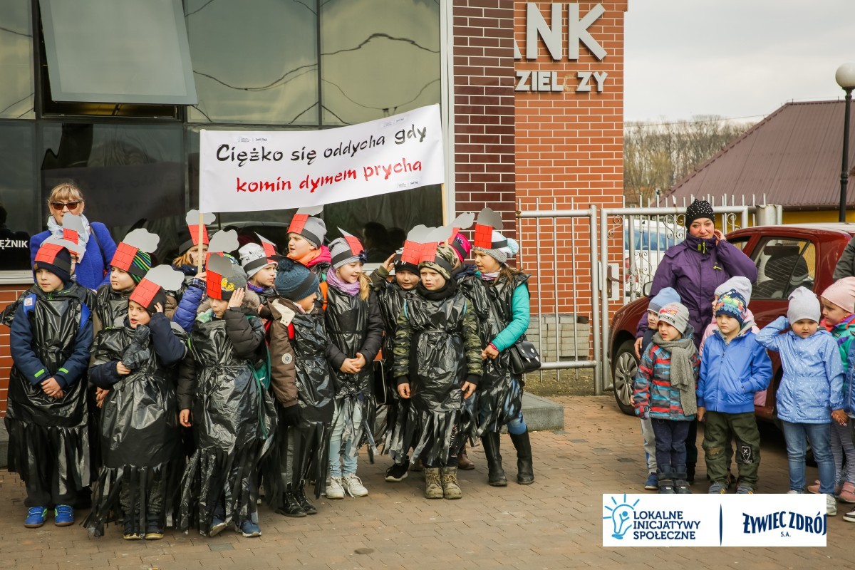 Podczas happeningu uczniowie przebrani w stroje przypominające dymiące kominy lub wysypiska śmieci, przeszli główną ulicą miejscowości. Dzieci niosły plakaty i transparenty, śpiewały piosenki oraz wykrzykiwały hasła, nawołujące do zaprzestania spalania śmieci w piecach domowych. Barwny korowód zainteresował mieszkańców wsi. Na zakończenie happeningu uczniowie wraz z przedszkolakami udali się do Urzędu Gminy Radziechowy –Wieprz. Dzieci przedstawiły krótki program artystyczny, w którym zachęcały mieszkańców i pracowników gminy do ekologicznego trybu życia.