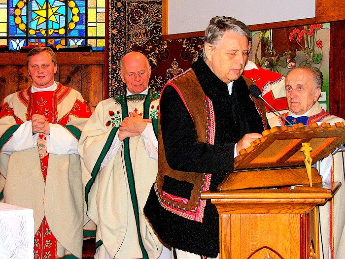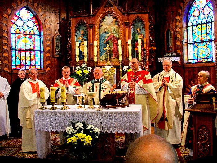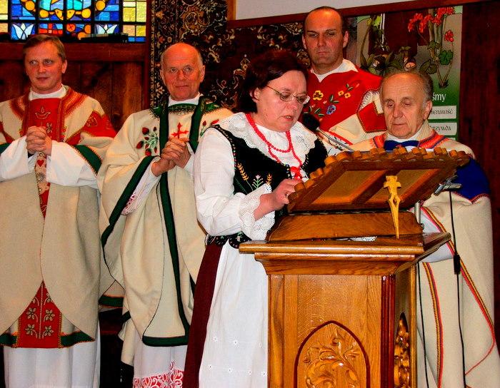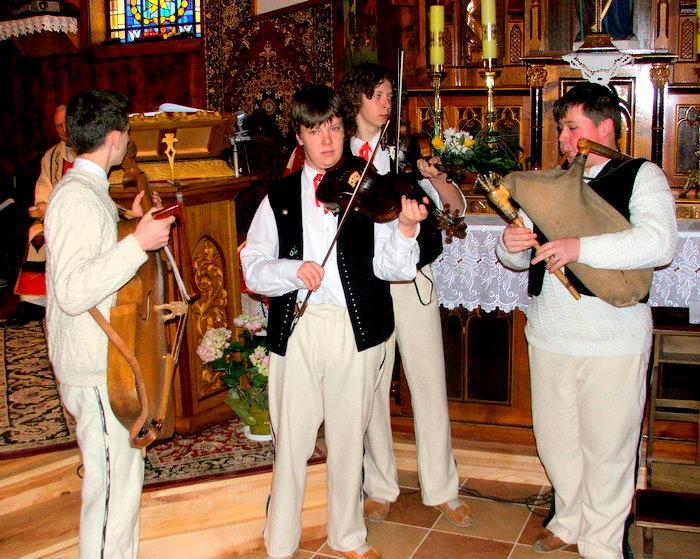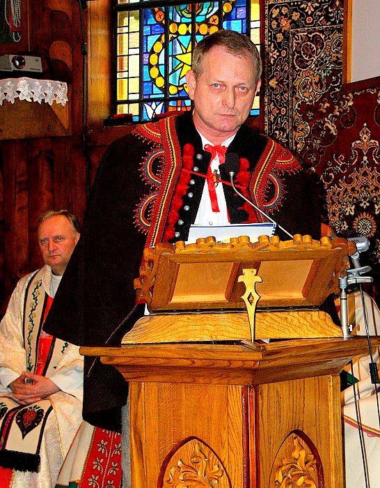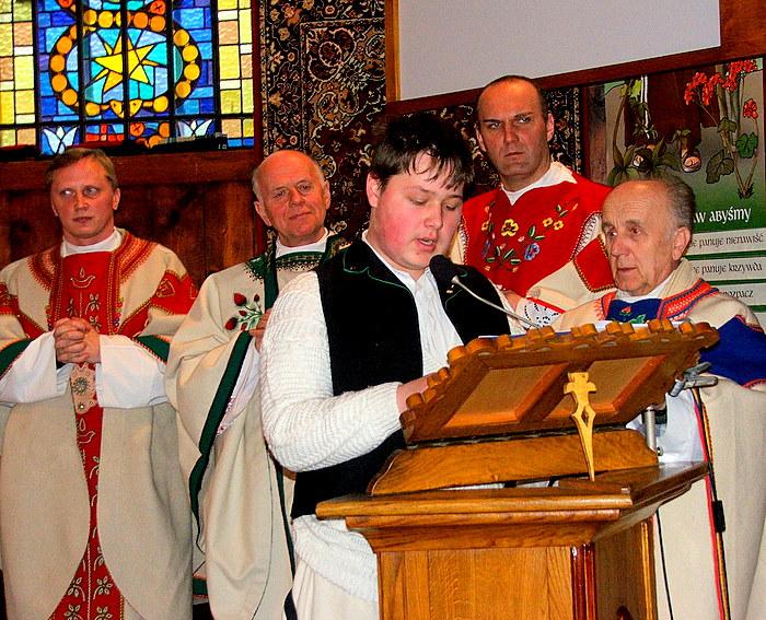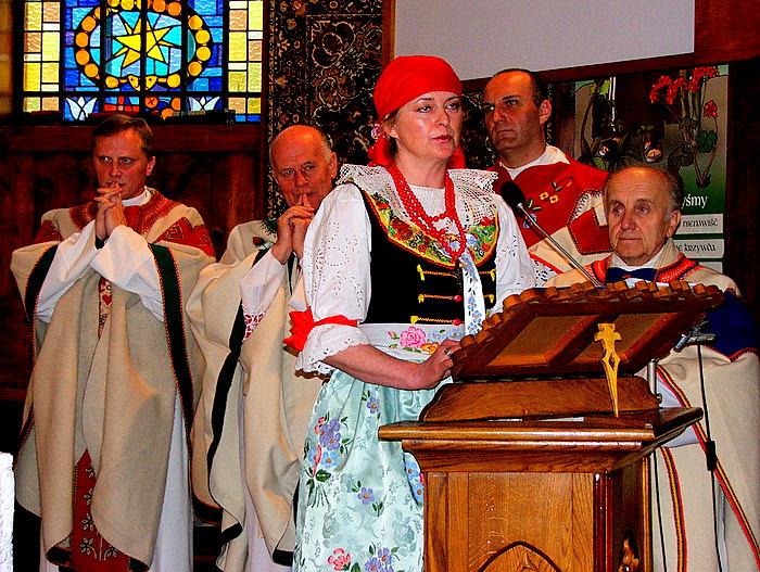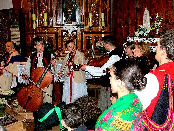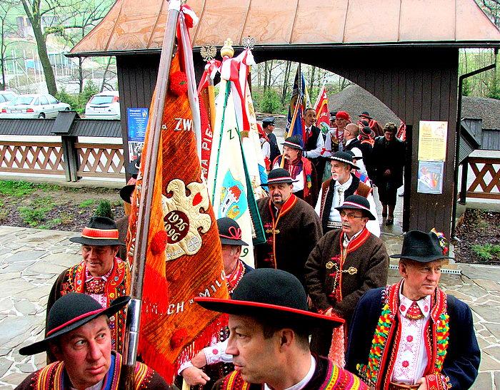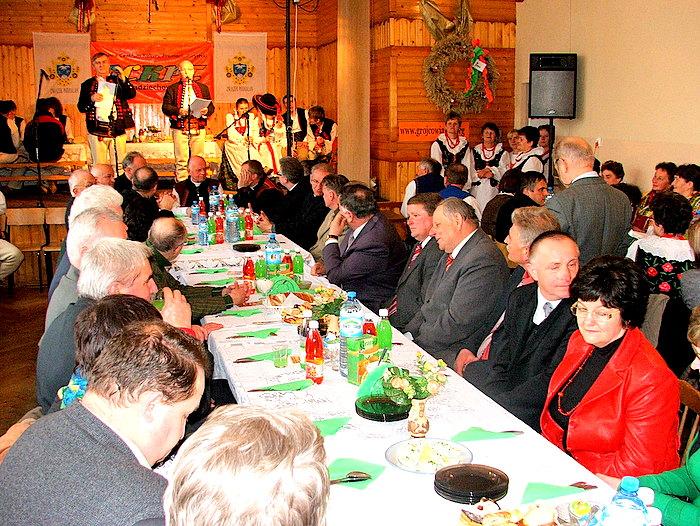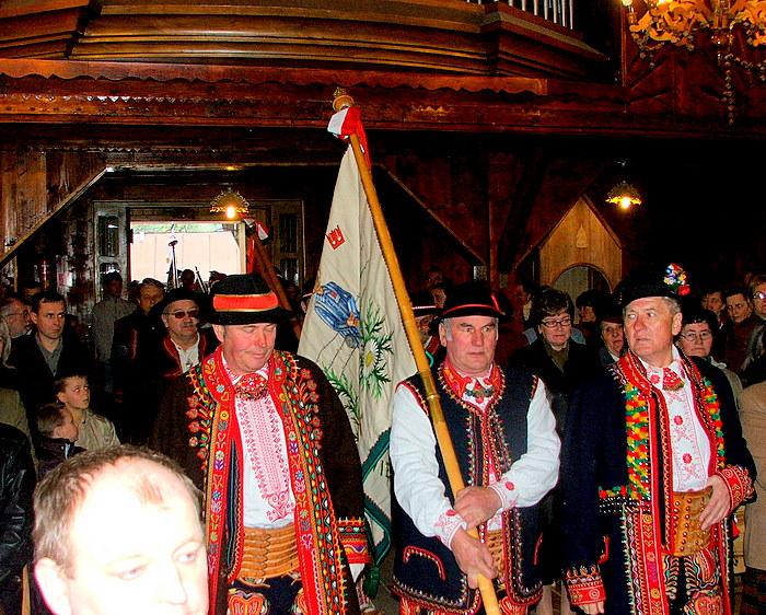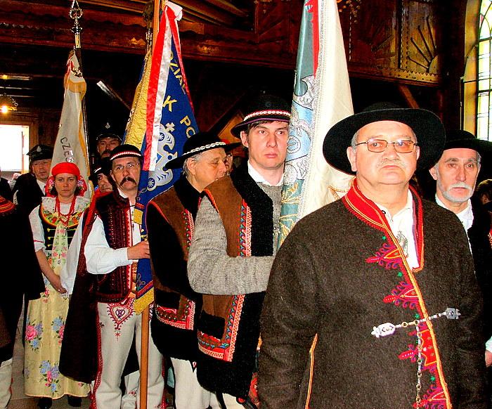Mszy św. Przewodniczył Kapelan ZP w Polsce Ks. Władysław Zązel z Kamesznicy. W koncelebrze mszy św. udział wzięli: Ks. Kazimierz Buba – Proboszcz z Juszczyny, Ks. Jan Gacek ze Szczyrku który wygłosił wspaniałą homilię, Ks. Władyusław Nowobilski z Ciśca, Ks. Arkadiusz Talik z Żabnicy oraz Kustosz Sanktuarium MB Szczyrkowskiej “Na Górce” w Szczyrku Ks. Marek Dąbek. Gośćmi uroczystości w Juszczynie byli również Ks. Dziekan Józef Nędza z Milówki , Ks. Franciszek Warzecha z Sanktuarium MB Kazimierzowskiej z Rajczy oraz Ojciec Radosław Kramarski z Sanktuarium MB Rychwałdzkiej z Rychwałdu, Ks. Ryszard Kubasiak z Radziechów, Ks. Sławomir Granieczny z Juszczyny. Zarząd Główny ZP reprezentował Władysław Motyka z Milówki. Uroczystość Oddziału Górali Żywieckich uświetniła obecność zaproszonych Oddziałów ZP z pocztami sztandarowymi ze Szczawnicy, Łącka, Nowego Targu, Oświęcimia, Szczyrku oraz Związku Górnośląskiego z Jackim Pytlem z Bractwa Pielgrzymkowego i miejscowej OSP w Juszczynie. Samorząd Gminny reprezentował Wójt Gminy Radziechowy-Wieprz Grzegorz Figura, Przewodniczący Rady Gminy Marian Motyka oraz radni Juszczyny – Krzysztof Syc i Damian Dudys. Samorząd Powiatu Żywieckiego reprezentowali - Wicestarosta Jan Miodoński, Przewodniczący Rady Powiatu Stanisław Zontek oraz radni w osobach Jana Witkowskiego i Władysława Skrzypa. Uroczystą mszę świętą śpiewem i muzyką uświetnili – Zespół Regionalny i Kapela “Grojcowianie” oraz Kapela “Goluski” ze słowackiej Polhory. Uroczystość w Domu Ludowym przygotowało miejscowe Koło Gospodyń Wiejskich z Juszczyny pod przewodnictwem Rozalii Polak oraz Zofii Staniak. Wsparcia udzielił organizatorom sołtys Mieczysław Sygut oraz OSP z Juszcyny. W części artystycznej oprócz w/w kapel wystąpił również Kabaret tutejszego KGW przedstawiając program dotyczący postrzegania w środowisku wiejskim zagadnień dotyczących Unii Europejskiej. Głównymi organizatorami “Święconego” był Oddział Górali Żywieckich ZP z Prezesem Adamem Banasiem, UG Radziechowy-Wieprz oraz Gminne Centrum Kultury, Promocji, Turystyki R-W reprezentowane przez Dyrektora Marka Jurasza.