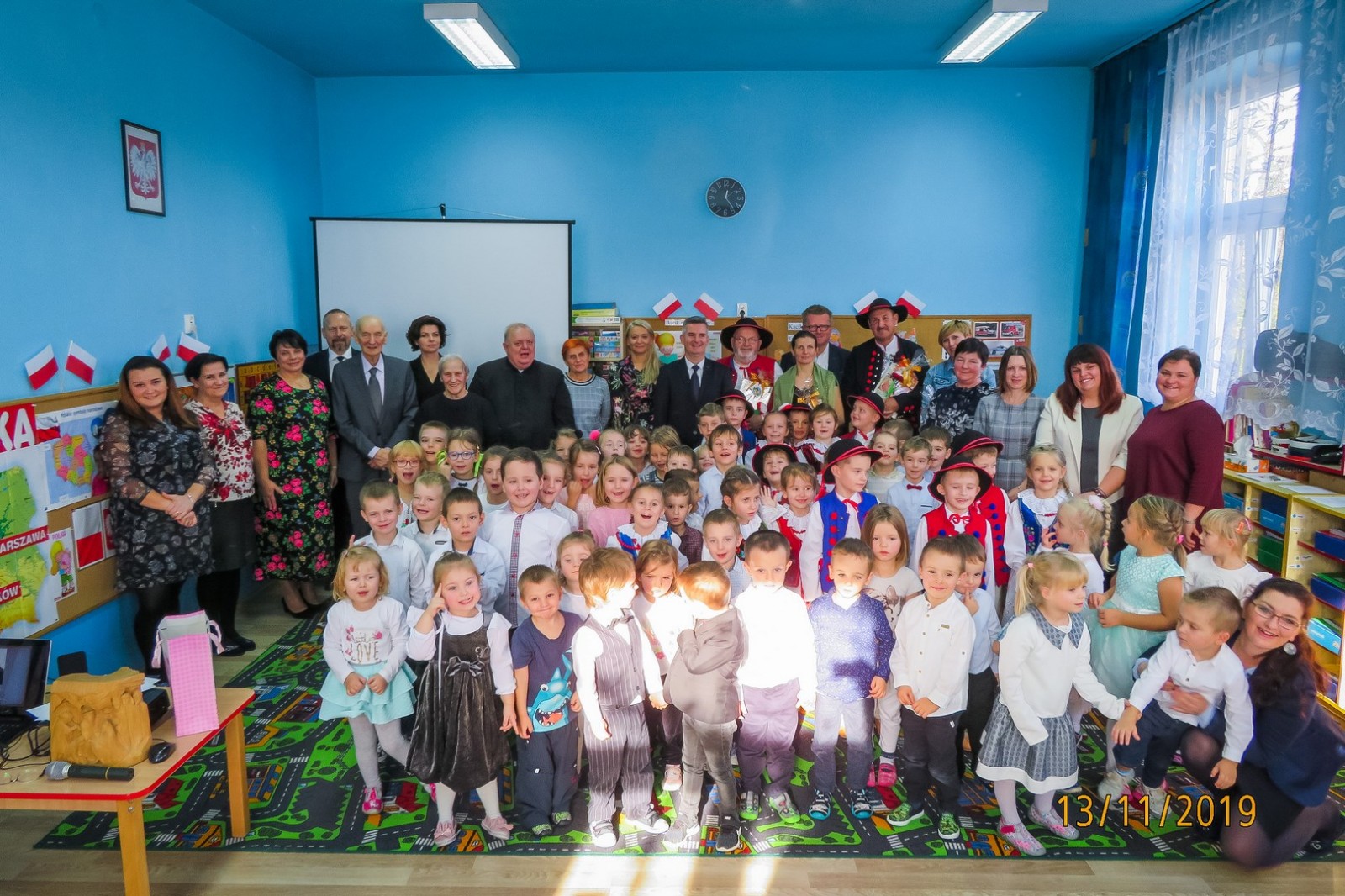 Przytoczony fragment wystąpienia dyrektor Małgorzaty Kasperek sprzed trzech lat z okazji 90-lecia oraz nadania imienia przedszkolu stał się mottem corocznych obchodów Święta Patrona Przedszkola im. Władysława Pieronka w Radziechowach. Tegoroczna uroczystość miała miejsce w dniu 13 listopada 2019r. Wspólne świętowanie w przedszkolu zainicjowane zostało odśpiewaniem przez wszystkich zebranych 4-zwrotkowego hymnu narodowego oraz hymnu przedszkola „Hej, chłopcy juhasi!”, do którego słowa napisał Władysław Pieronek. Regionalne występy dzieci, tańce i recytacja wierszy autorstwa Władysława Pieronka wzbogacone zostały prezentacją ukazującą uczestnikom spotkania postać Patrona przedszkola: legionisty, samorządowca zasłużonego dla rozwoju Radziechów, regionalisty, kronikarza i poety. Spotkanie było też okazją do podsumowania projektu „Co góralowi w duszy gra?- radziechowska nuta wczoraj i dziś”, którego realizacja zaowocowała zwycięstwem Przedszkola im. Władysława Pieronka w ogólnopolskiej X-tej edycji konkursu Edukacja Regionalna w Szkole. Na zakończenie uroczystości zaproszonym gościom zostały wręczone pamiątkowe albumy dokumentujące realizację projektu i sukces przedszkola na szczeblu ogólnopolskim. Padło wiele miłych słów pod adresem wychowanków i nauczycieli przedszkola. Były też podarunki, a wśród nich przepiękna rzeźba wykonana przez Pana Mieczysława Pieronka przedstawiająca szopkę bożonarodzeniową. Dziękujemy wszystkim osobom, które swoją obecnością uświetniły uroczystość, a byli to: Ksiądz Dziekan Piotr Pokojnikow, Wójt Gminy Radziechowy- Wieprz Maciej Mika, przedstawiciele rodziny Patrona w osobach: Mieczysław Pieronek (syn Władysława Pieronka), Czesława Matlak (córka Władysława Pieronka), Agnieszka Wilk- Świstuń i Wojciech Matlak (wnuki Patrona przedszkola), dyrektor Szkoły Podstawowej im. ks. prałata Stanisława Gawlika w Radziechowach Jadwiga Śleziak, dyrektor Gminnego Centrum Promocji Kultury Turystyki Agnieszka Biegun, kierownik Referatu Oświaty Urzędu Gminy Radziechowy-Wieprz Małgorzata Piela, kierownik muzyczny zespołu Grojcowianie Brygida Murańska (która jednocześnie zapewniła oprawę muzyczną uroczystości), regionalista i radny gminny Grzegorz Brodka, regionalista Józef Pielichowski, organista Kościoła p.w. Św. Marcina w Radziechowach Jerzy Greń oraz przewodnicząca Rady Rodziców Iwona Strączek. Obecni byli też przedstawiciele rodziców przedszkolaków. Dziękujemy pracownikom przedszkola za współorganizowanie świętowania, a Radzie Rodziców za sfinansowanie wydruku albumów. Specjalne podziękowania kierujemy w stronę Pani Agnieszki Zemczak-Karkoszka za piękne udokumentowanie wydarzenia. Atmosferę i charakter uroczystości w pełni oddają słowa wiersza dedykowanego Księdzu Biskupowi Tadeuszowi Pieronkowi, zmarłemu 27 grudnia 2018r., wielkiemu przyjacielowi Przedszkola im. Władysława Pieronka w Radziechowach, synowi Patrona przedszkola: