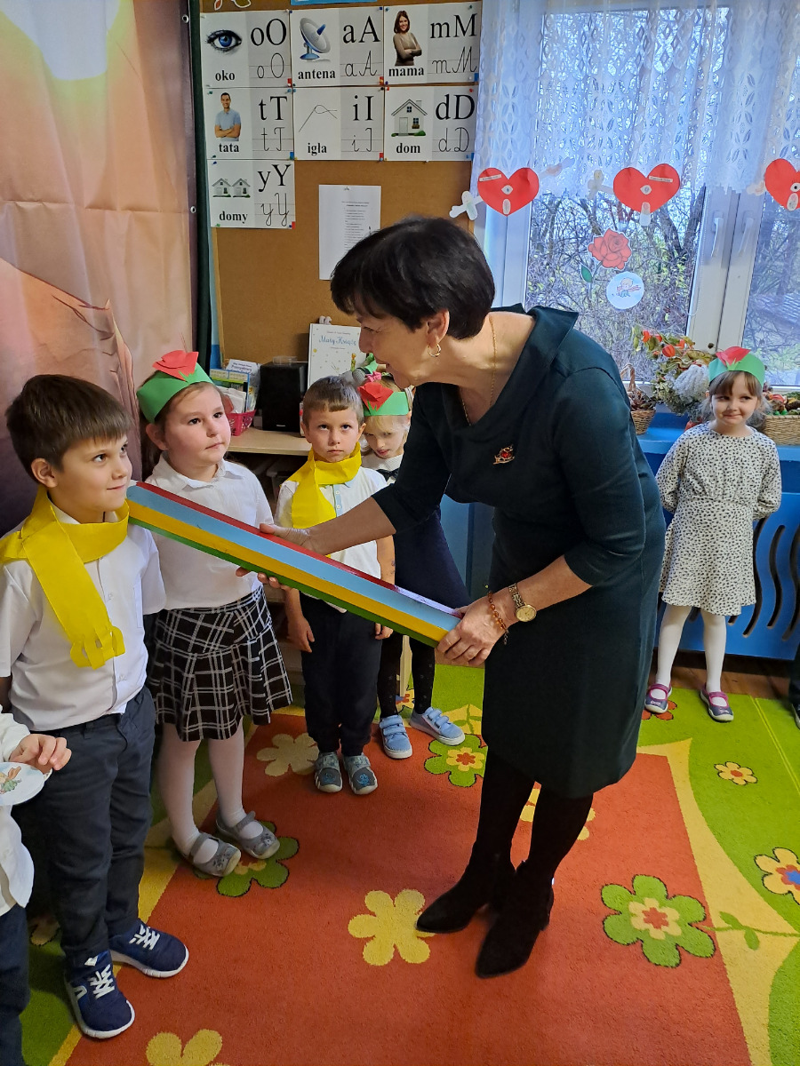 Z tego też względu 20 listopada 2023r. została w naszym przedszkolu zorganizowana uroczystość, na której obecnością zaszczycili nas: Wójt Gminy Radziechowy – Wieprz Pan Maciej Mika, st. Wizytator KO Delegatura Bielsko – Biała Pani Ilona Włoch, Radni Rady Gminy Radziechowy – Wieprz Pani Małgorzata Matlak i Pani Katarzyna Syc, Kierownik Ref. Oświaty Pani Małgorzata Piela i Gł. Księgowa Ref. Oświaty Pani Barbara Lizak, sołtys Wieprza Pan Wiesław Kliś, Pani Anna Micherda oraz przedstawiciele rodziców naszych przedszkolaków z Przewodniczącą Rady Rodziców na czele - Panią Martą Nogą wraz z członkami Prezydium Rady.