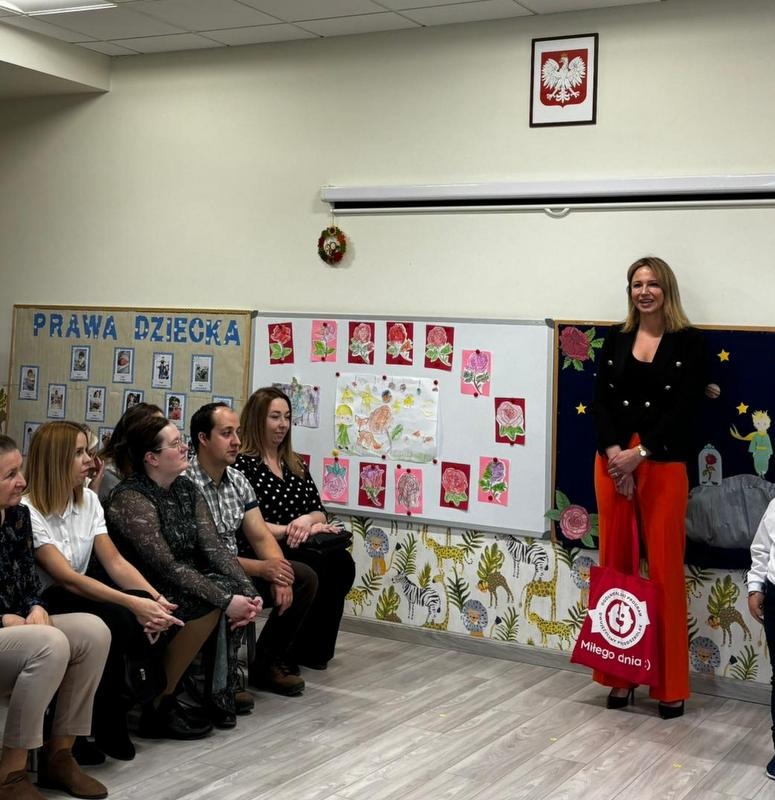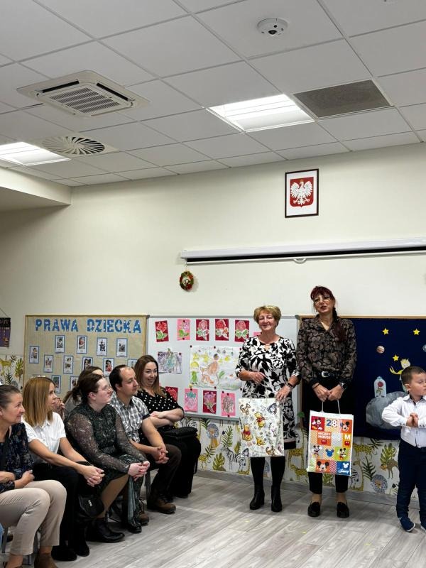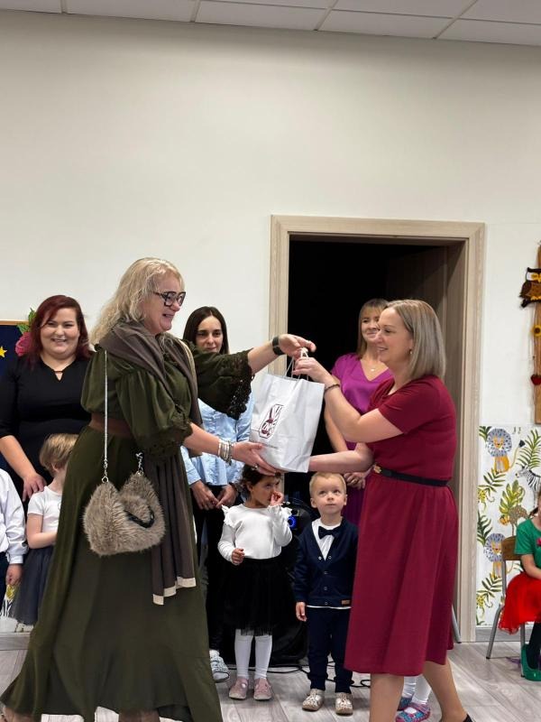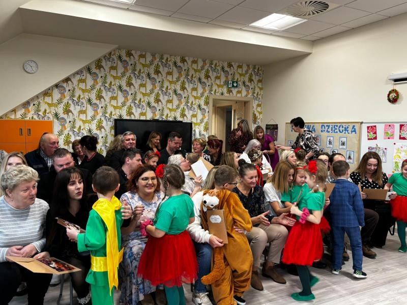 Z tego też względu 20 listopada 2025r. odbyła się w naszym przedszkolu uroczystość, na której obecnością zaszczycili nas: Pan Grzegorz Biela Sekretarz Urzędu Gminy Radziechowy-Wieprz, Pani Ilona Włoch st. Wizytator KO Delegatura Bielsko – Biała, Pani Małgorzata Matlak Z-ca Przewodniczącego Rady Gminy Radziechowy – Wieprz wraz z Radnymi sołectwa Wieprz: Panią Alicją Noga, Panią Jadwigą Kliś i Panem Mirosławem Trzosem, Pani Jadwiga Jurasz Radna Powiatu Żywieckiego, Proboszcz Parafii NSNMP w Wieprzu Ksiądz Krzysztof Rębisz, Pani Małgorzata Piela Kierownik Referatu Oświaty Gminy Radziechowy-Wieprz, Dyrektor GCKPT Radziechowy – Wieprz Pani Justyna Homa-Bąk wraz z pracownikami, Pani Aneta Zwolińska Prezes Fundacji Dwujęzyczny Przedszkolak, Prezes ZNP Oddział Żywiec Pani Marta Armatys, Dyrektor Fundacji Braci Golec Pani Małgorzata Filary-Furowicz, Przewodnicząca KGW Wieprz Pani Janina Kłusak, Przewodnicząca Stowarzyszenia Wieprzanki Pani Aneta Misiarz, sołtys Wieprza Pan Wiesław Kliś, oraz rodzice naszych przedszkolaków z Przewodniczącą Rady Rodziców na czele - Panią Aleksandrą Caputą.