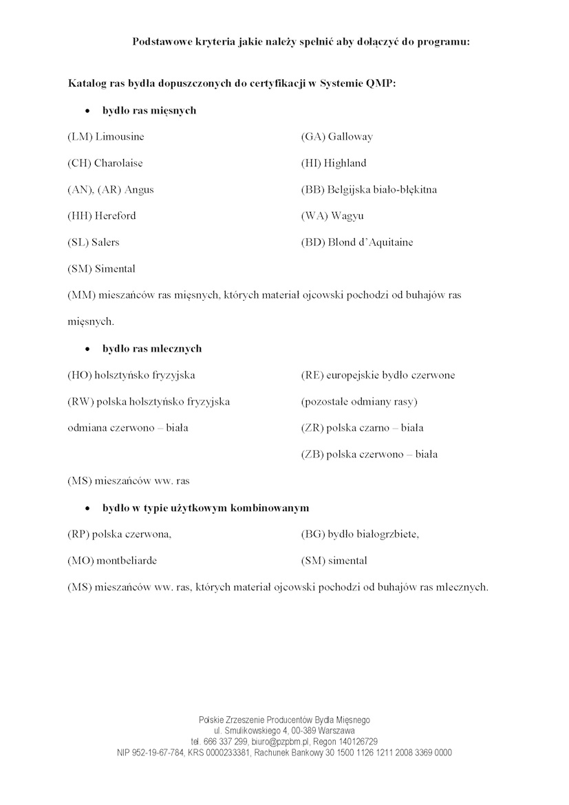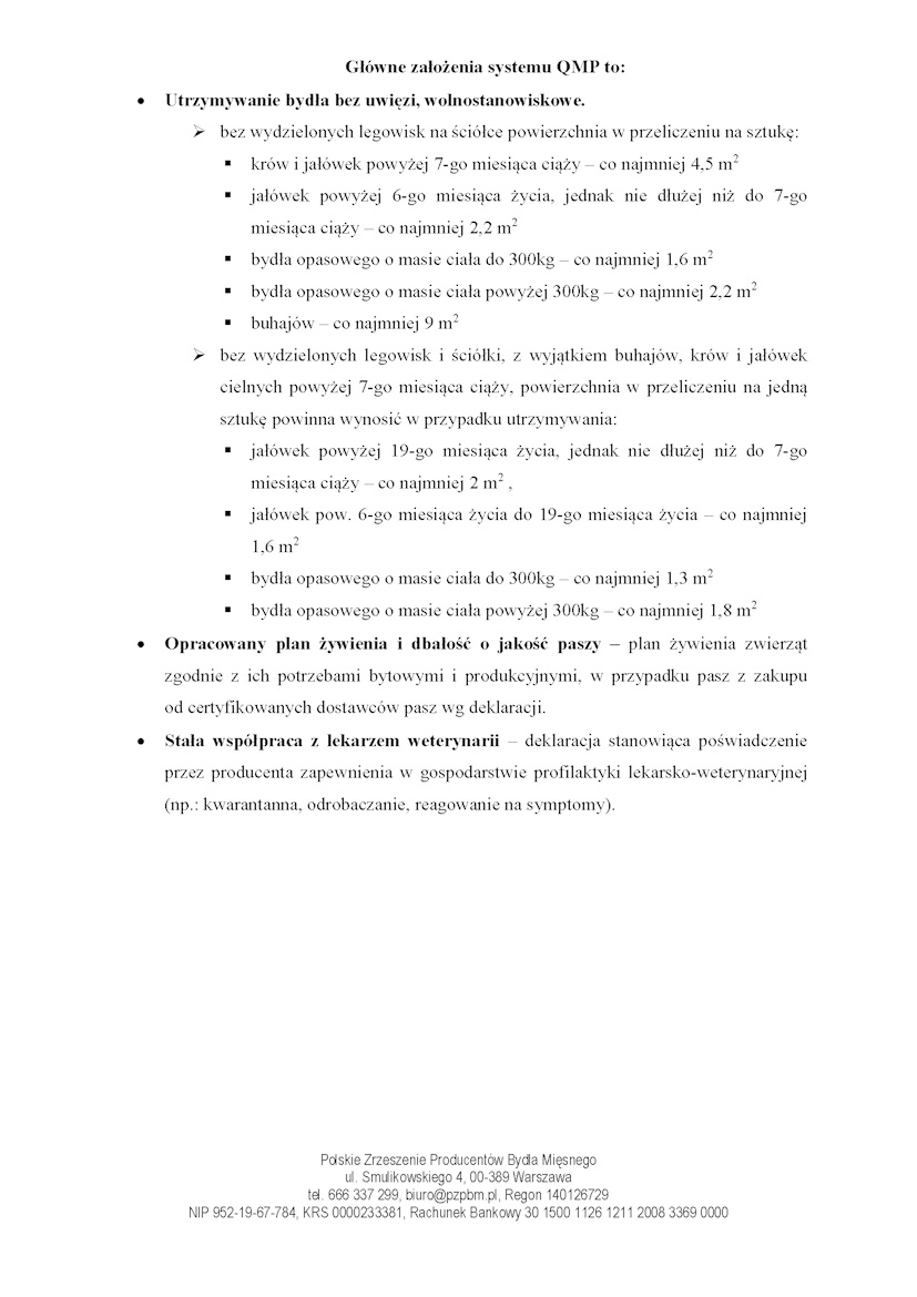 Zgodnie z rozporządzeniem Ministra Rolnictwa i Rozwoju Wsi od 12 marca br. System QMP (Quality Meat Program) został włączony do dopłat za praktyki dobrostanowe dla rolników uczestniczących w krajowych systemach jakości, co pozwala na uzyskanie podstawowej pomocy z tytułu posiadania zwierząt utrzymywanych w kierunku opasowym w kwocie: