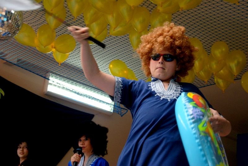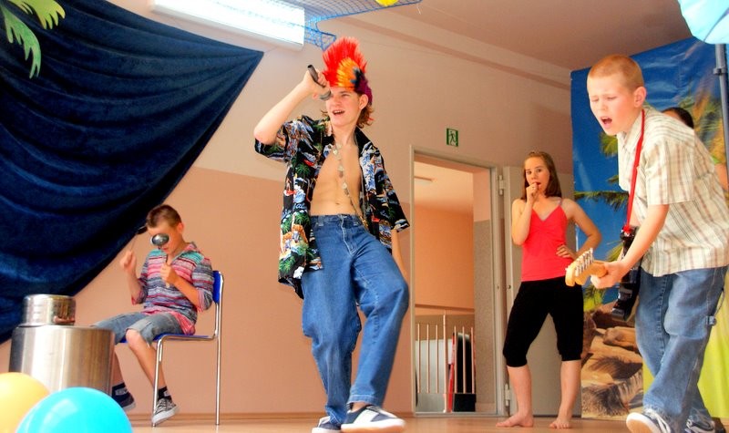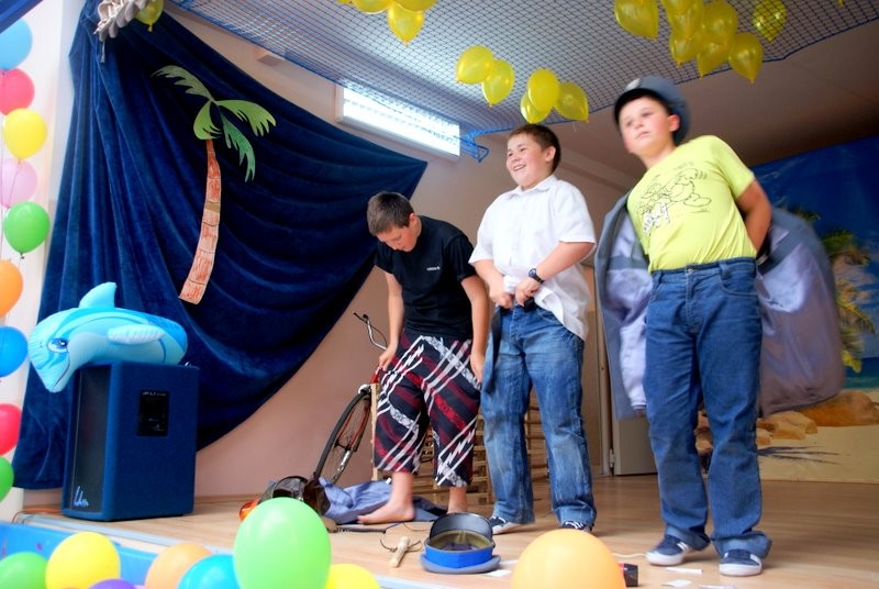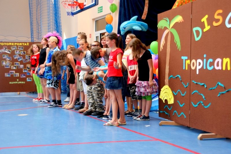 Oczywiście do udziału w konkursie zgłosiły się same gwiazdy sceny i estrady ze wszystkich stron świata. Nad całością czuwał niezmordowanie Pan Dyrektor Grzegorz Ciurla. W trakcie trwania koncertu odbył się również konkurs „Moda tropikalna zupełnie niebanalna”. Nasi wspaniali goście mieli za zadanie zaprojektować i przebrać się w najbardziej fantazyjny i szałowy strój plażowy. Jurorzy: Pan Dyrektor Grzegorz Ciurla, Pani Urszula Stolarczyk i Pani Marta Gąska długo debatowali nad przyznaniem nagrody. W końcu dmuchany, różowy materac trafił w ręce Konrada Sporka z klasy IVb.