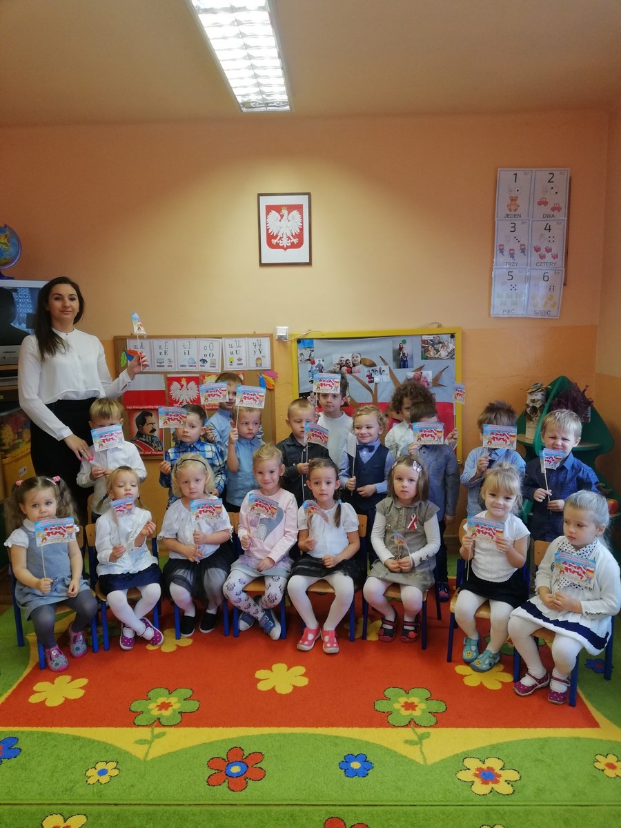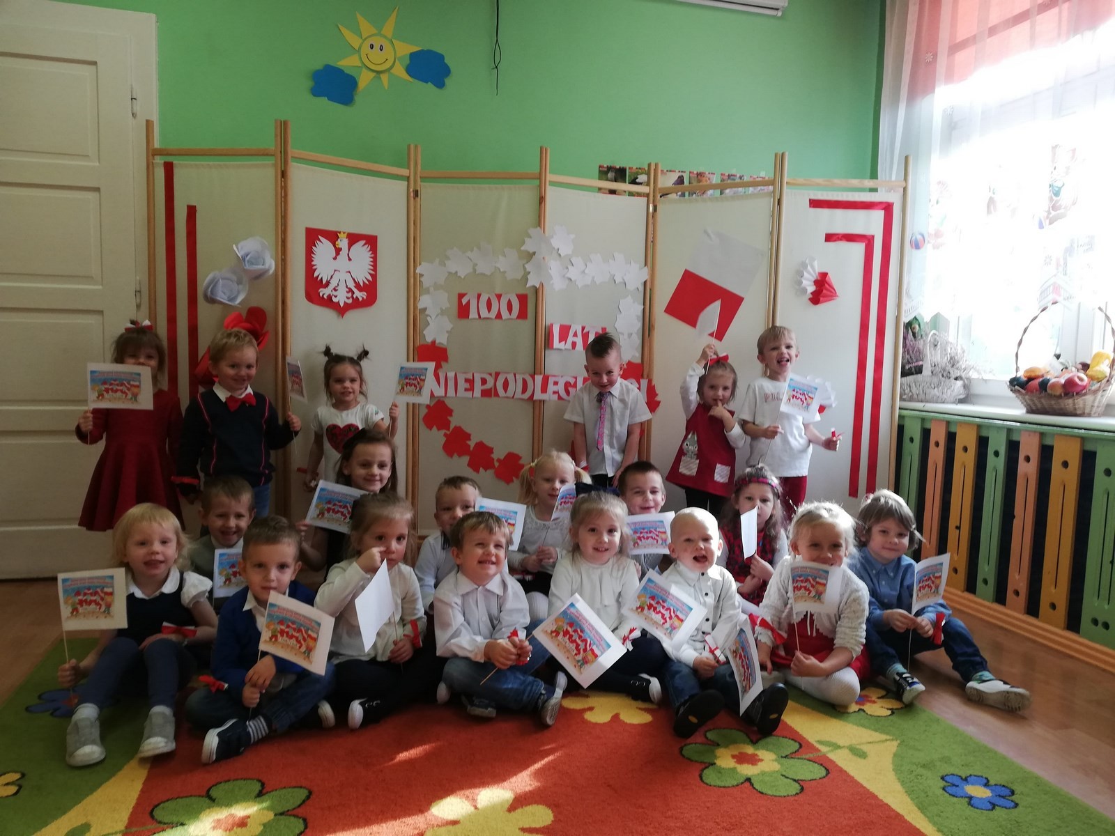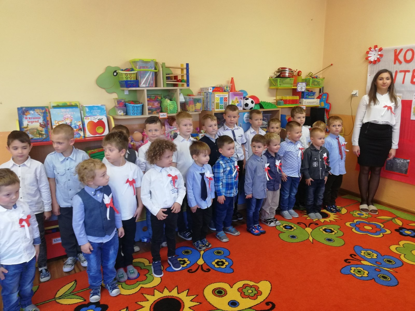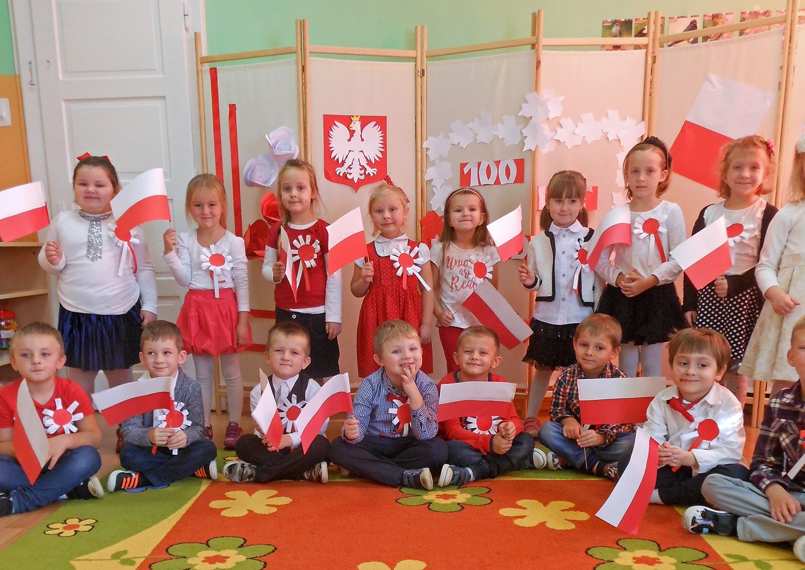 11 listopada w 1918 r. państwo Polskie narodziło się na nowo. Po rozbiorach i 123 latach niewoli, wolna Polska powróciła na mapę świata. W tym roku, więc przypada 100. rocznica tego ważnego dla każdego Polaka wydarzenia. W naszym przedszkolu podobnie, jak w każdej placówce oświatowej, kształtowanie patriotycznych postaw i rozwijanie miłości do Ojczyzny jest jednym z głównych kierunków pracy wychowawczo – dydaktycznej. Dlatego też już od dłuższego czasu dzieci wraz ze swoimi wychowawczyniami i rodzicami przygotowywały się do wyjątkowego uczczenia tego dnia.
