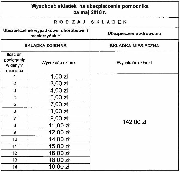 Załączamy do wykorzystania w publikacjach lub do zamieszczenia na stronach internetowych Schemat procedury zgłaszania pomocników przy zbiorach oraz tabelę składek na ubezpieczenie pomocnika za maj 2018 roku, do wykorzastania.
