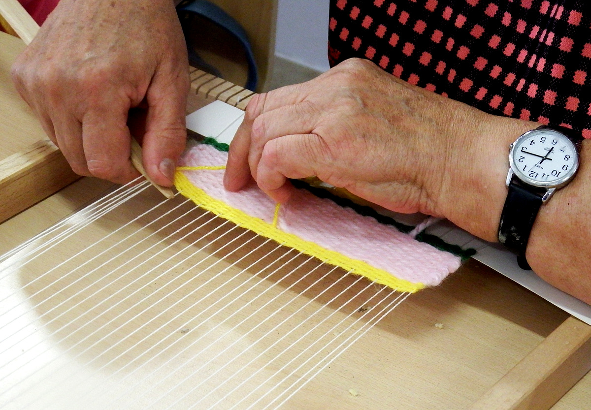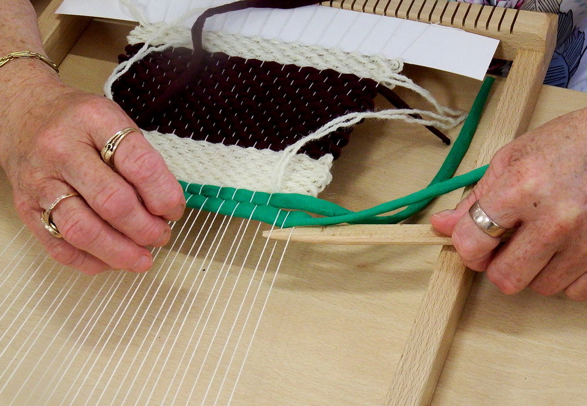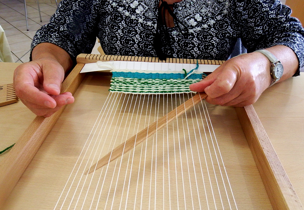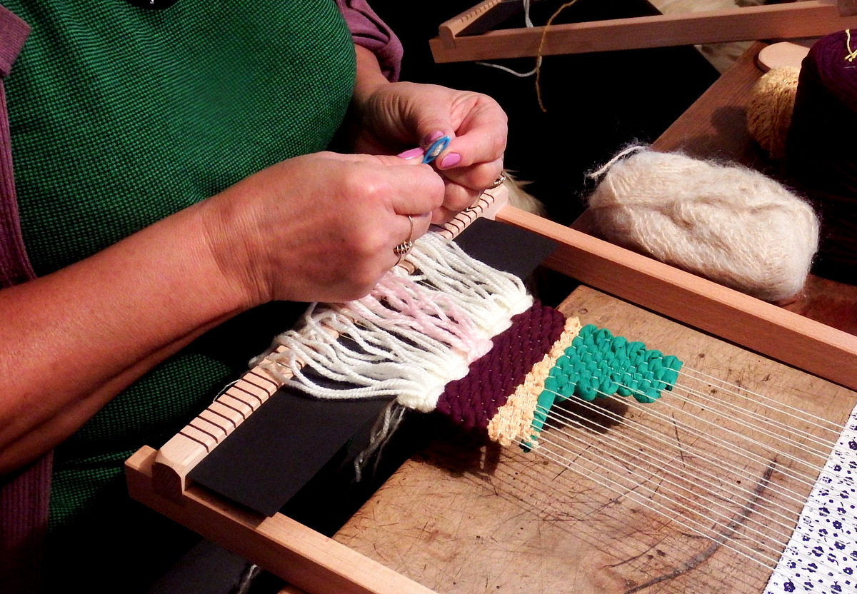 Przybędza - tym razem tkactwo na małych ramkach tkackich. Wykonaliśmy małe kilimy z użyciem materiałów pochodzących z recyklingu.
