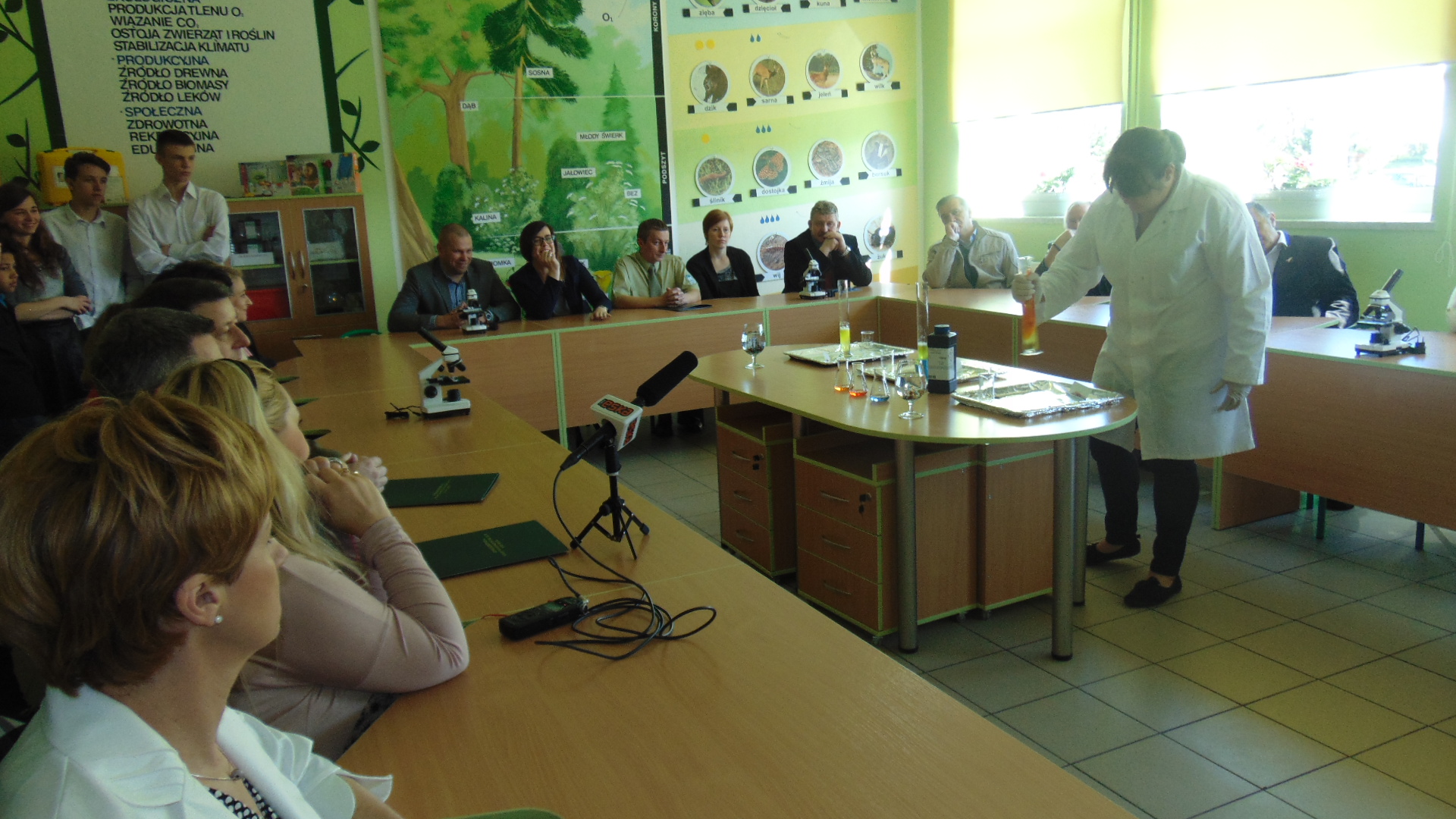 W uroczystości z udziałem nauczycieli i uczniów szkoły uczestniczyli także m.in.: przedstawiciel Funduszu Pani Olga Piechota - Bieruń, wójt Pan Maciej Mika oraz radni gminy Radziechowy – Wieprz, Nadleśniczy Nadleśnictwa Węgierska Górka Pan Marian Knapek, prezes spółki Beskid Ekosystem z Cięciny, przedstawiciele Zespołu Parków Krajobrazowych Województwa Śląskiego w Żywcu i firmy Żywiec Zdrój, dyrektorzy placówek oświatowych z terenu gminy oraz przedstawiciele Rady Rodziców. Otwarcie pracowni uświetniły występy oraz pokazy chemiczne przygotowane przez uczniów szkoły.