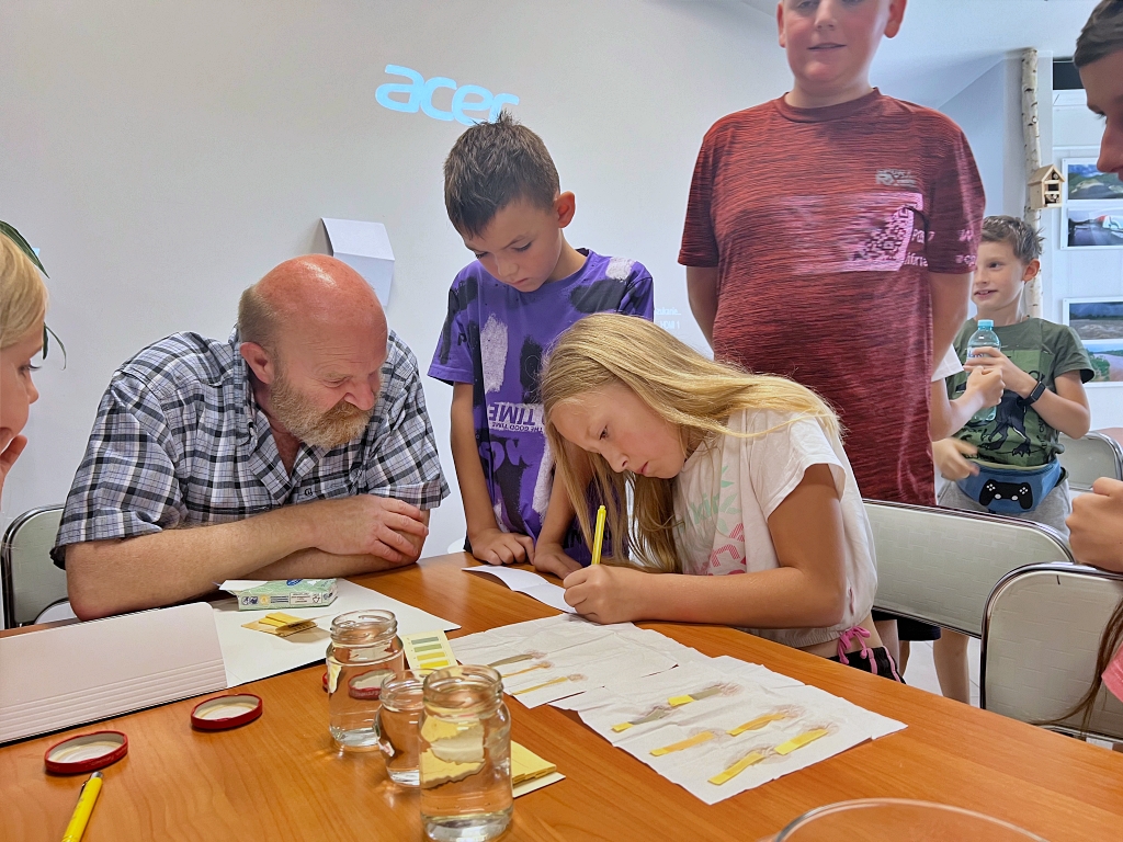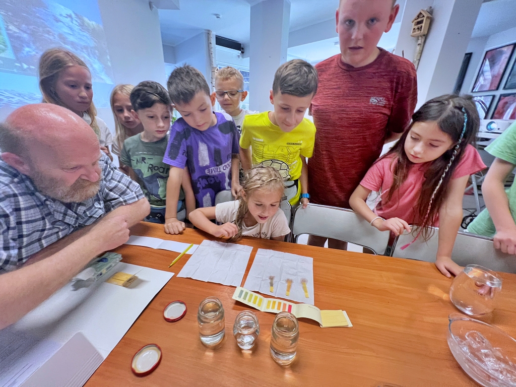 Dzieci miały niecodzienną okazję samodzielnie sprawdzić pH rzeki Soły oraz zbadać wodę w akwarium biotopowym, które znajduje się w Centrum Edukacji Ekologicznej w Wieprzu. Zajęcia były niezwykle pouczające, a dzieci chętnie angażowały się w przeprowadzane eksperymenty.