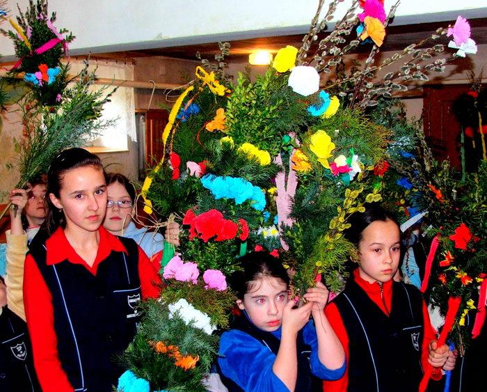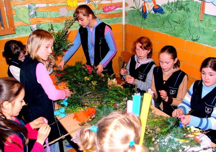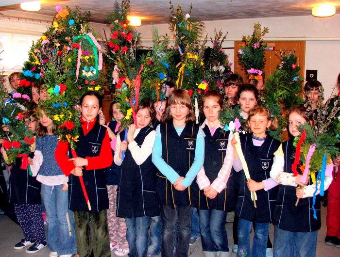 Dzieci ze szkół całej Gminy Radziechowy-Wieprz, wraz z instruktorami poznawały tajniki budowy tradycyjnej palmy wielkanocnej oraz zdobienia pisanek.
