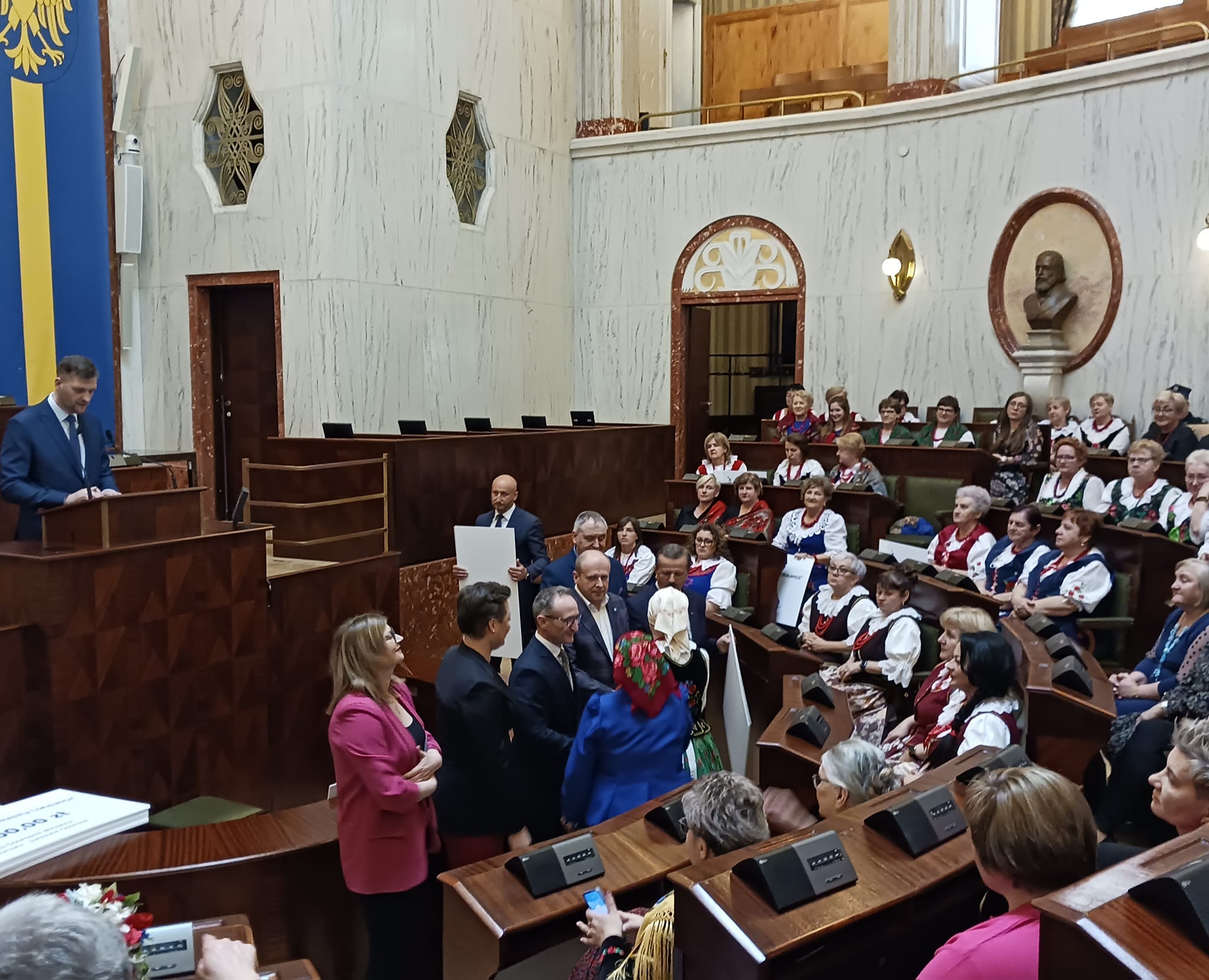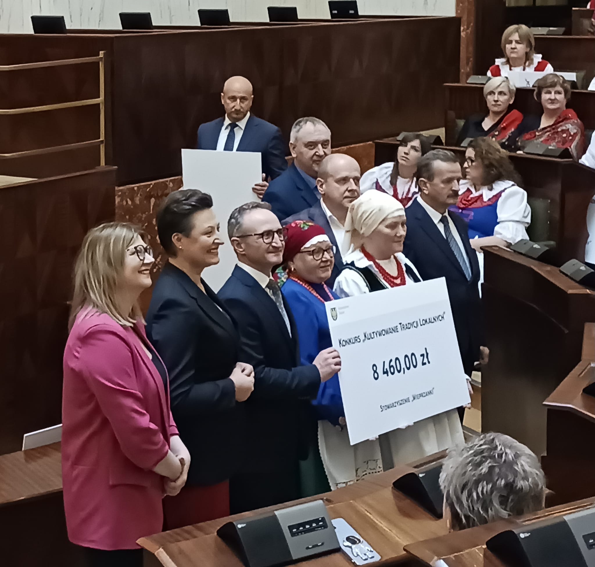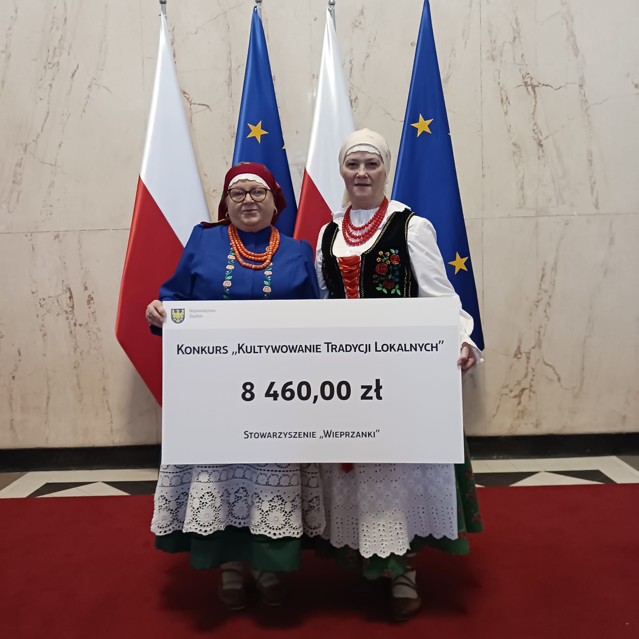 Stowarzyszenie „Wieprzanki” wzięło udział w uroczystym wręczeniu czeków w konkursie ofert na zadanie publiczne dotyczące wspierania rozwoju Gospodyń Wiejskich aktywnych społecznie na terenie województwa śląskiego w 2024 roku - "Kultywowanie Tradycji Lokalnych". Delegacja naszych członkiń w osobach Haliny Golasik i Genowefy Pietraszko udała się do Urzędu Marszałkowskiego Województwa Śląskiego w Katowicach, gdzie w Sali Sejmu Śląskiego z rąk Zarządu Województwa Śląskiego i władz Sejmiku Wojewódzkiego otrzymały symboliczny czek na "Zakup wyposażenia stoiska plenerowego" w wysokości 8460 zł. Dzięki zakupowi sprzętów składających się na stoisko plenerowe Stowarzyszenie będzie miało większą możliwość promowania się i uczestniczenia w wydarzeniach na terenie sołectwa Wieprz, Gminy Radziechowy-Wieprz oraz Powiatu Żywieckiego. W tym miejscu chcemy podziękować Wójtowi naszej Gminy Maciejowi Mice za pomoc przy pisaniu wniosku.