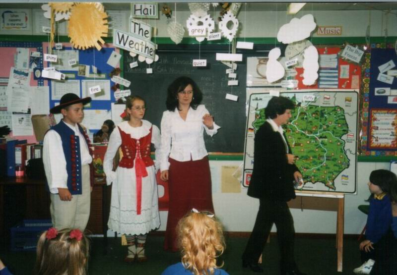 Nasza prezentacja cieszyła się powodzeniem wśród angielskich uczniów i nauczycieli. Szczególnie podobały się pieśni i tańce regionalne: Hajduk i Siustany, oraz warsztaty bibułkarstwa i oczywiście... stroje góralskie. Podkreślić należy tu pracę nauczycielek, które pracowały z dziećmi przed wyjazdem, pań: A. Micherdy, B. Dziergas i E. Jakubowskiej. Przeprowadziliśmy szereg lekcji w klasach oraz pokaz przed całą szkołą, obserwowaliśmy również pracę tej szkoły, zajęcia edukacyjne i pozalekcyjne. Mieliśmy szansę zaobserwować wiele ciekawych rozwiązań, oraz porównać nasze doświadczenia z innymi nauczycielami. Oprócz tego, na spotkaniu partnerów dyskutowaliśmy nad sposobem realizacji zadań projektu na obecny i przyszły rok szkolny.