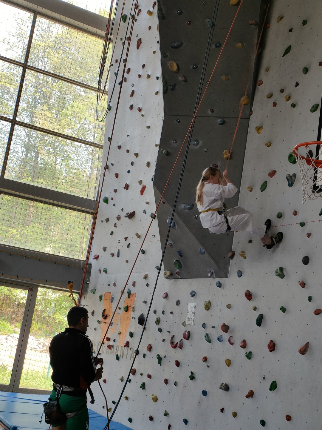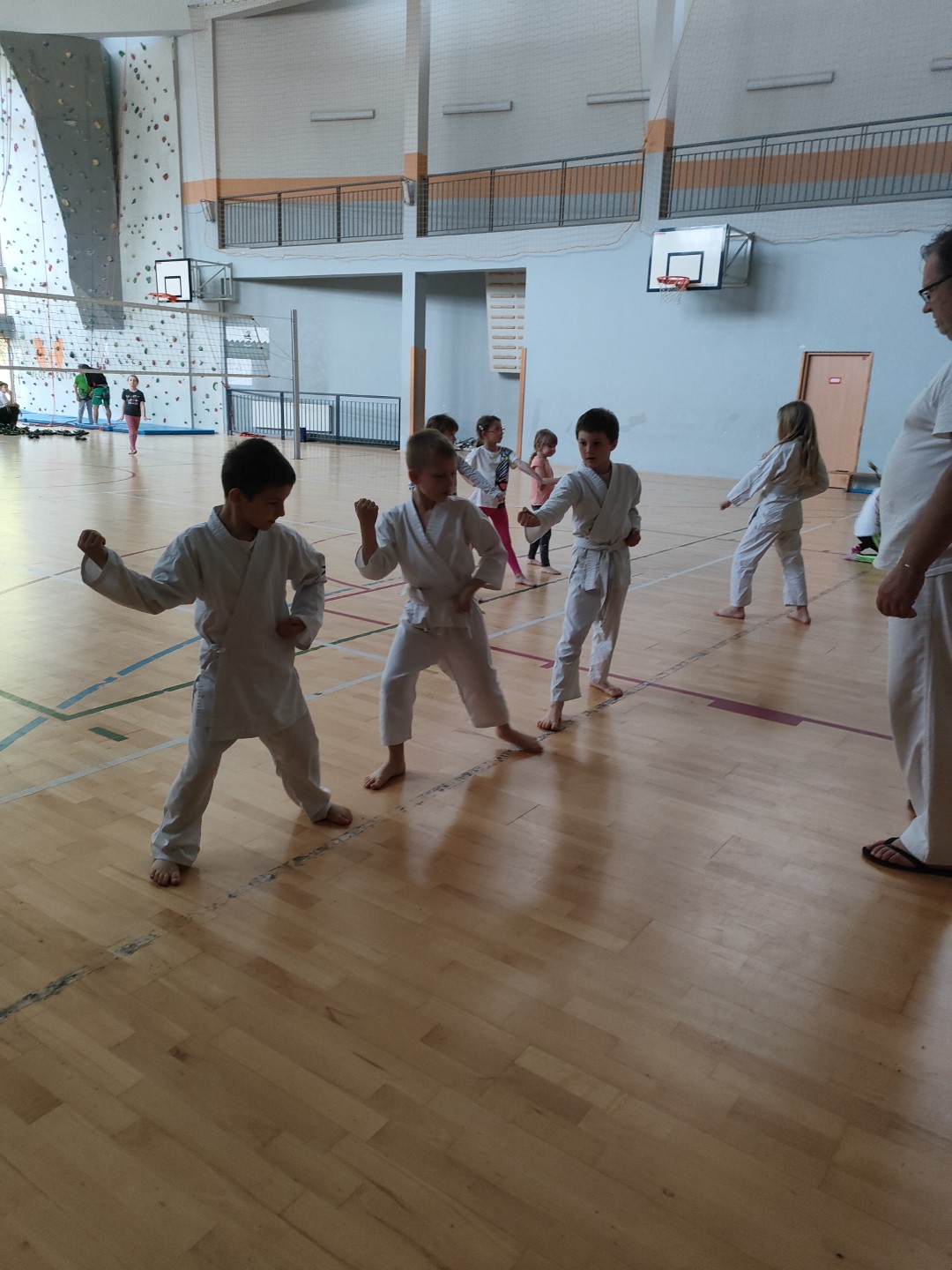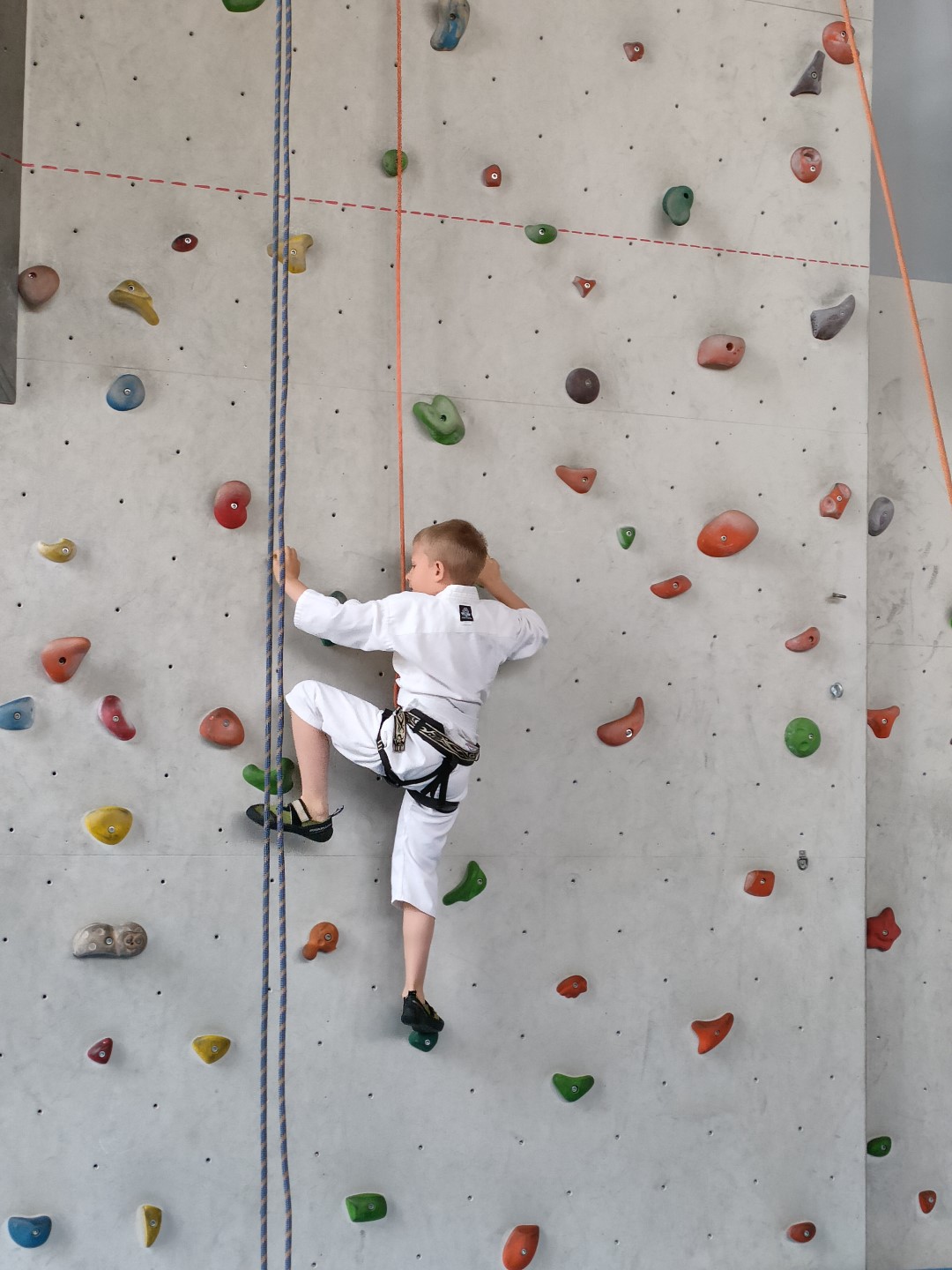 Bez wątpienia co niemiara odbiorców pamięta film „Wejście smoka”. Przed laty przemknął on jak halny przez kina, rozbudzając trend na sztuki walki. W ślad za, poczęły też powstawać szkoły sportów i sztuk walki. Pojawiły się też nowe konkurencje (style) sztuk walki. Polscy adepci sportów walki okupowali i okupują miejsca medalowe w światowej czołówce – pozostaje wspomnieć o zawodniczce z naszej gminy obecnie mgr Monice Wojtas z Brzuśnika, która w karate zdobyła brązowy medal Mistrzostw Europy. W sali gimnastycznej na zakończenie sezonu szkoleniowego, karatecy z „ARAWASHI”, uczestniczyli w warsztatach sportowych z elementami sztuk walki i samoobrony, które poprowadził mgr Ryszard Iwanek który jest instruktorem wspinaczki i na co dzień pracuje w jednej z szkół. Senpai Iwanek w szkoleniu przybliżył elementy wspinaczki, jako racjonalne wydatkowanie energii ciała przy stosowaniu techniki w sytuacji stresu i zmęczenia, tak innowacyjne metody szkolenia oprócz sportu, zapalają w młodym klubowym narybku chęć do nauki, gdyż przykłady wspinania się (energia kinetyczna, dynamika itp.) poparte empirią pracy własnego ciała na wysokości sprawia, że postrzeganie nauki sportu w sytuacji zagrożenia ma zupełnie inny odbiór- kontynuuje Hutman-Wilczek. Nielekko oponować o niezwykłym wpływie pouczającym jakiejś dyscypliny sportu, bo na ogół, nawet w przypadku karate, można podać równą ilość egzemplifikacji negatywnych, co pozytywnych. Zapewne wszelka aktywność sportowca, w którą wtyka co niemiara nakładu i serca, aby pokonać napotkane trudności będzie życiowo hartowała. Może to być także sport, który nie potrzebuje kontaktu z rywalem. Ale nie tylko wyniki są inspiracją trenowania sportów walki, dla niektórych to życiowa pasja. Życie toczące się w klubie i to co dzieje się po treningach, służy wspomaganiu lepszego rozwoju każdego ćwiczącego - podkreśla szkoleniowiec z „Arawashi” Bogdan Hutman-Wilczek. Uczestnicy ci oprócz codziennych powinności, w chwilach wolnych, ochoczo krzewią idę sportów i sztuk walki, a trener dostarcza co rusz to nowych wyzwań. Jakżeby inaczej z takimi szkoleniowcami organizuje się w klubie „Arawashi”, w którym trenuje młodzież, cykl treningów metodą warsztatową, która najlepiej przyczynia się cyklicznie w procesie szkoleniowym. Sportowe nowinki, solowe podejścia, uzupełnione elementami profesjonalnej wiedzy, często czerpanymi z fachowych doświadczeń zapraszanych gości klubu - to dodatkowa korzyść dla ćwiczącej młodzieży – podkreśla sekretarz klubu Ryszard Stoecker. Oprócz szkolenia, mającego na celu zadzierzgnięcie nowinek wspinaczki, spotkanie z Ryśkiem Iwankiem niesie za sobą przejaw wychowawczy: uczenia się poprzez działanie, czyli wszystkimi zmysłami, uczy sondowania, krytycznego myślenia i samodzielnego działania. Na koniec warsztatów Hutman - Wilczek przypomniał uczestnikom zajęć, o obowiązujących zasadach bezpieczeństwa i zakazie stosowania nabytych umiejętności sportów i sztuk walki poza salami treningowym, zawodami lub sytuacjami, gdzie osoba podejmuje się obrony koniecznej, broniąc siebie lub inne osoby. Niecodzienne szkolenie karateków „Arawashi” na ściance wspinaczkowej, było ważnym elementem kształtowania odwagi naszych zawodników - dodaje sekretarz „Arawashi” Ryszard Stoecker. Miało także walor wychowawczy, o którym nie zapominamy przy tego typu okazjach: przybliżyło adeptom szkolącym się w sportach i sztukach walki zasady stosowania prawa w życiu codziennym. Miło nam zakomunikować, że nasza klubowiczka Kamila Wawrzyczek, która trenowała w Wieprzu ukończyła szkołę oficerską we Wrocławiu i uzyskała pierwszy stopień oficerski podporucznika, z Kolei Klub Arawashi wygrał konkurs w Urzędzie Marszałkowskim Województwa Śląskiego.