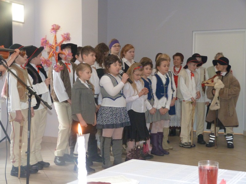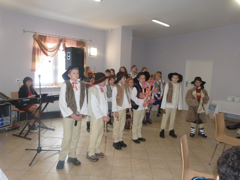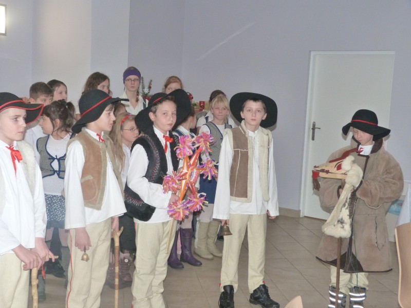 Gości przywitał występ dzieci z Zespołu Szkolno – Przedszkolnego w Przybędzy, które pod okiem pani mgr Barbary Kupczak oraz mgr Elżbiety Gancarczyk, przedstawiły bogaty program oparty na pięknych polskich kolędach, pastorałkach oraz tradycyjnych góralskich życzeniach i winszowaniu noworocznym.
